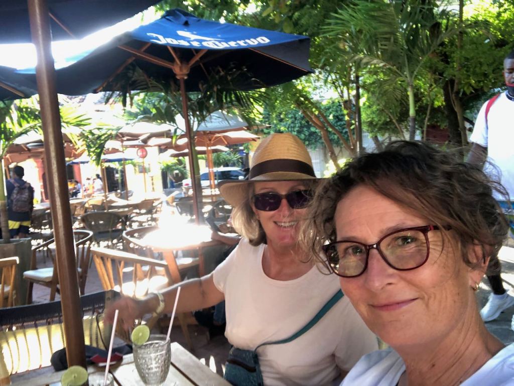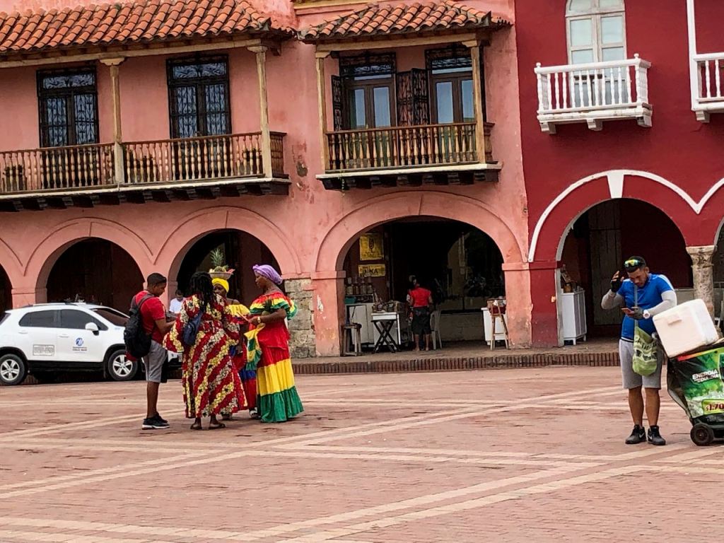 Cartagena “fruit” women trying to make some money of tourists with taking pics of themwe were all happy to have escaped the city tour… off o find a nice coffee bar