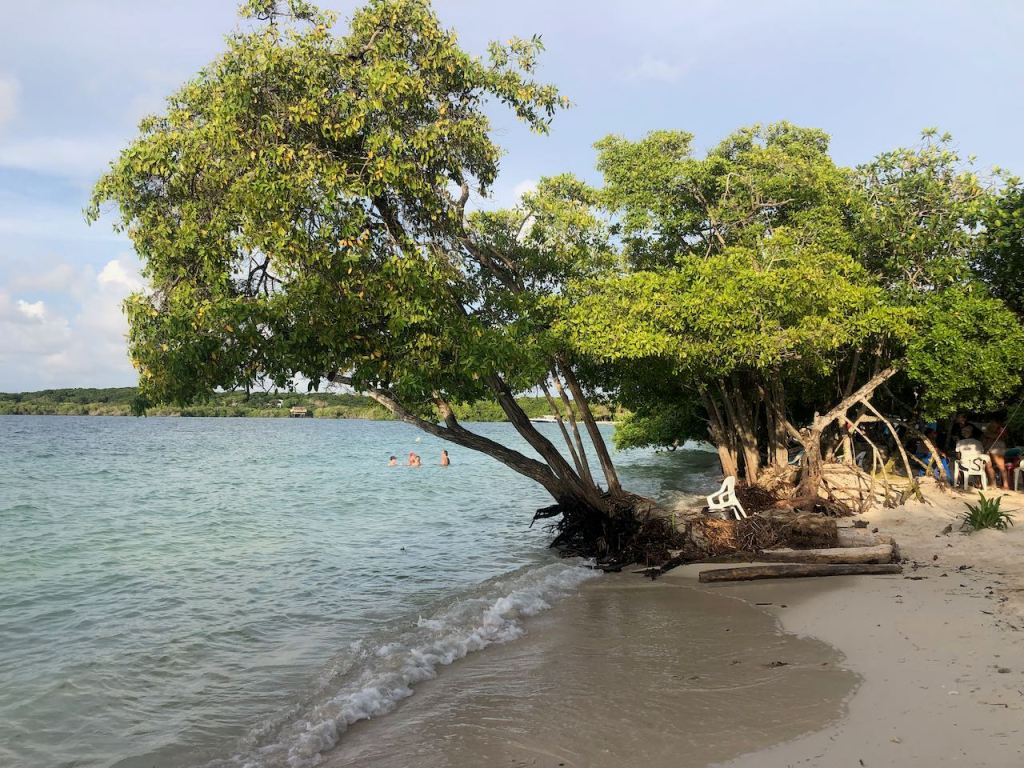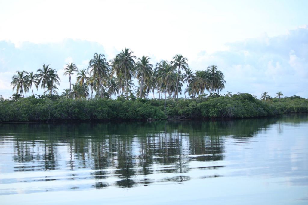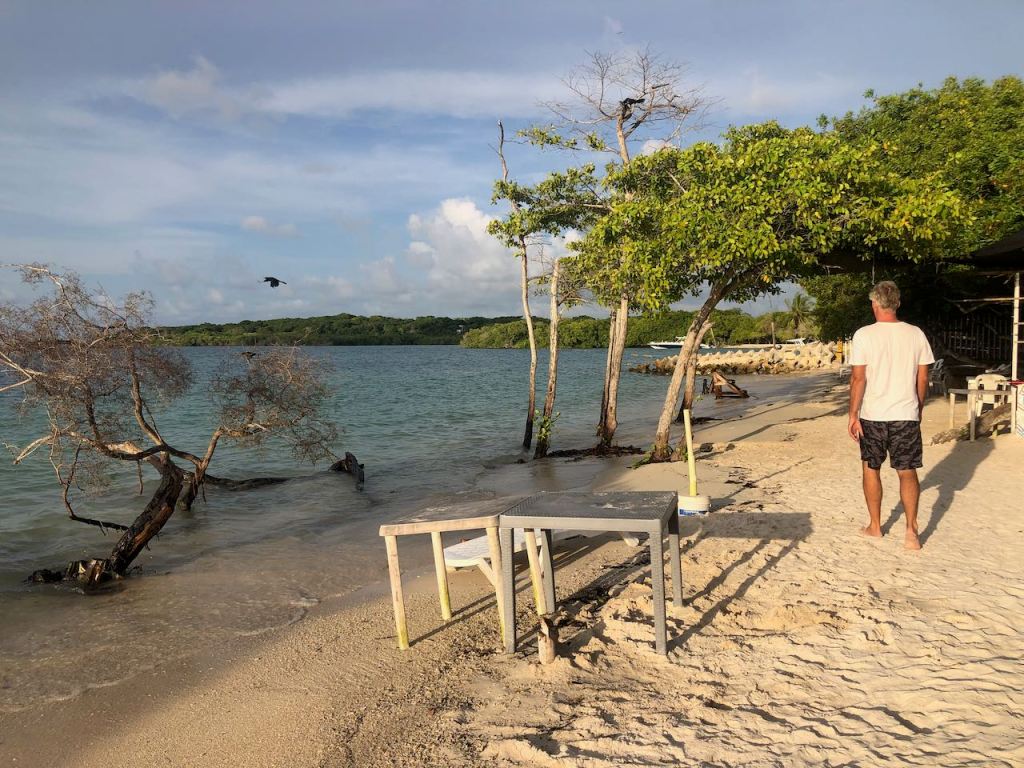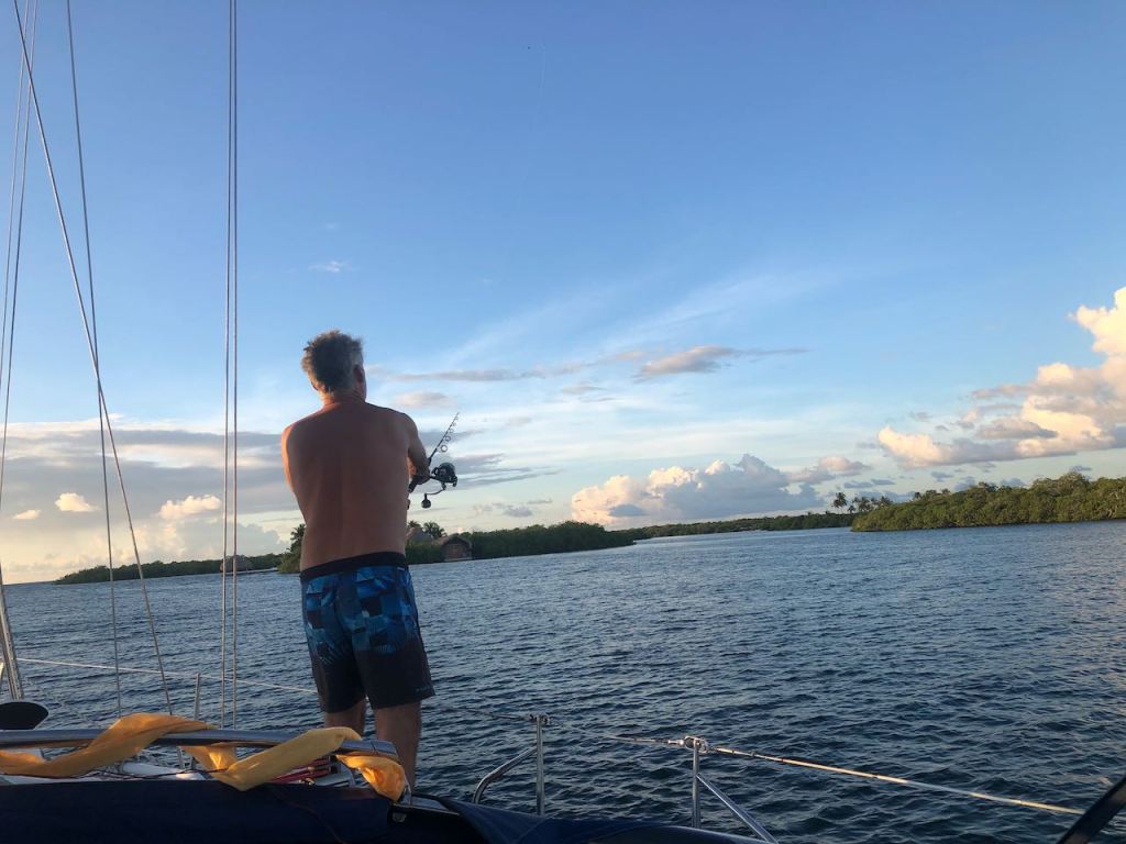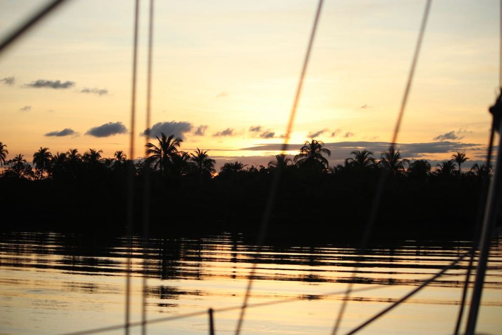 enough fruits to get goingand just outside of Cartagena we caught some nice little tunasa delicious dinner was safe!arriving at Cholon, the bar was getting ready to servehe passed by to serve us some very delicious small oysters – yammi we didn’t have any for agesit was beautiful in Cholon bayand then we took off Tintipánour anchorage in Tintipánsooooo nicesoooo quietsoooo calmsorry I couldn’t make my mind up with all the sunset pics…doesn’t it look cosy?we were taking a tour with the dinghy, it was all so niceTintipán is a lagoon with many tiny islands just so you don’t forget how we look likedevils head?El Capitano trying to catch some fish – unfortunately in vain that time