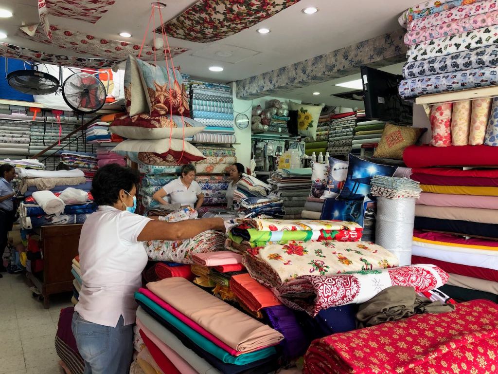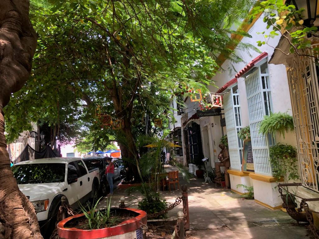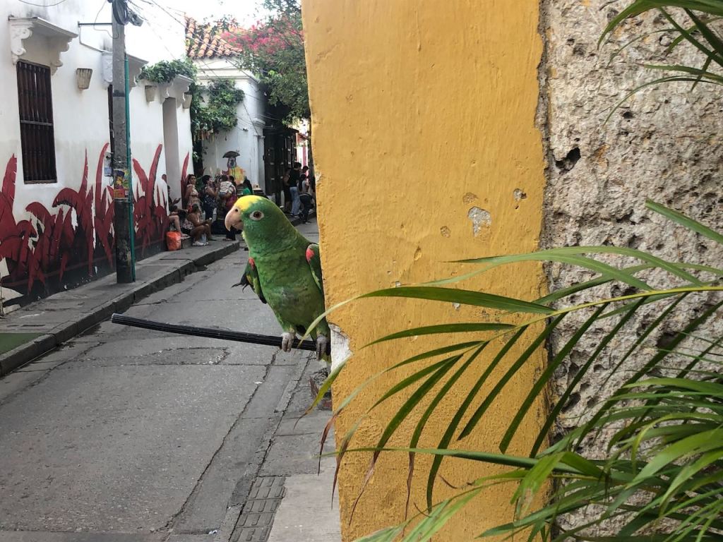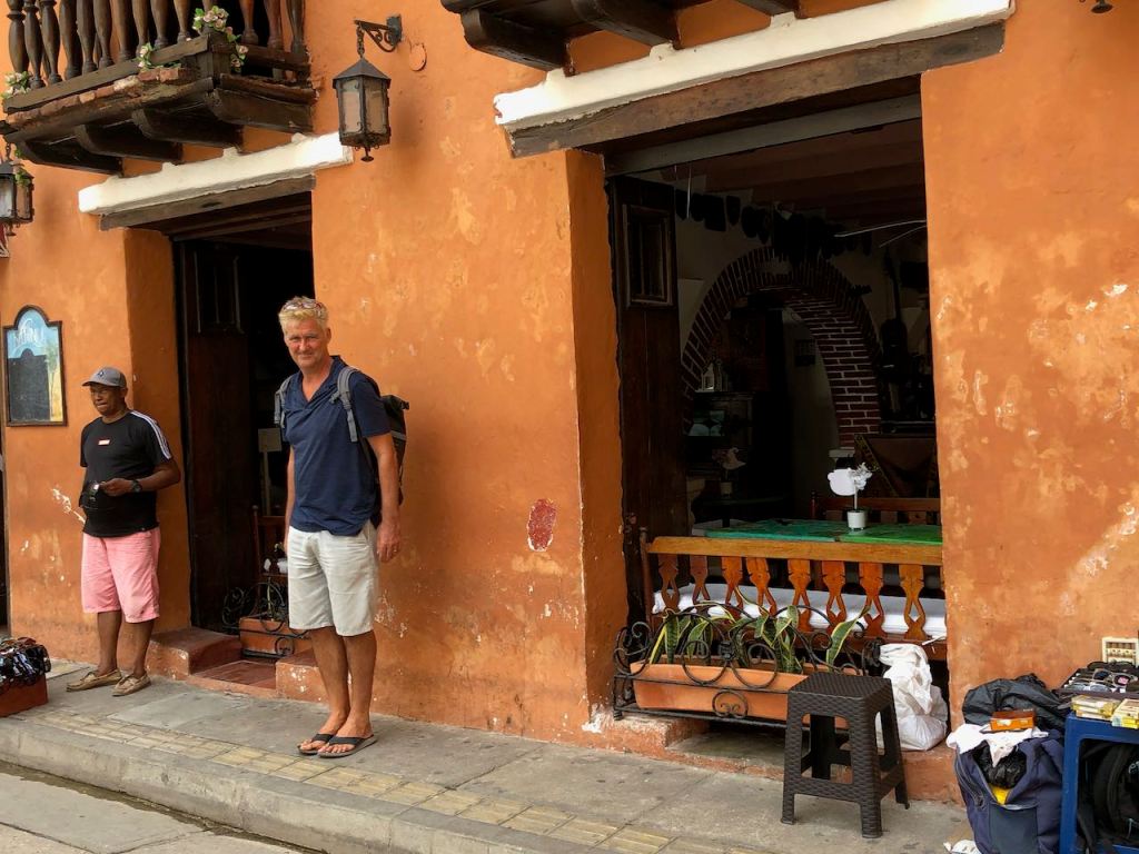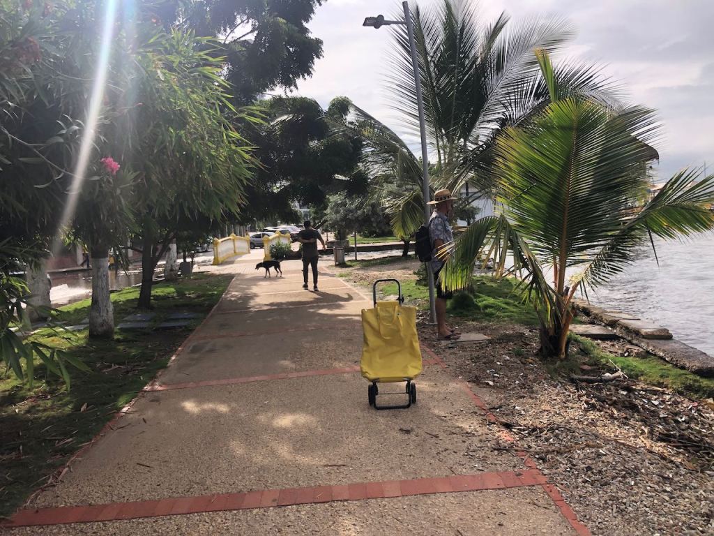 back at anchor in the bay of Cartagena very pretty when the sun was shiningis there any place on earth where the Oktoberfest is not celebrated?the bay at nighta street in Getsemani I liked little tigerthis parrot was very talkativeGetsemani (a quarter of the historic town,I should have mentioned it before), at nightanybody need some soles?they were presented just next to the solesI just liked the pretty treeanother walk to the supermarket this time in Mangathis fellow liked himself very muchearly in the morning while getting groceries and running some errands I liked the morning atmosphereonly venders were busy getting their business readymy favourite fabric shop, the girls were very patient with me as it took me ages to decide which fabric I wanted for different projectsit was incredible how many fabrics they offeredin the evening this street was usually crowded, early in the morning it was just nicemy final purchase from fabric stores, waiting for El Capitano to pick me upnot only in Medellín … Botero donated one of his gorgeous women to Cartagena toomy Capitano waiting patiently for mePlaza de los Estudiantesfoto shooting just in front of usway how to remember this name… Get – the – money … appropriate for this more touristic quarter 😉el Torre del Reloj from the other side
