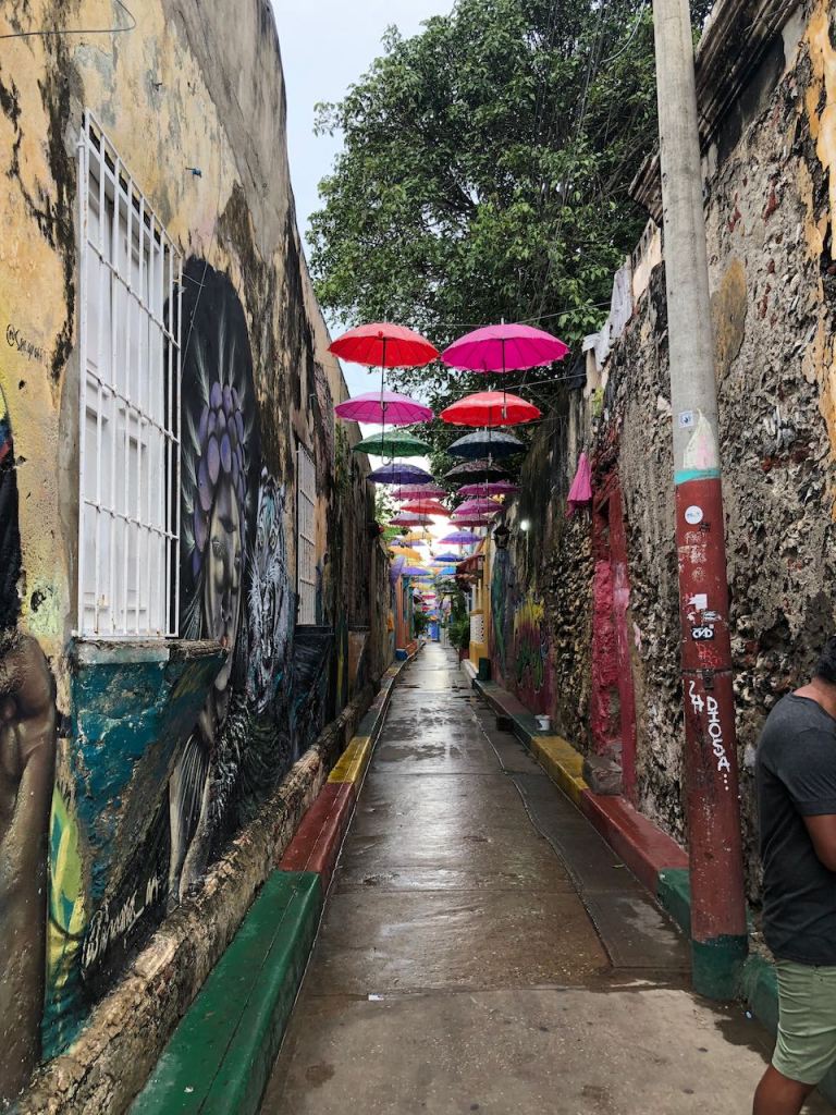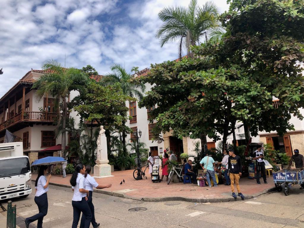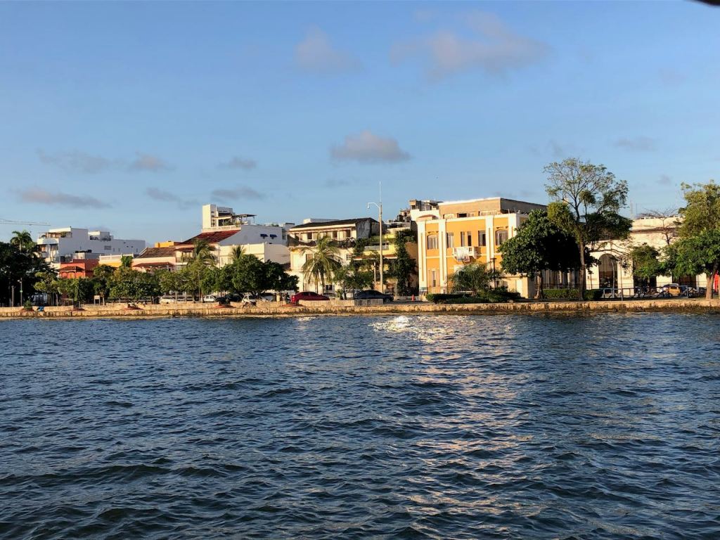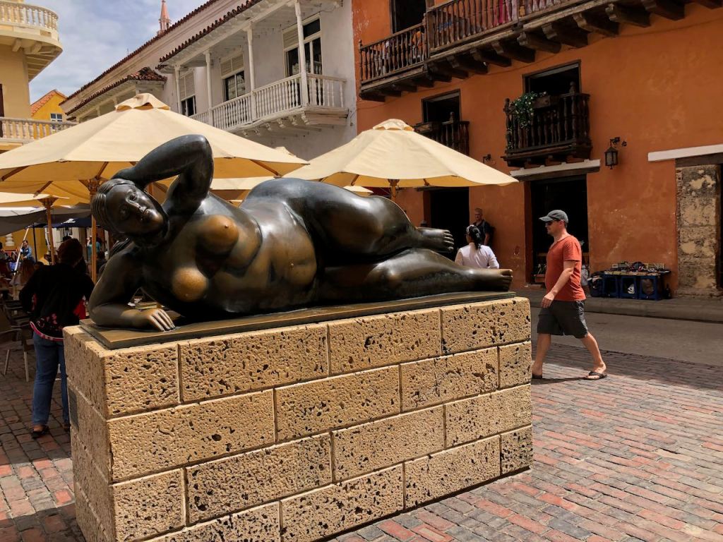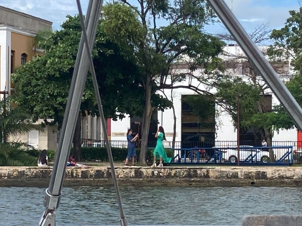 back at anchor in the bay of Cartagena very pretty when the sun was shiningis there any place on earth where the Oktoberfest is not celebrated?the bay at nighta street in Getsemani I liked little tigerthis parrot was very talkativeGetsemani (a quarter of the historic town,I should have mentioned it before), at nightanybody need some soles?they were presented just next to the solesI just liked the pretty treeanother walk to the supermarket this time in Mangathis fellow liked himself very muchearly in the morning while getting groceries and running some errands I liked the morning atmosphereonly venders were busy getting their business readymy favourite fabric shop, the girls were very patient with me as it took me ages to decide which fabric I wanted for different projectsit was incredible how many fabrics they offeredin the evening this street was usually crowded, early in the morning it was just nicemy final purchase from fabric stores, waiting for El Capitano to pick me upnot only in Medellín … Botero donated one of his gorgeous women to Cartagena toomy Capitano waiting patiently for mePlaza de los Estudiantesfoto shooting just in front of usway how to remember this name… Get – the – money … appropriate for this more touristic quarter 😉el Torre del Reloj from the other side