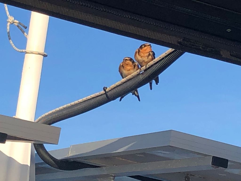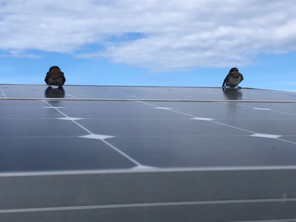 the two birds resting on the solar panelsthey changed the resting areaone of them approaching Altimatethis was the poor very exhausted one