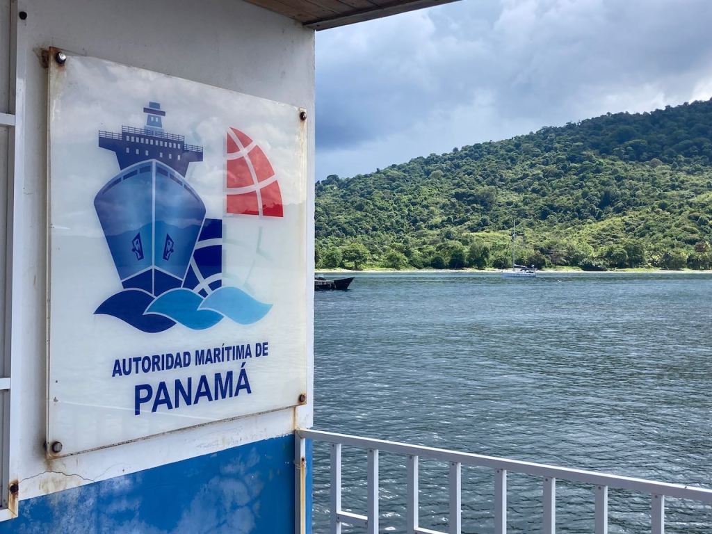 the bay of Obaldíanot yet checked in, Q-flag and Panamá flag hoistedAltimate waiting to get the papers done for the check in
