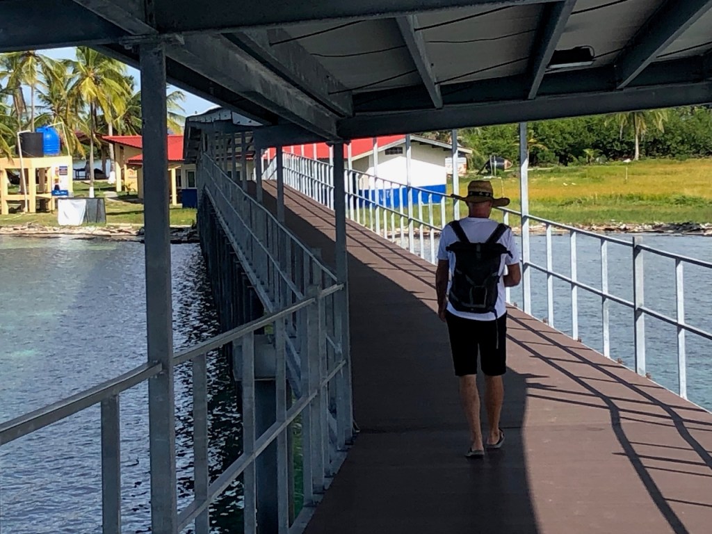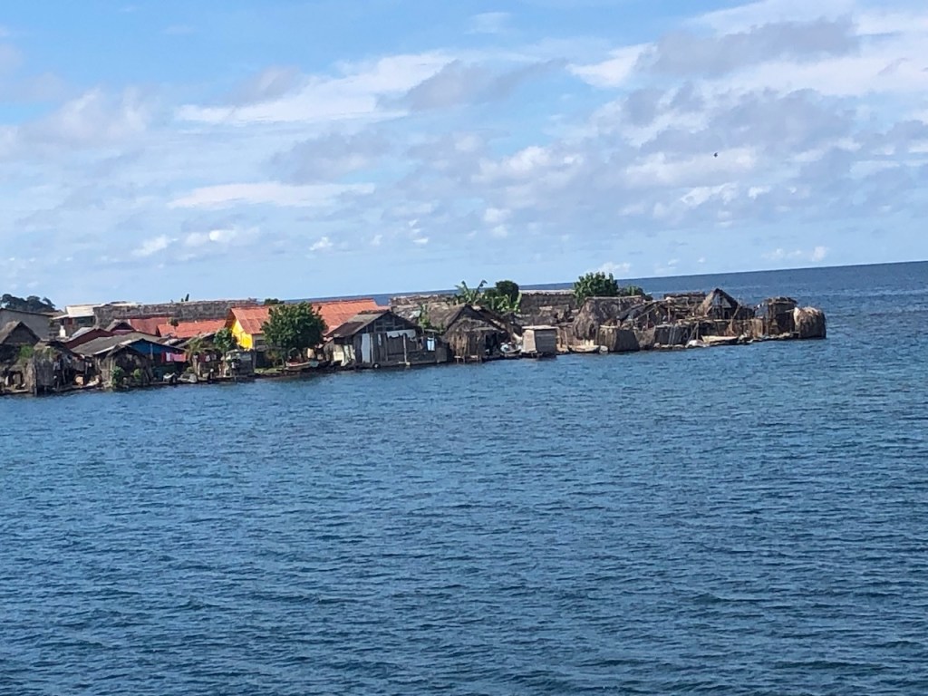 This was a slightly bigger island where it was possible to connect to wifi. That was the reason for us to stop as I wanted to get in touch with my parents. We also had a stroll around and were impressed by the prosperity of this island. They even had a bank!!! No proof as I didn’t dare to take pics. They had a fairly modern bridge connecting the main island with a smaller one which looked like a school project or something similar.