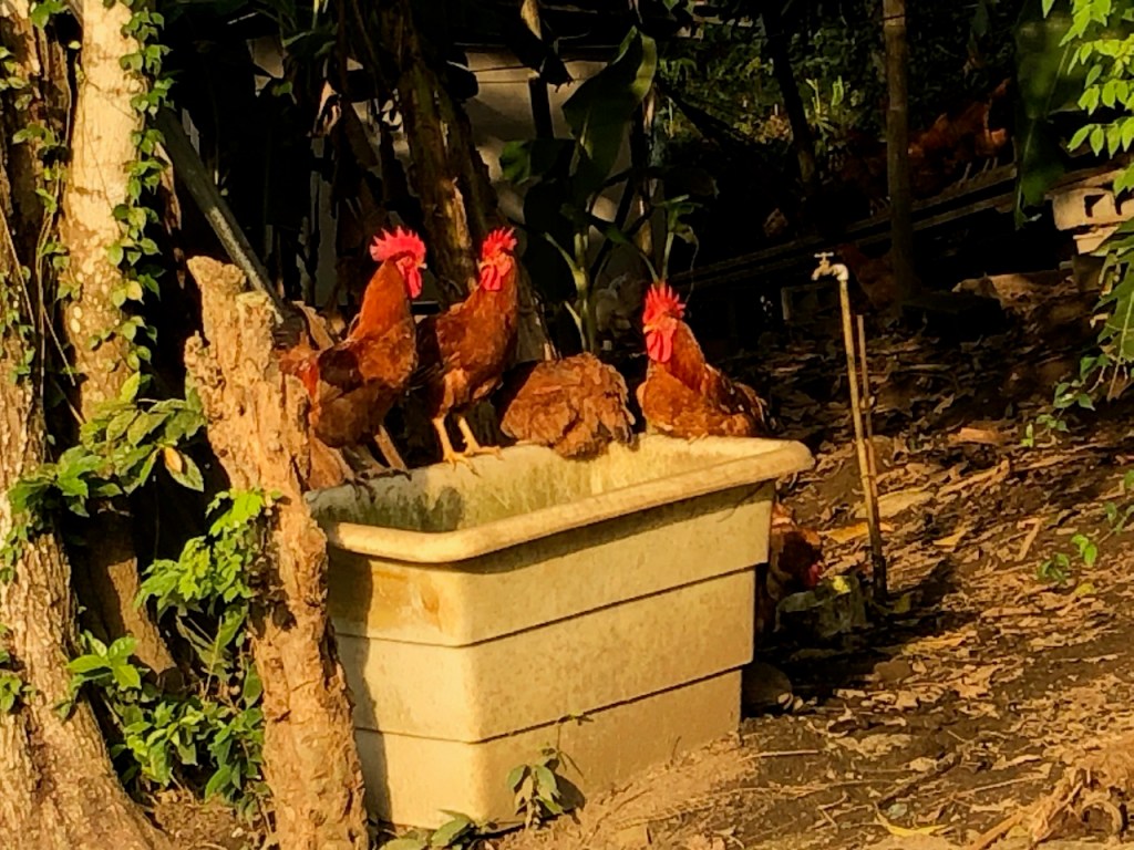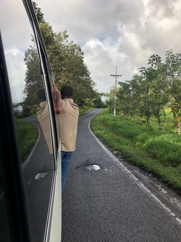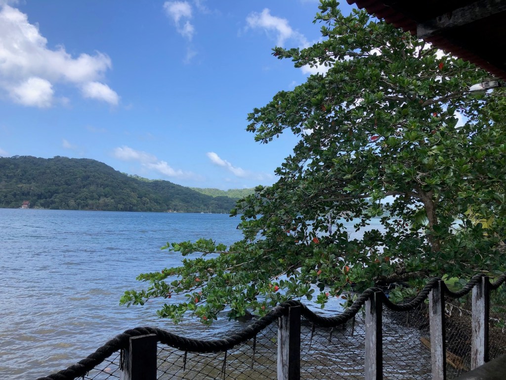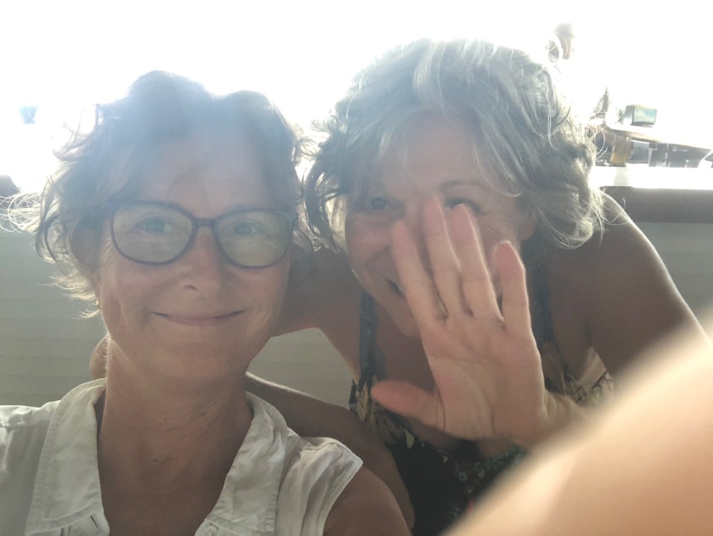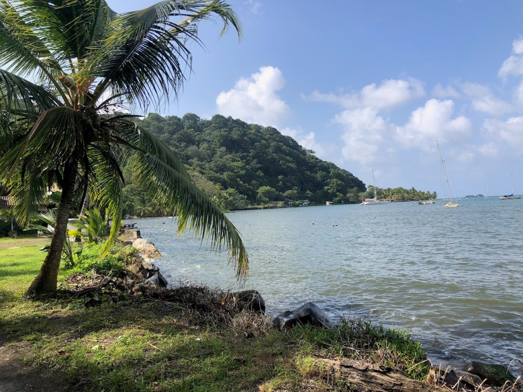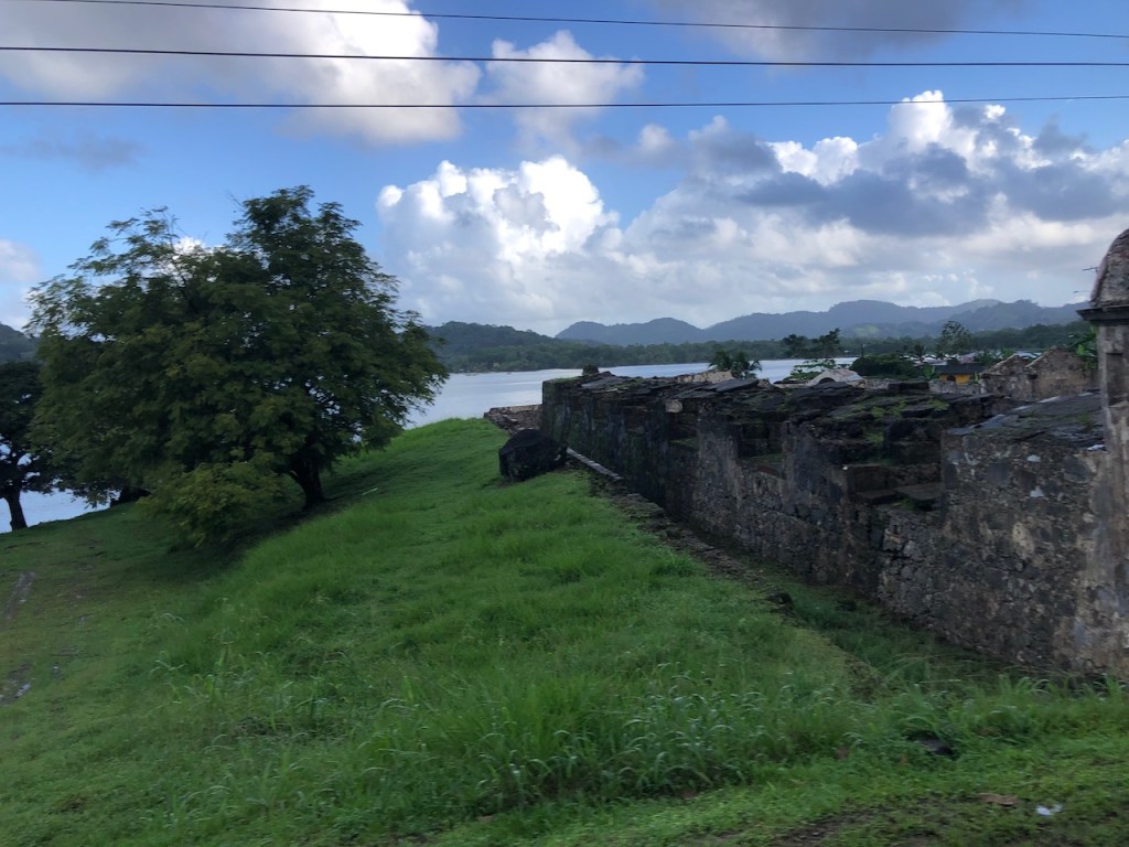 Marina Linton Bay; this crazy construct is a floating apartment, which can be rentedthe marina looking north eastin the back Isla Cabrafootball!!!! unfortunately the German did not very wellthe big audience watching, Herwig, El Capitano and Heikewe also met this nice couple Swiss/ British Daniela and Mike, they have the exact same boat as we have! t was the first time since we left La Rochelle that we saw another Ovni 365 and they were also friends with our dear Canadian friends from Carina😊waiting for a bus to come to take us to 4Alto a mall close to Colon, a 2,5 hour ride just to buy some groceriesthe area was beautifuland some passengers were crazypassing the ruins of Portobelo wallsthe welcoming bus stop close to the mallwe spent more than 500 US; the advantage was that the supermarket then provided a lift back to the marinaI thought that was kind of cool using the wingfoil on a dinghy, here in the anchorage at Linton Baya walk to Linton harbour, the small village with a Chinese super-allround-market, providing food, DIY parts and bicyclesI just liked the picture of Daniela and meand a beautiful impression of our corroded anchor winchthe entrance of Linton Bay, we were again waiting to take the bus ;this time going to Portobelo to get some cash, ATM’s were very rare but you often had to pay cash; we were lucky that day as our friends from Basta located at turtle Cay Marina suddenly came by with a car; they offered us a lift to Portobelo and back😁we had a lunch stop at PortobeloMike catching a nice picAlex, El Capitano, Mike and the carwe had a stroll to Linton harbourso many chicken