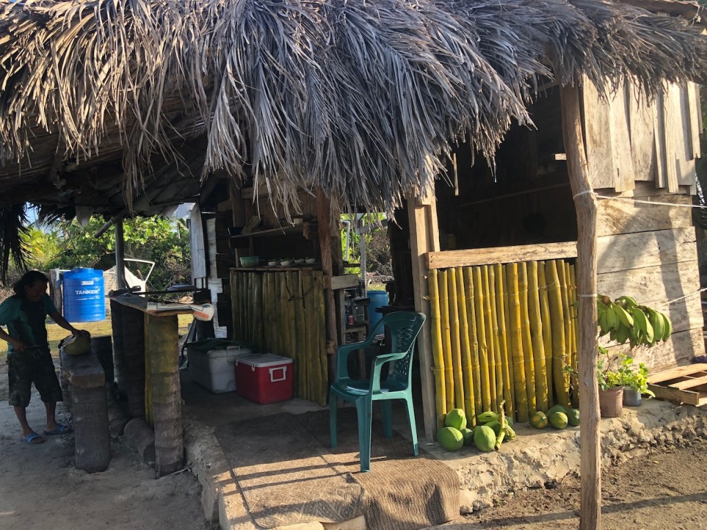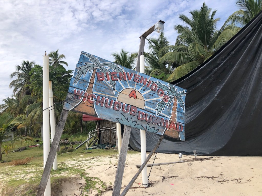 pretty Chichime, well the island is actually called Uchutupu Dummatthis guy didn’t seem to be scared of usan old wreck which hit the reef of the Chichime Cays; I did not find out when it happened and whyis that another name for the island?green, green, greenthe rotten palm tree leaves do look a little like woven cottonanother name???colourful houses which where for rent catch of the day on our way to Linton