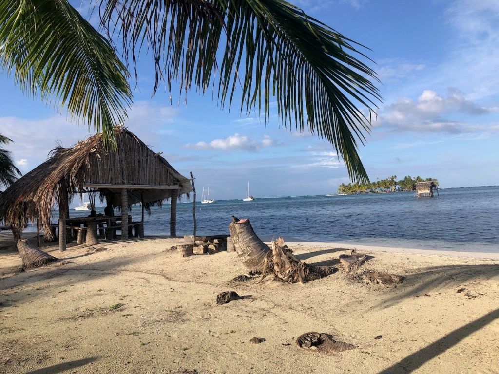 We had a two day stop in between several reefs within this island group. It sounded nice but the Island Tiadup was disappointing. They do have a few apartments to rent but they did not look very well after their island. It looked dirty and half cleared. At least they had a small reception and bar and they were very friendly.The world champion ship soccer games were on. Rather for fun we asked if they would watch football as we saw a small tv. Very surprisingly to us they said yes and they even said they would be happy to invite us for watching. We certainly had not expect watching soccer at the San Blas. Very kind people!