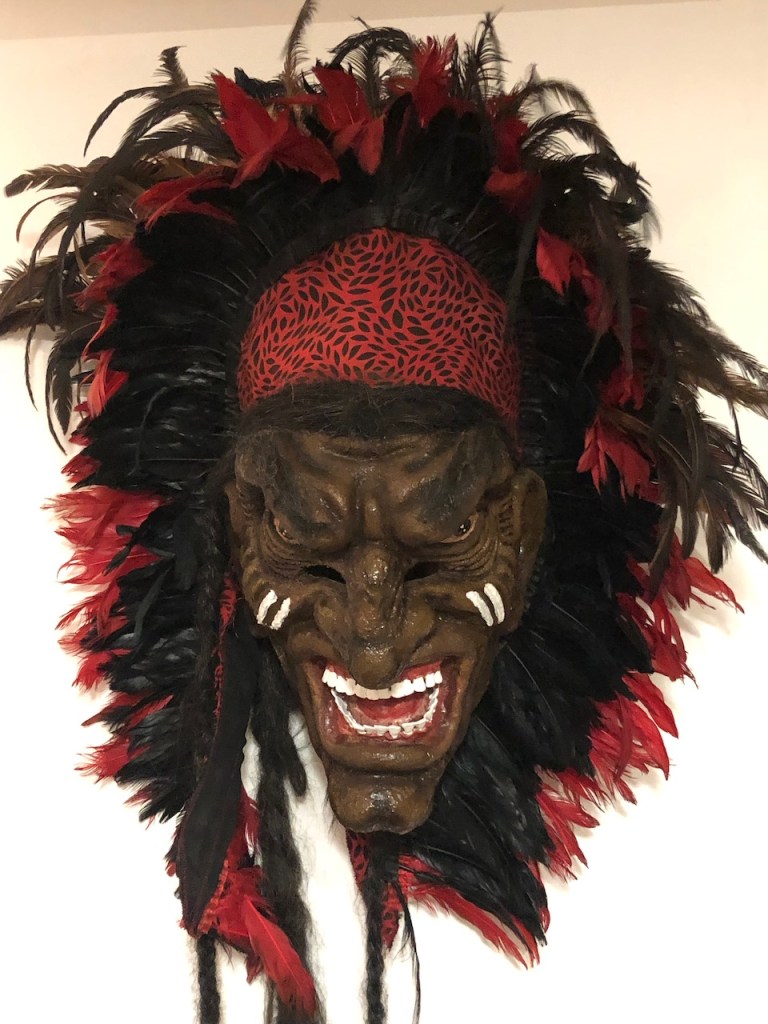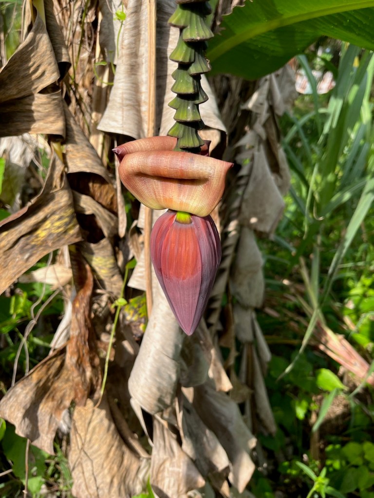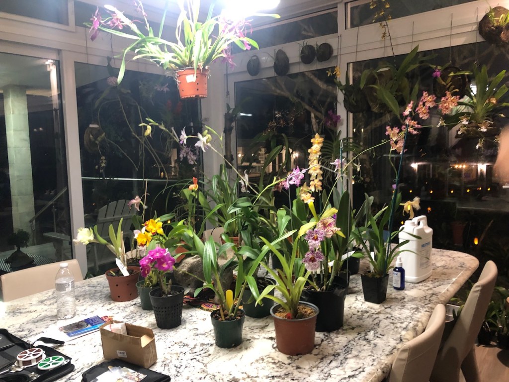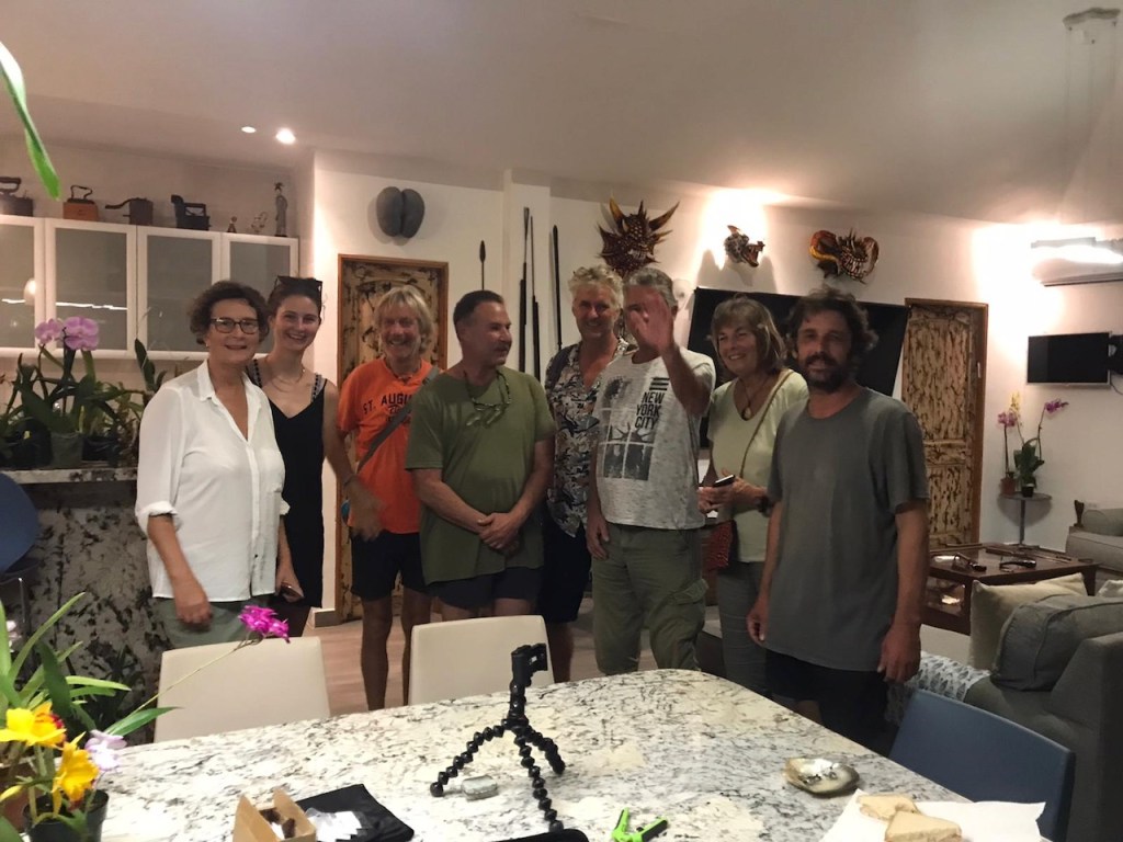 here he was showing us were he lived and hjs orchids; he also breeds orchids…; me , Jan, Herwig, Jacobo, El Capitano, Wolfgang, Heike and ? all of us including another Heike on the left, Jacobos friend in blue and a visitor, a french professor next to Jana who was interested in the special Panthers Jacobo was giving a home to he also hosted Mermaids we kept changing our seatings😉a palm tree in his gardena mask made from locals to prevent something… I can’t rememberthe orchids breeding room