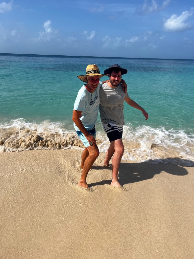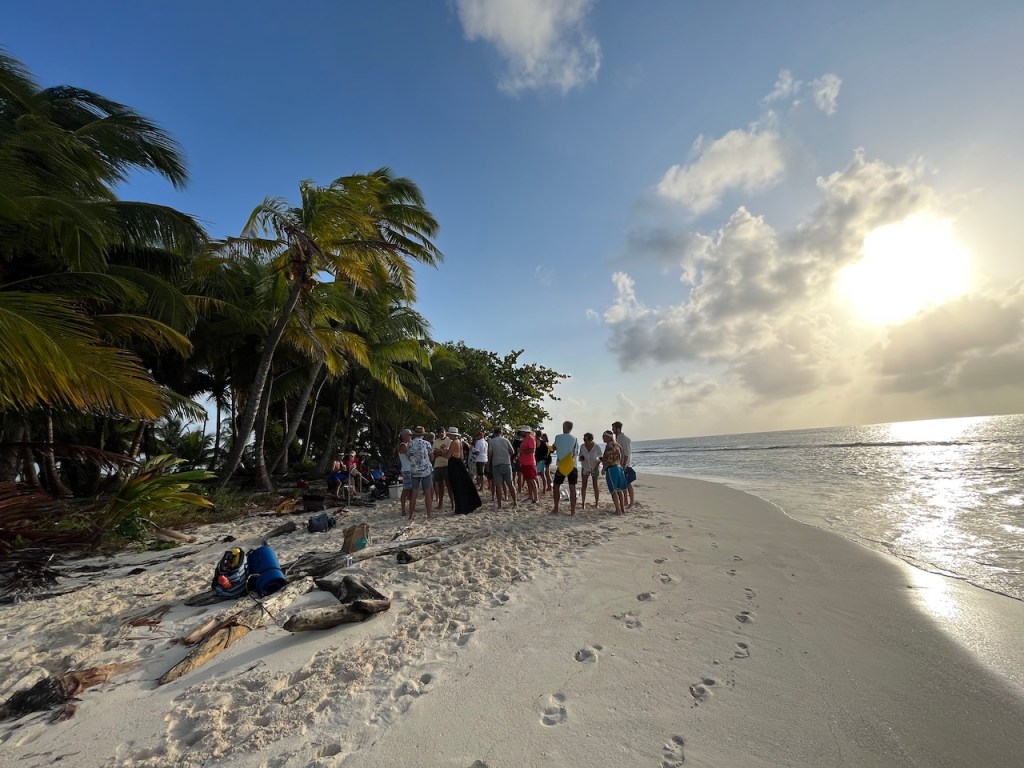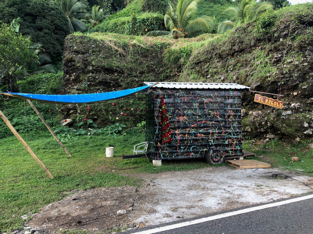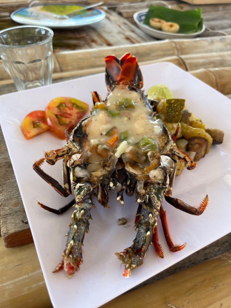 pic taken from Bandedup, one can see Tiadup on the left and Quinquiridup in the middle where we had the bbqa stroll around Banedup…..cheeeeeeeeesewe asked Ibin if we could have some Bananas – thats what we got 😂the conch way from one side to the otherat the end Iban’s restaurantx-mas bbq at the beach, in front Deb and Reg from “Runner”Luis was busy with taking care of our knivesJana was taking care of her Vitamine D storage