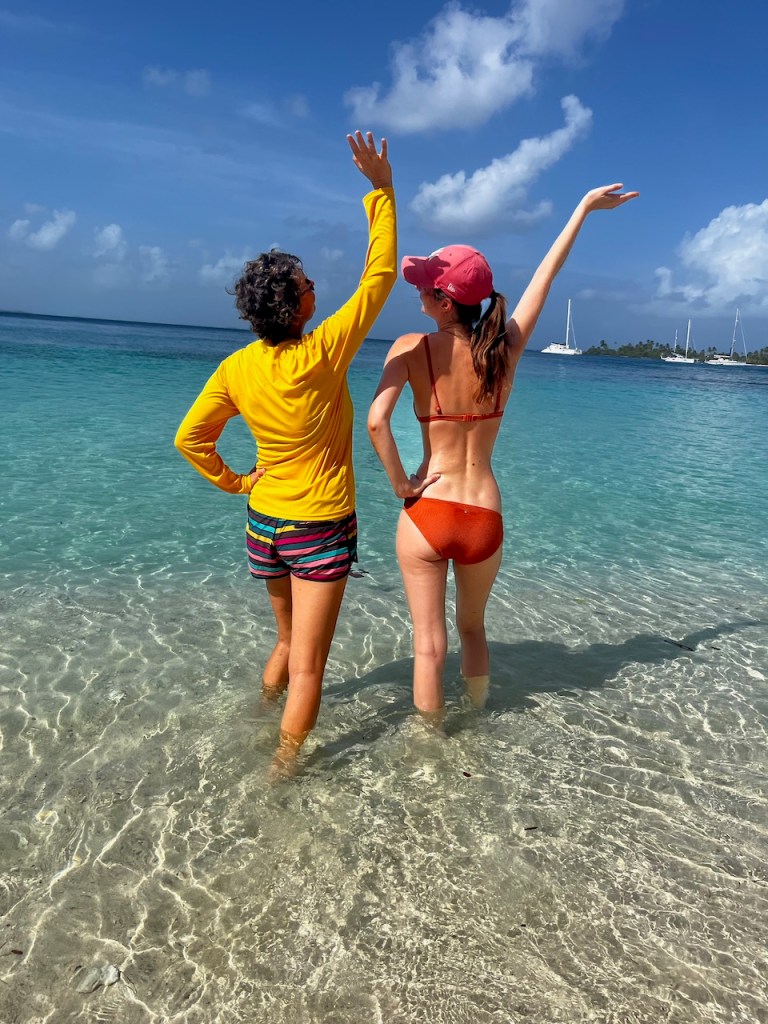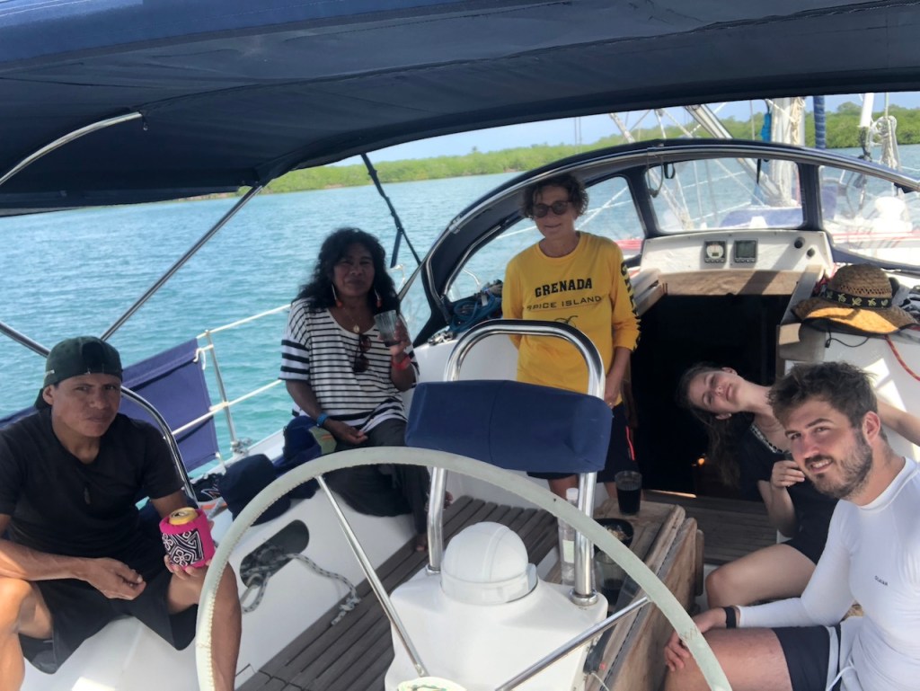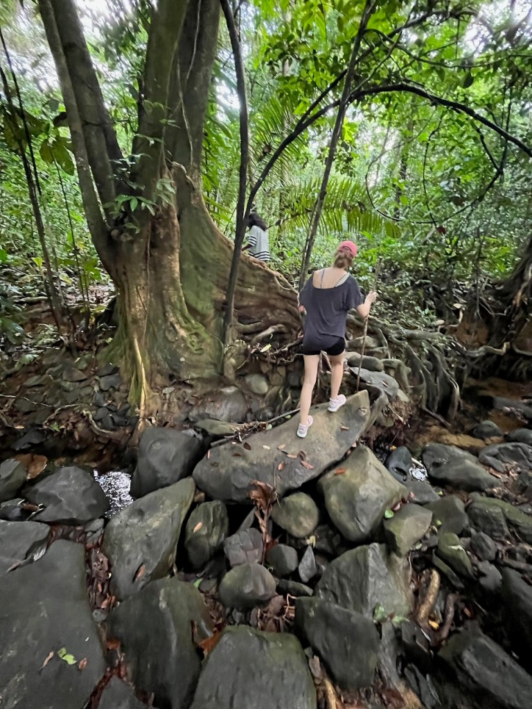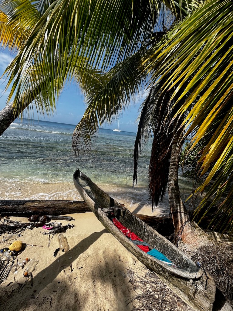 Mola Lisa is known for making the best Molas in Guna Yala but she also provides guided tours through the jungle up to a waterfall. The 25th of December we moved Altimate to another anchorage, to Isla Pandorra close to shore. Here we were picked up by Lisa and her friend to get to the entrance of Rio Sidra. It was 20 min ride by canoe to reach the river and another 15 min to finally start our walk through the jungle. A beautiful walk and a complete different world compared to island life. So many different plants, trees and sounds. Lisa guided us to her family grave yard and showed us plants and some wildlife. At the waterfall we had a little lunch and we could jump into the water. That was great! (El Capitano was the only one who chickened out😉.) The way back was mostly swimming, sliding or walking through the water. So much fun, especially being in fresh water for a change.