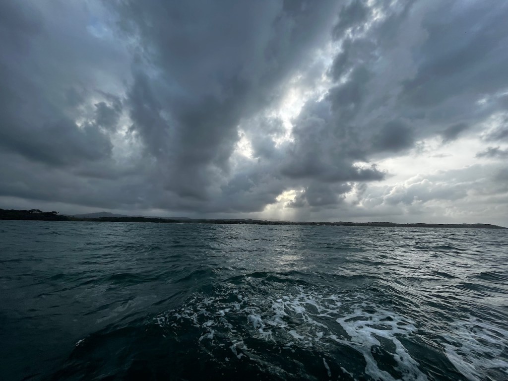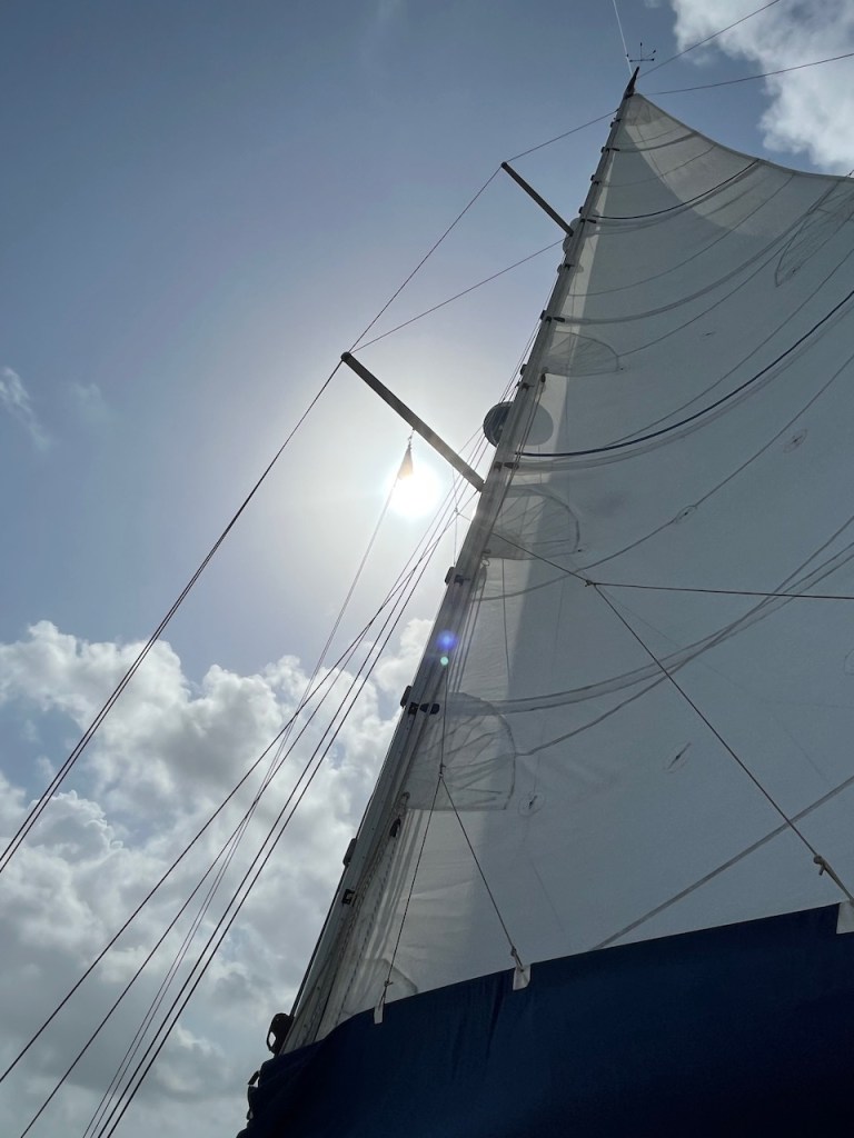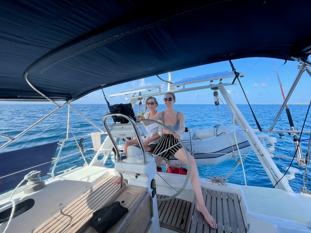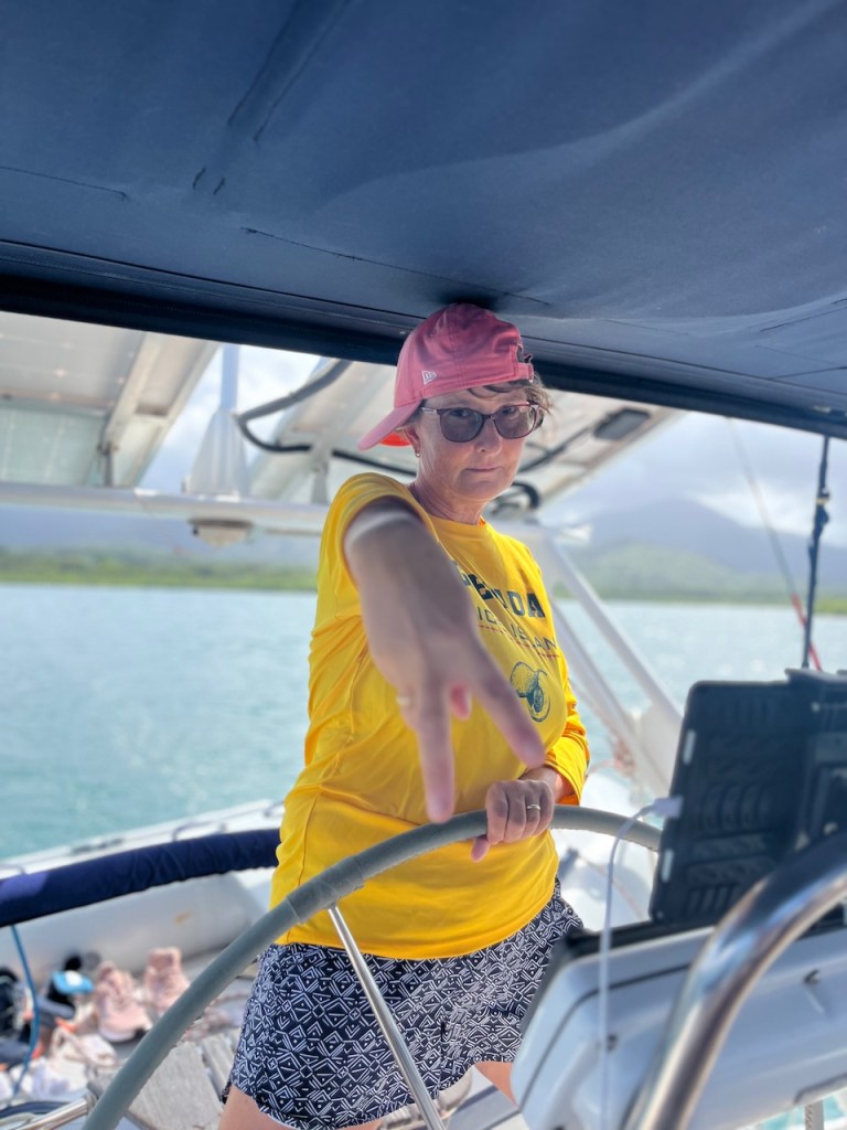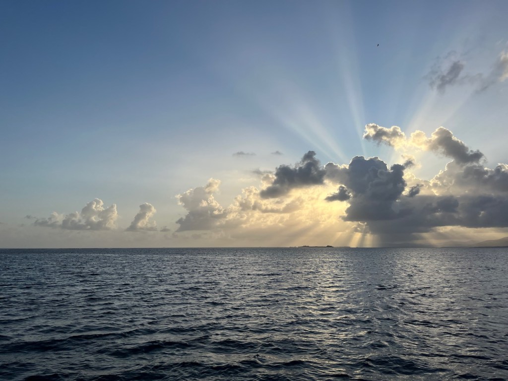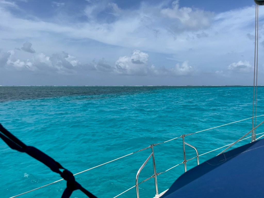 here we were anchored right in the middle of a big reef, we were hoping to have a good snorkeling spot; unfortunately that was wrong and apart from that the current was much too strongLuisito enjoying the sunset at the bowpassing some islands on our way to the so called “Hot Tub”focused sailingthe hot tub