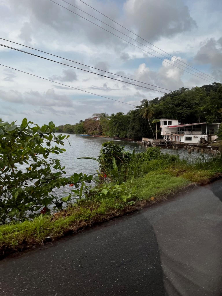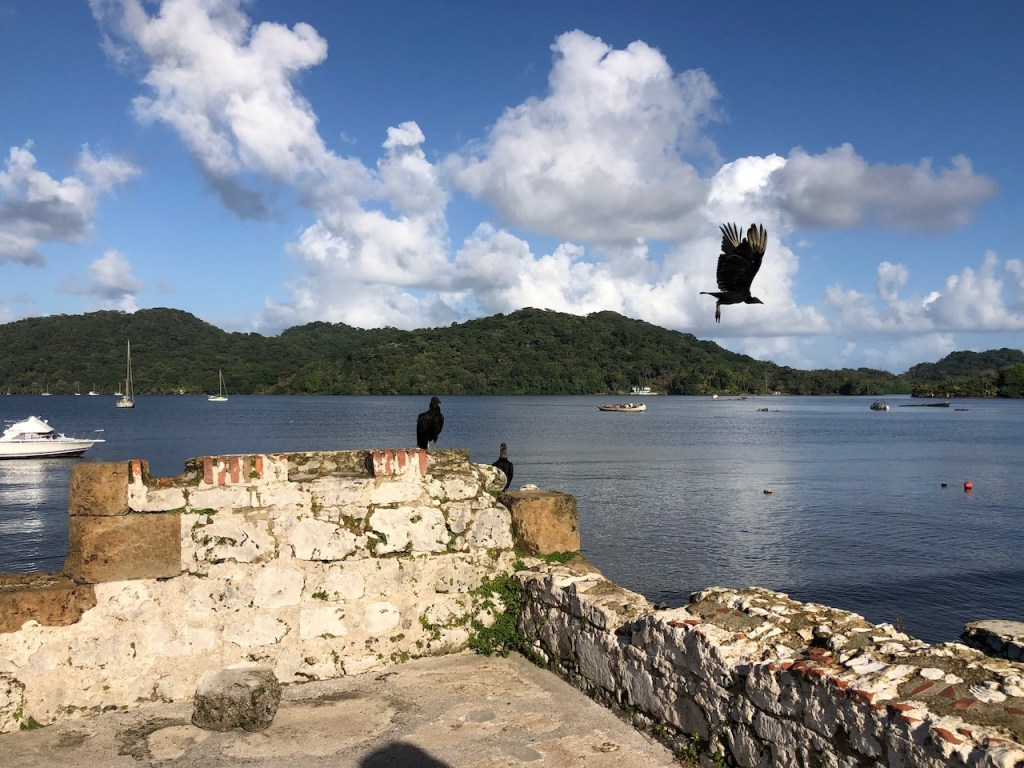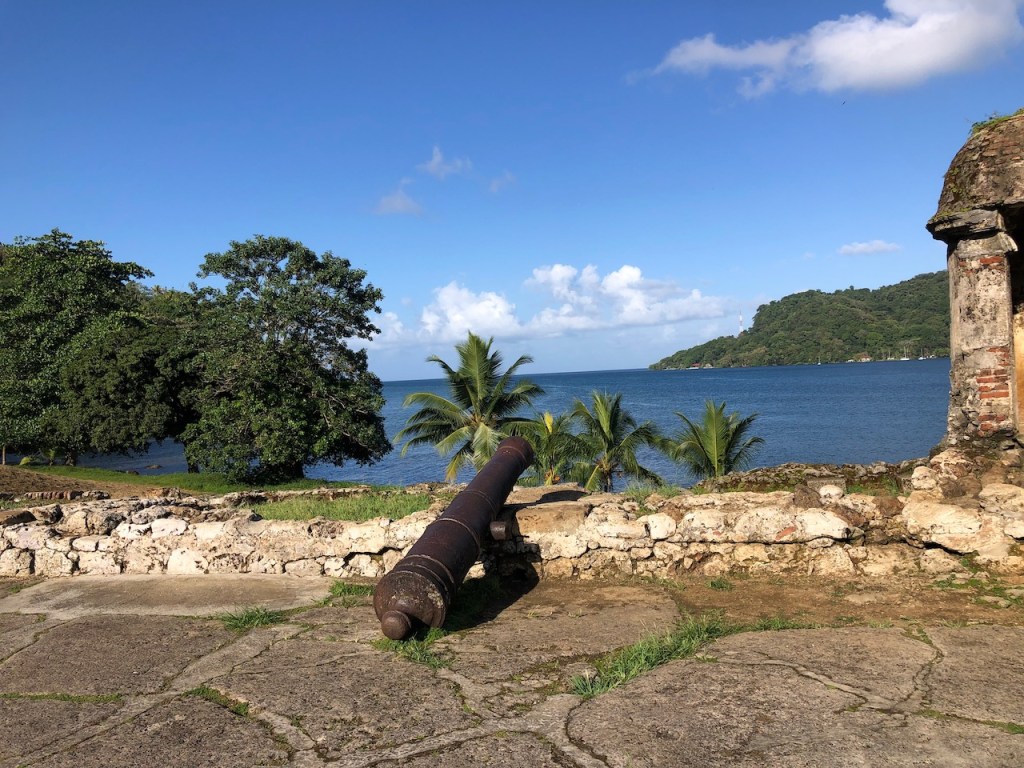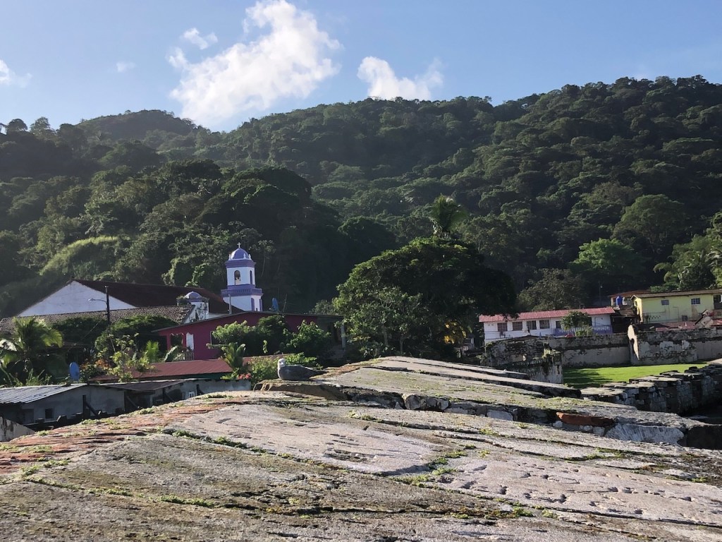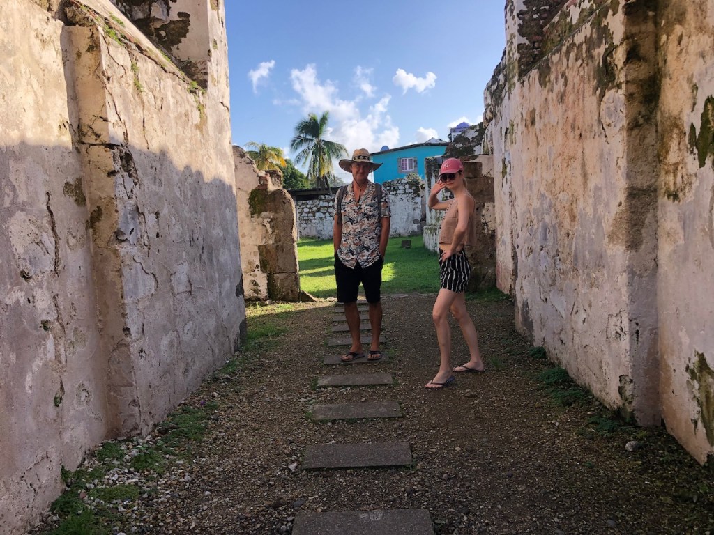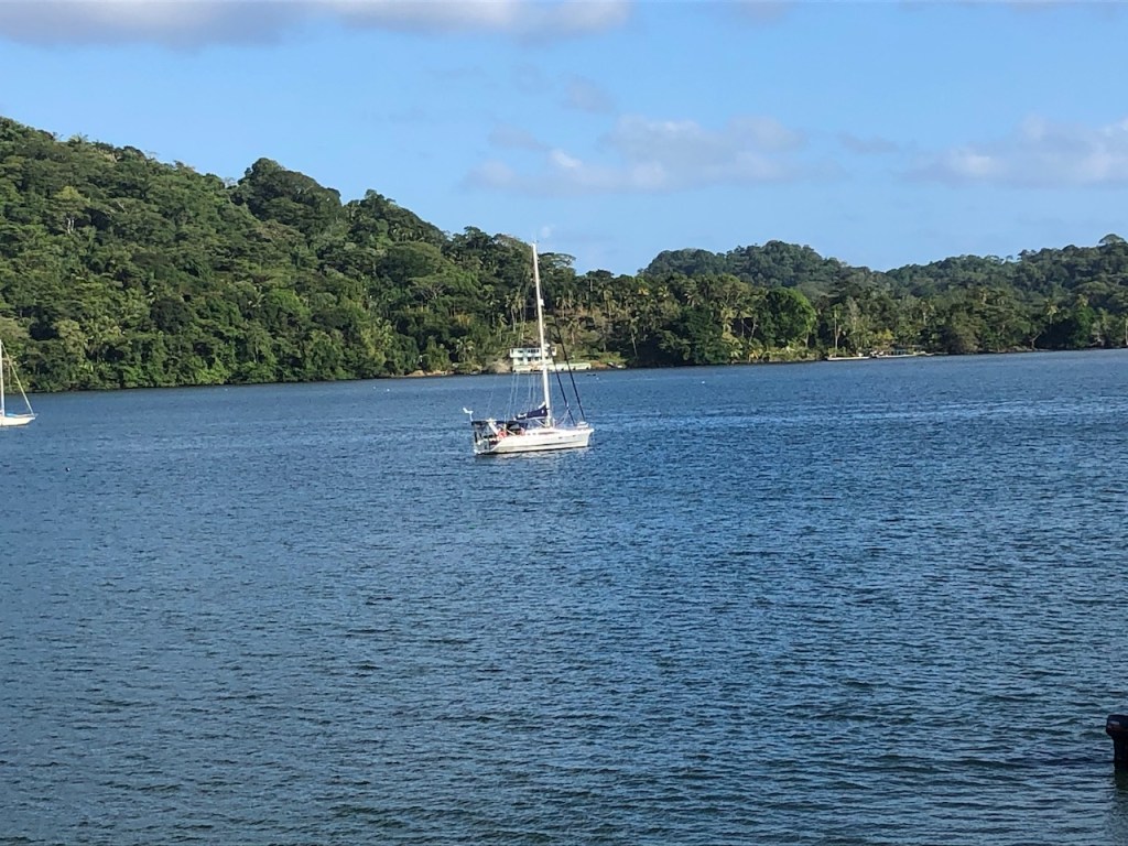 Poor kid had to work the very next daya first stroll around Lintonheading to Portobelo by busthe church at Portobelo, Iglesia de San Felipewas it still in use?posing at the ruins of Portobelothe bay of Portobelothe two at the fortificationthe other twothe perfect posing🙈ruins of “Fuerte San Jerónimo”El Capitano enjoying the view – I guessthe view ashorestrolling along the seasidea small parcour position, roughly there where the leaves of the small palm tree weresome kind of street artI liked the colour of the housemore ruins called “Santiago Battery”that was the Ovni from our friends Daniela and Mike, they anchored at the bay in Portobelo when we visited the townbig cannonsI was wondering what they sella typical busbench drainage of the villagea ride to get to Panamarina: the marina is just west of Linton bay and it is possible to reach with a dinghi through a canal of mangrovesit was a beautiful meandering trip through the mangroves