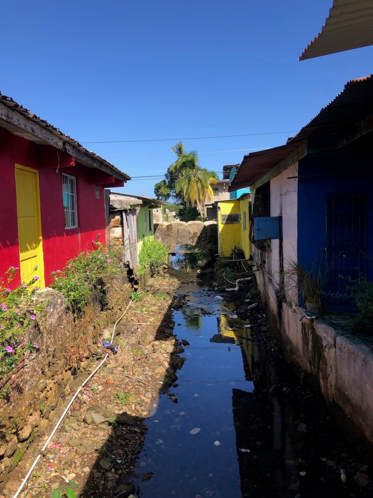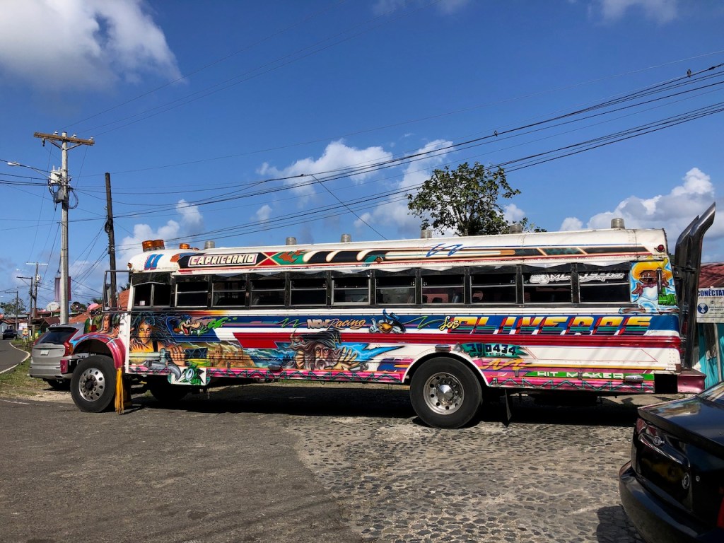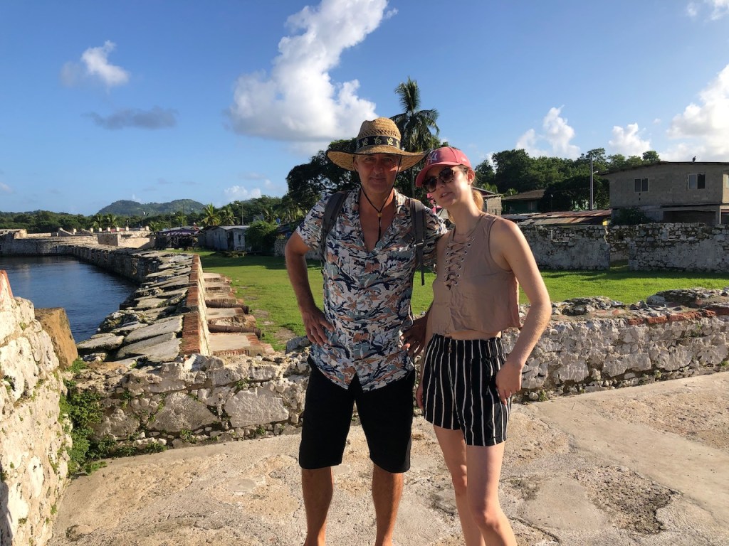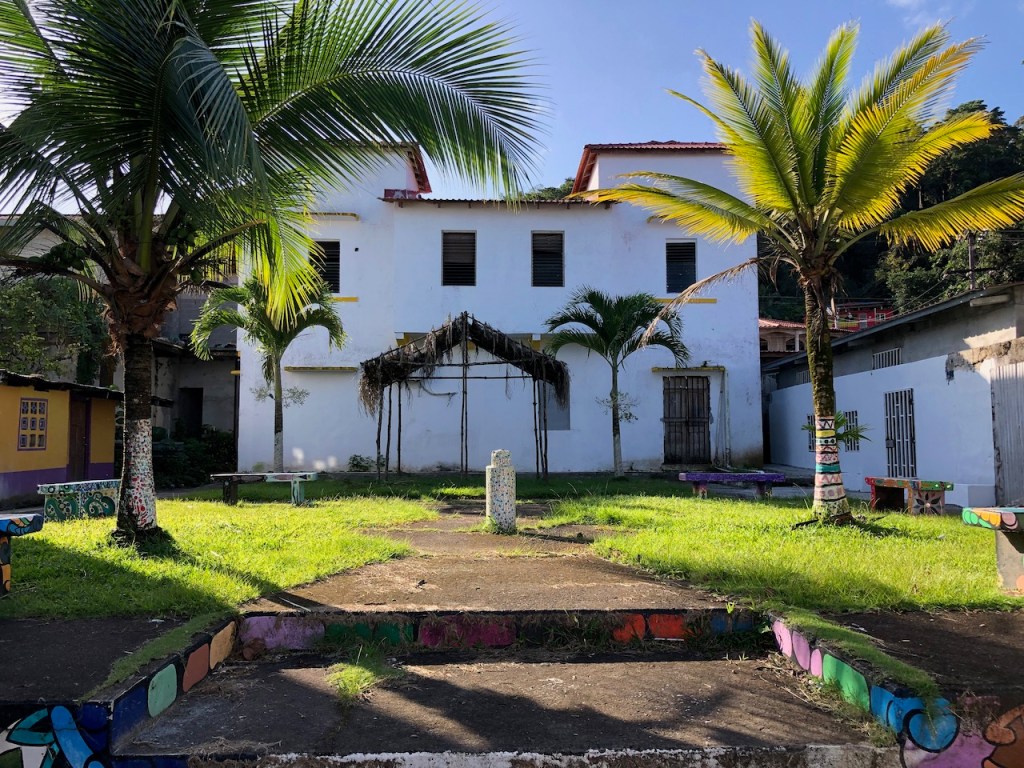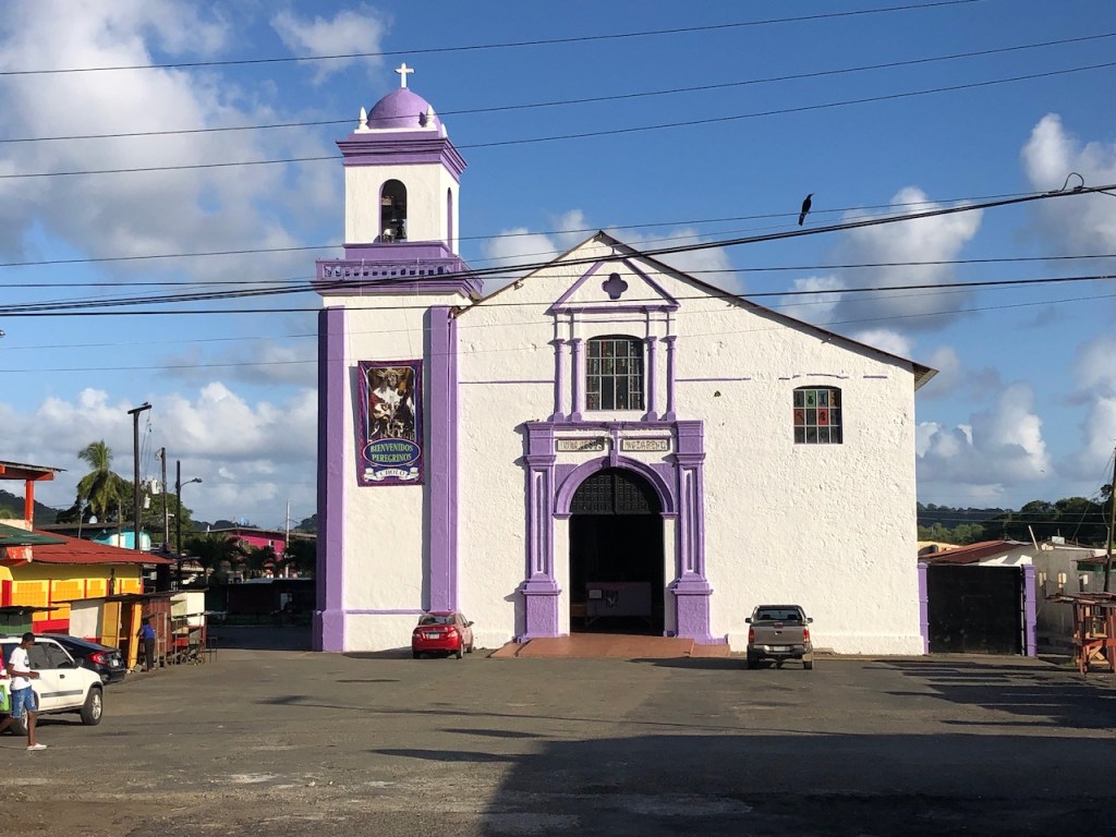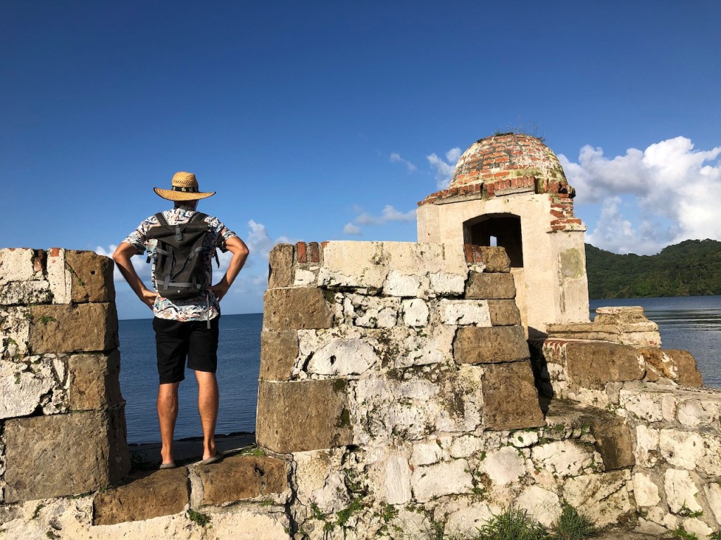 Poor kid had to work the very next daya first stroll around Lintonheading to Portobelo by busthe church at Portobelo, Iglesia de San Felipewas it still in use?posing at the ruins of Portobelothe bay of Portobelothe two at the fortificationthe other twothe perfect posing🙈ruins of “Fuerte San Jerónimo”El Capitano enjoying the view – I guessthe view ashorestrolling along the seasidea small parcour position, roughly there where the leaves of the small palm tree weresome kind of street artI liked the colour of the housemore ruins called “Santiago Battery”that was the Ovni from our friends Daniela and Mike, they anchored at the bay in Portobelo when we visited the townbig cannonsI was wondering what they sella typical busbench drainage of the villagea ride to get to Panamarina: the marina is just west of Linton bay and it is possible to reach with a dinghi through a canal of mangrovesit was a beautiful meandering trip through the mangroves