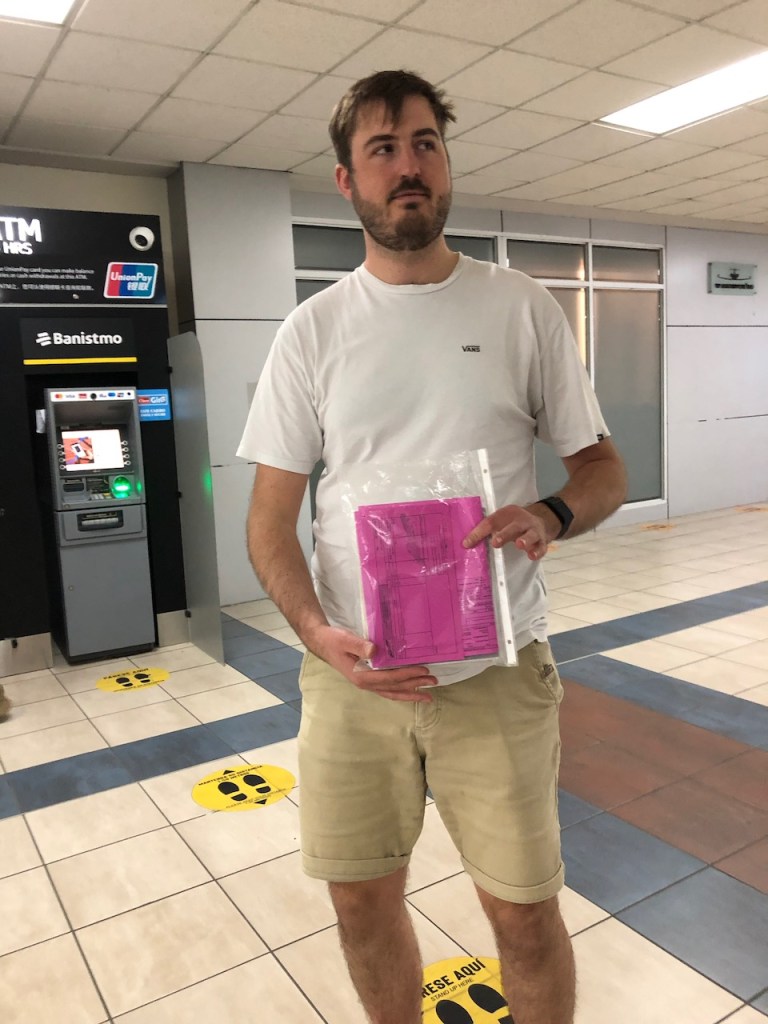 that pic was taken out of the metro, in the back one can see the impressive skyline of Panama CityLuis was and is always in a good moodthat was one of the important papers Luis got to find the agent somewhere at the old airportthis one was to eventually get out the suitcaseit did not look that spectacular , did it? sorry pics are a bit blurry🙈and here we were happy with the winchsome pics Luis took on our way back; taken somewhere between Sabanitas and Portobelojust before sunset we arrived at Altimatepassing some sleepy pelicansthe long awaited winch