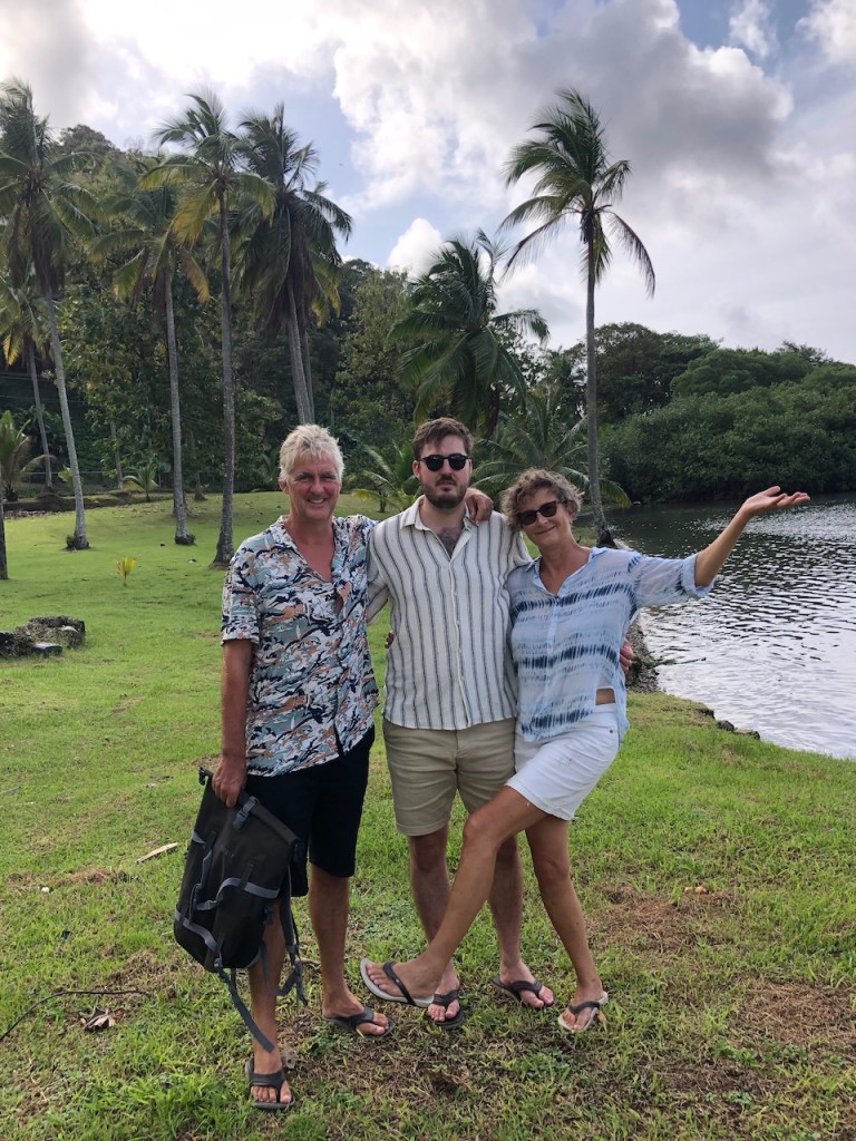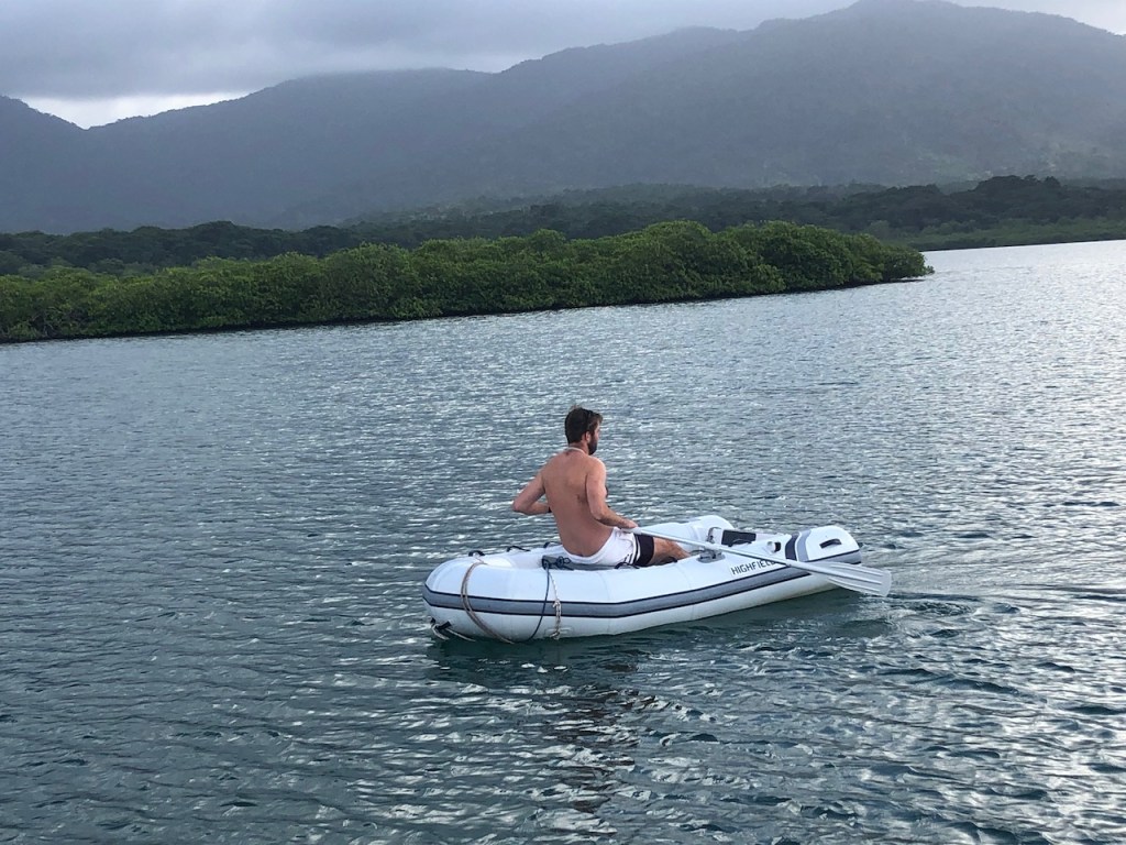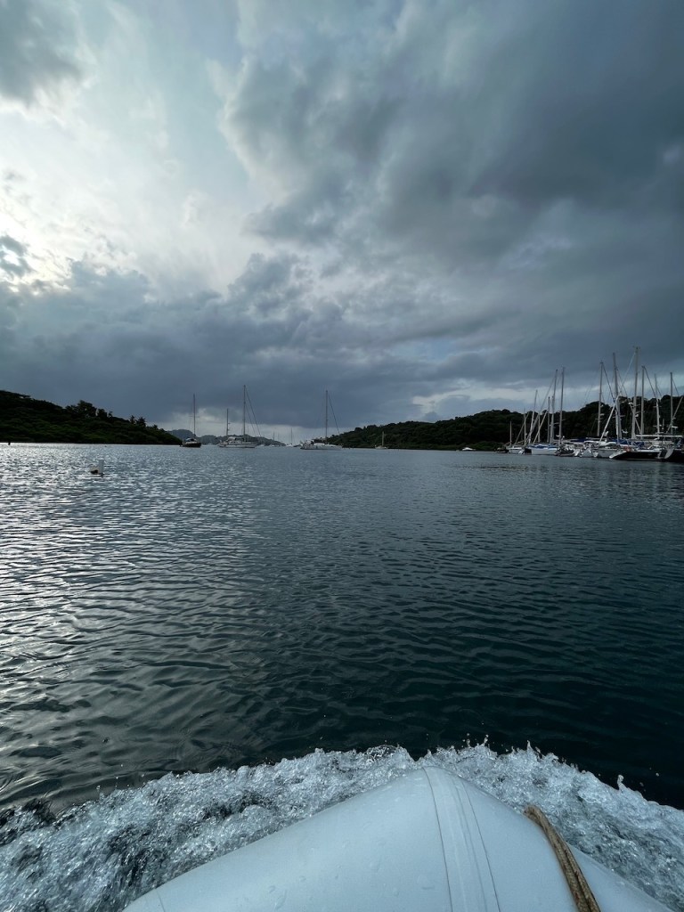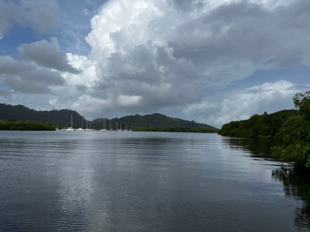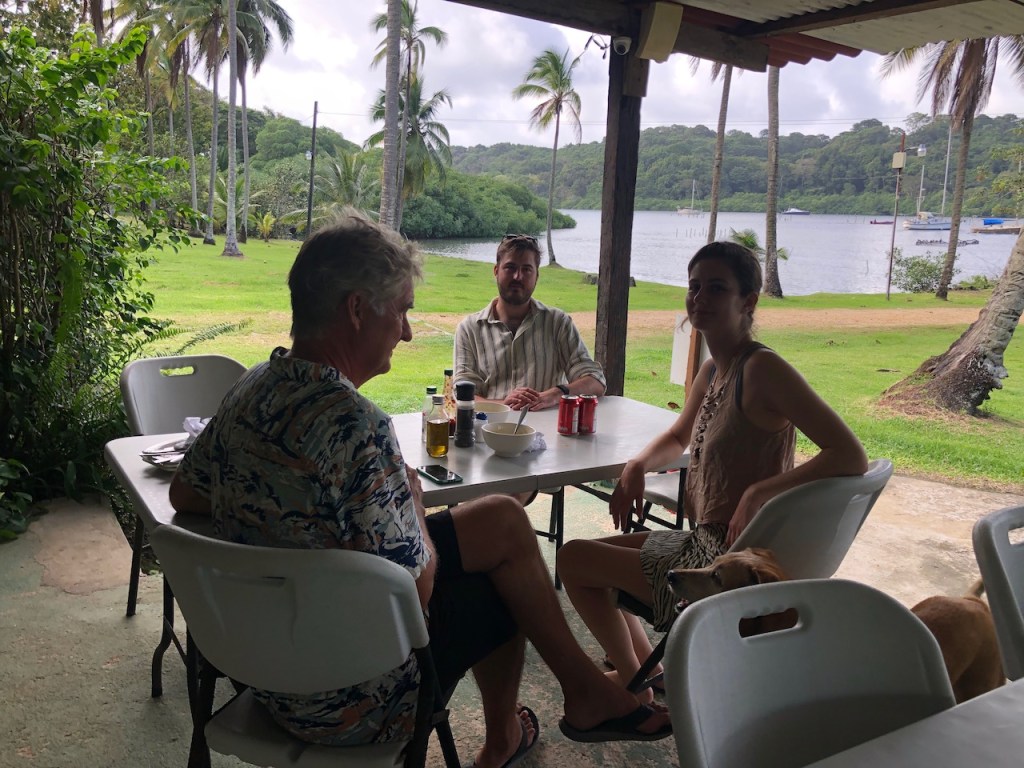 happy family🙃having lunch at the little restaurant hut at Linton the view of part of the anchorage and the boat yardit was indeed a special vibe drifting slowly through the mangroveshere we were hiding from some rain underneath a bigger tree finally reaching Panamarina