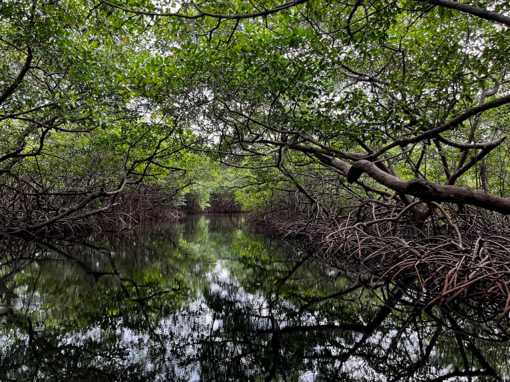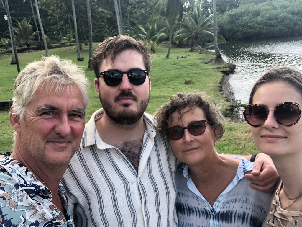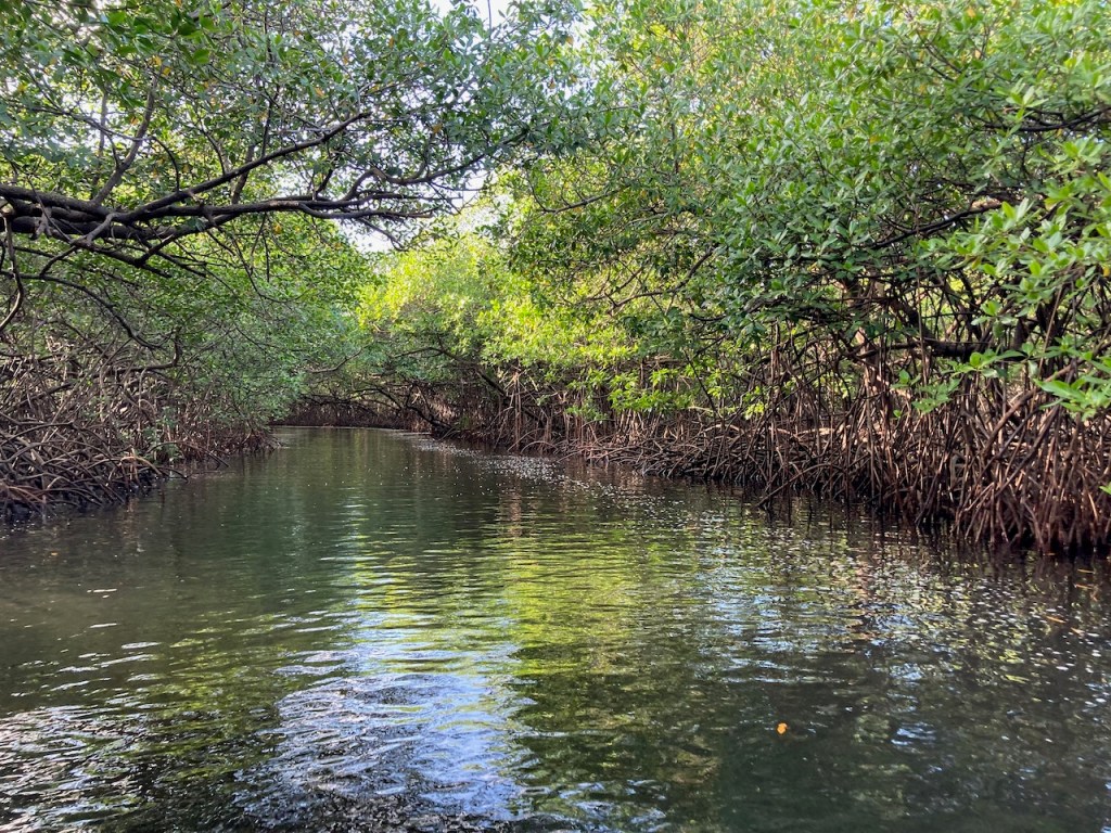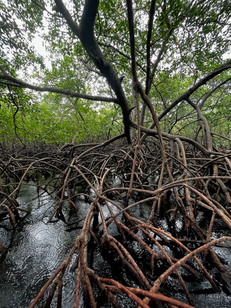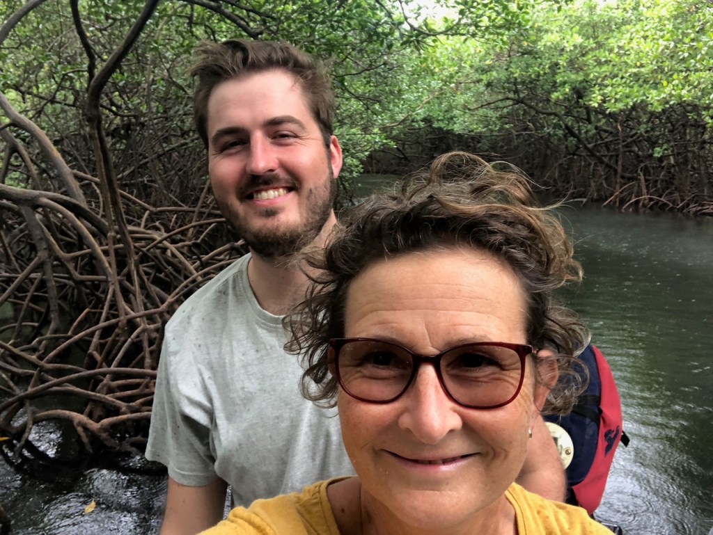 happy family🙃having lunch at the little restaurant hut at Linton the view of part of the anchorage and the boat yardit was indeed a special vibe drifting slowly through the mangroveshere we were hiding from some rain underneath a bigger tree finally reaching Panamarina
