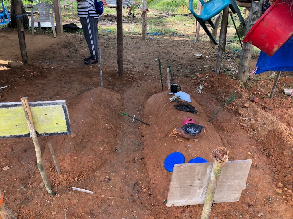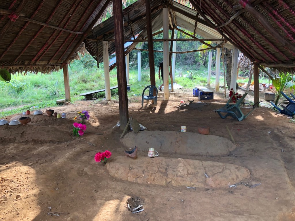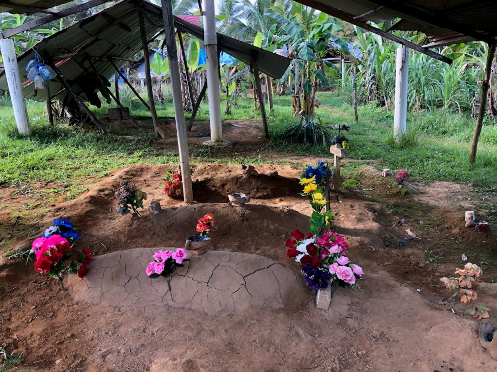 anchorage Isla PandorraLuis had taken a dinghy ride in the anchorage and taken some picswe just got picked up; Altimate was waiting for us to come backslowly making our way up the riverMola Lisa in the backfrom here we started to walkfind the geckoLisa gave us a blossom of a plant I can’t recall the name; it certainly made our lips very representativethe family grave yardher mothers grave covered with presentsour stop for lunch and jumpback on Altimate