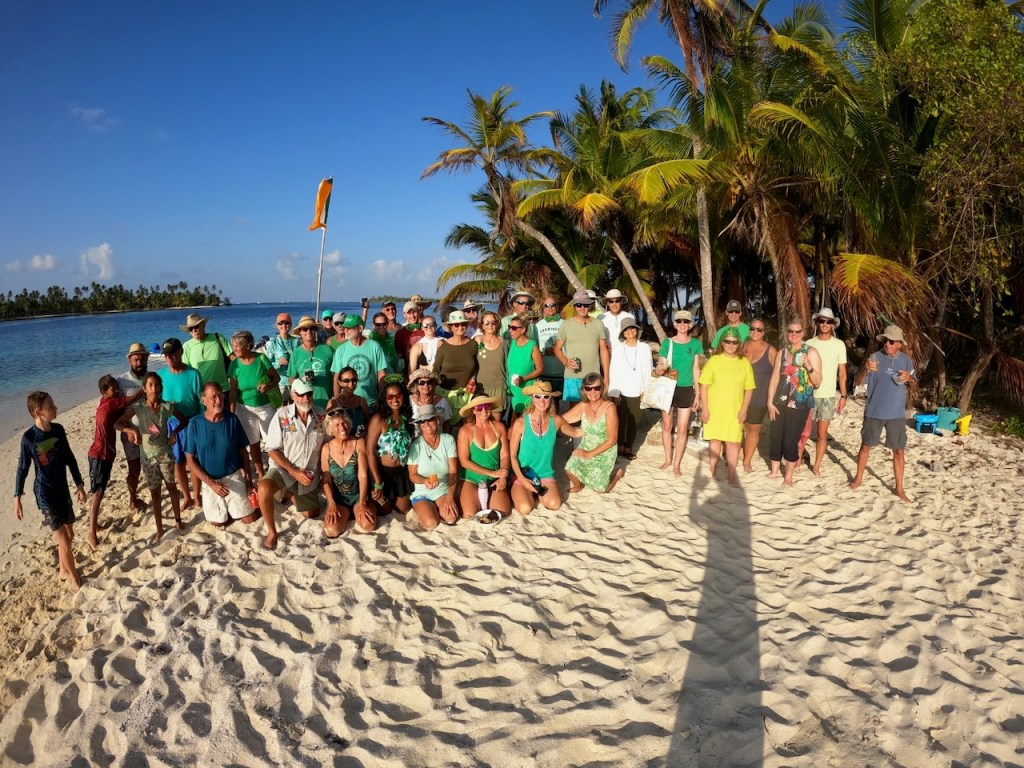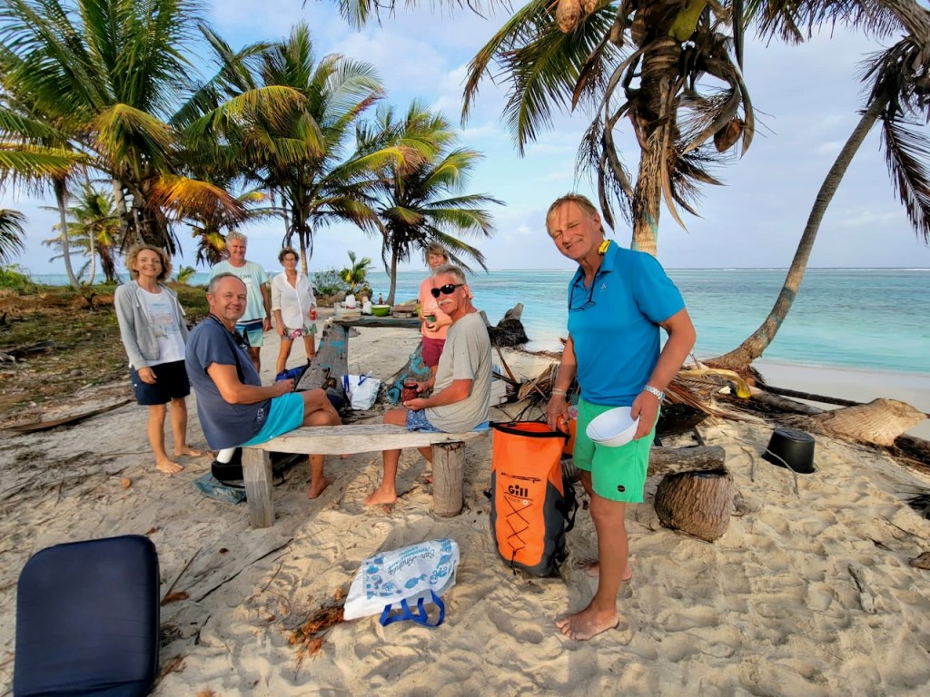 After snorkeling we usually had lunch and sometimes (to be honest rather often) a nice restful nap. Then it was already time to go ashore and meet other sailors. Ibin had set up a net and we had a volleyball👍. After a few days the word got around and it was a fixed date to start playing volleyball at around 4 pm. That was so much fun! Some of the cruisors were joining the game, others enjoyed watching. In the end we were all chatting and enjoying a “pipa” (no, not a drug, just coconut water!) or, if available, even a cold beer. Meanwhile Ibin got a fridge and freezer which made it possible for him to sell sometimes cold beverages. The 17th of March was St. Patricks day. I doubt that anybody was really interested in that holiday but hey if the Irish celebrate that day why not join them. A reason to party was and is always welcome among sailors! So some of the old hands organised a pot luck on little island Quinquindup and we celebrated St. Patricks day. All they needed to do was making an announcement on the radio and just like this the party was on. Everybody was welcomed and brought some food. We loved that! The best opportunity to try a lot of different kind of very tasty international food. Unfortunately I didn’t get a pic of the variety of all the finger food dishes… I can assure it was great! St Patrick’s day is, who knows why?, connected to green and a shamrock. So some of us tried to be greenish, others were very well decorated.