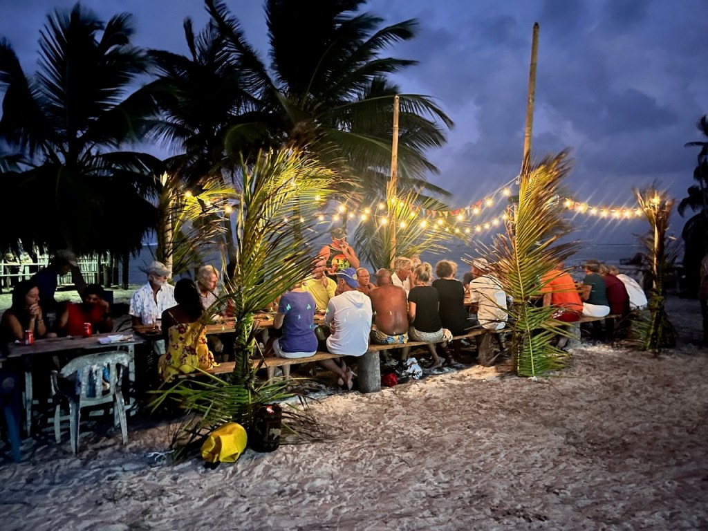 Meanwhile we all knew that we would have a triple birthday and all we had to do was counting who wanted to have dinner to let Ibin know. He said he would make a big cake for us. Well Doghan and I knew that it was mostly for Deb but we were very fine with that. After all Deb and Reg (who just sadly passed away in January) were living there at the same anchorage for about 20 years. So she was kind of family. I think that was one of the best birthdays I’ve ever had so far. We didn’t have to do anything. The location was there and stunning! Who doesn’t want to have party on a beautiful beach? Ibin even set up trunk tables and benches for us so we could sit all together. The food and beverages were provided. Even the decoration was looked after by some fellow sailors. Oh, and a looooooot of pics were taken. A dream birthday party! We, the birthday kids could just enjoy our own party. I loved and appreciated that soooo much😁. Thank all of you for a very special day!!!