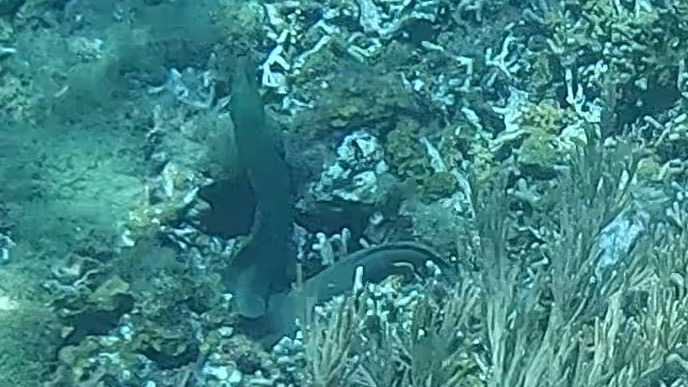 Our daily routine was snorkeling (we were both fit again) in the morning with Gloria and Mike from “Respite” and Helen and Mark from “Cloud Nine”. That was absolutely amazing! They spent their last 10 winters in San Blas and knew the best places to snorkel. It was such a pleasure to snorkel together. Especially Cloud Nine knew all the names of the fishes and the other wildlife. They showed us zigzag ways to different reefs which we wouldn’t have dared to go to. The most beautiful snorkel so far was a fantastic cut in one of the outer reefs. It was so cool to swim through the deep, narrow meandering cut. Quite exciting as you never knew what would come from beneath to say hello 😉. I can’t count anymore how many nurse sharks and rays we saw! One day I even saw a green moraine and had trouble to get the attention from my fellow divers. I wanted a pic for proof! By the time El Capitano was close by, the moraine was hiding behind a stone, but he still managed to get a shot 😁! Not the best but at least.