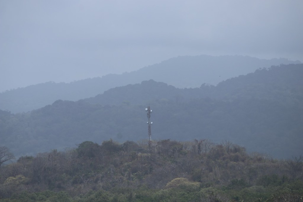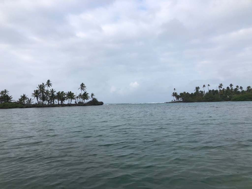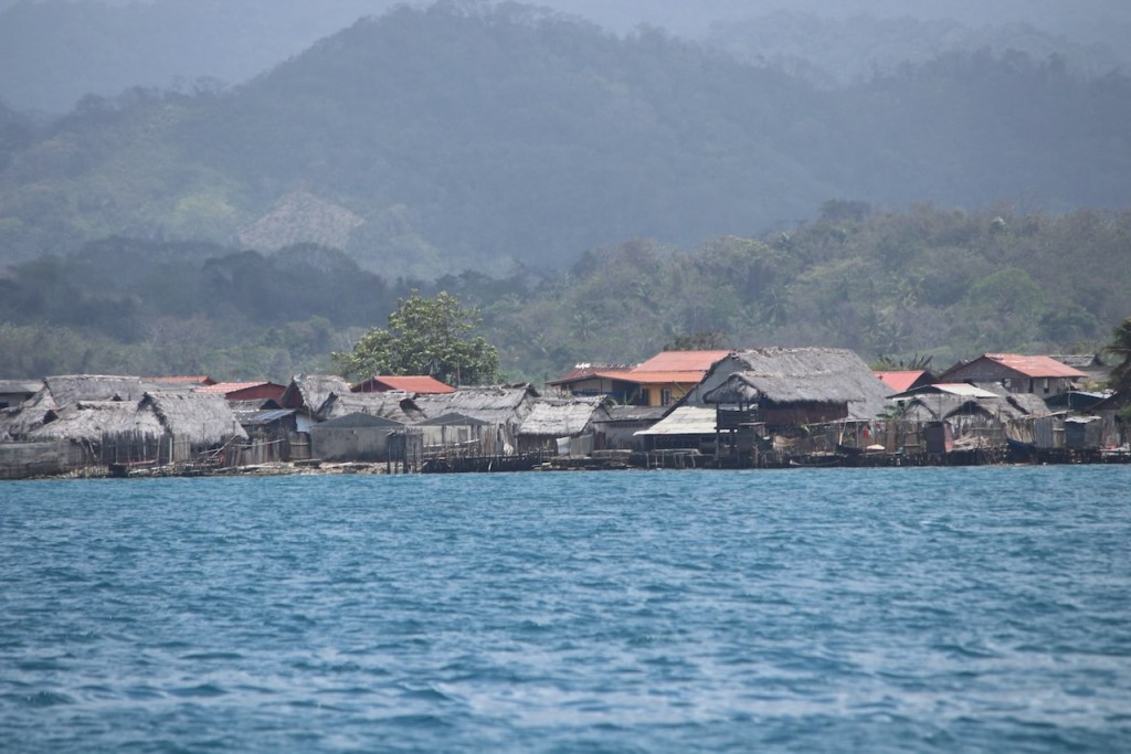 on the way to Islandia we passed by this sad pictureovercasted mountains and an always welcomed cell towerAlligali,a village before the anchorage of Islandia Alligandi was also an island, though it looked from our perspective as if built on mainlandone of the two pic I made from the anchorage of Islandia, we went there to snorkel but the waves and current were too strong a Guna couple arriving
