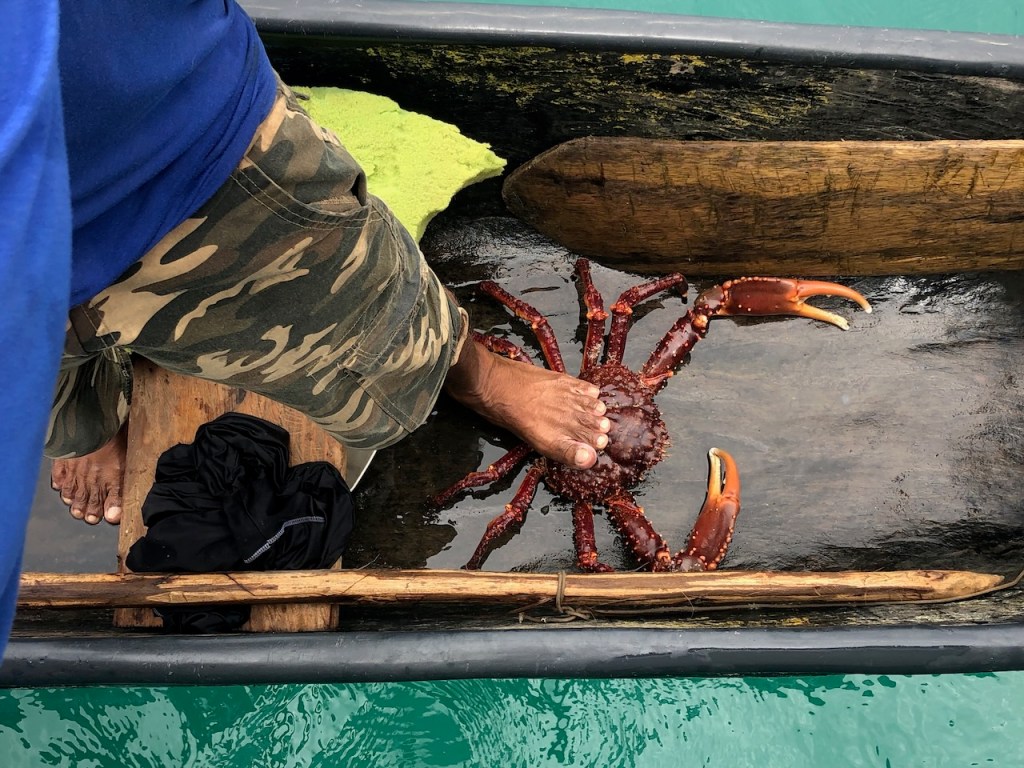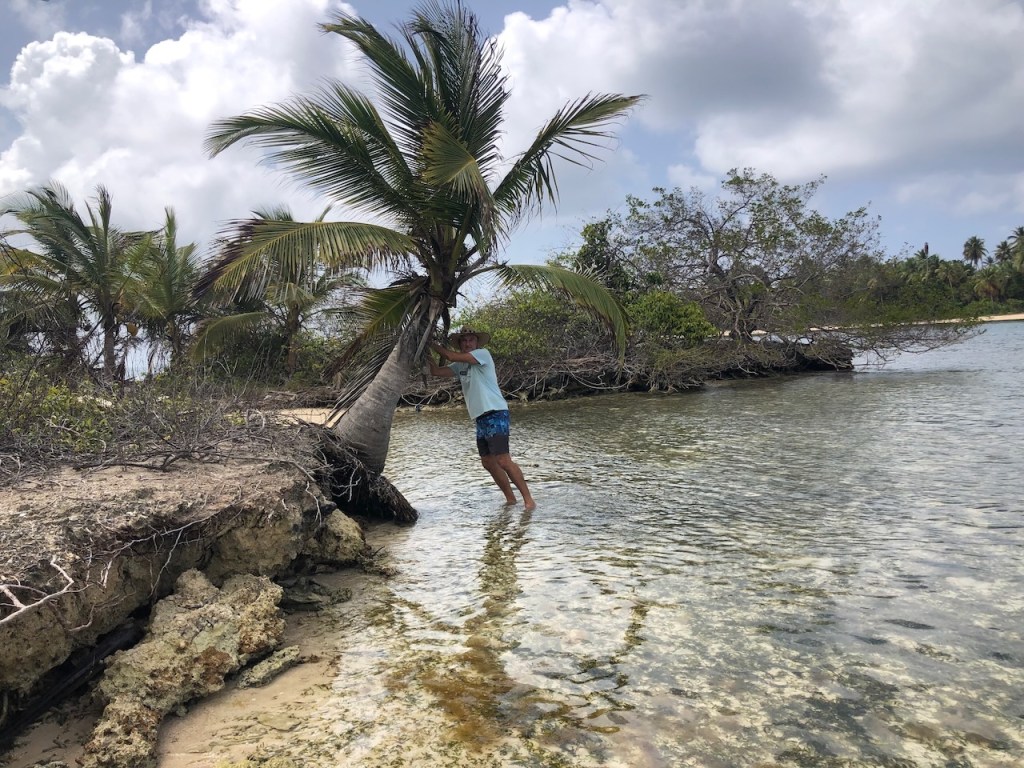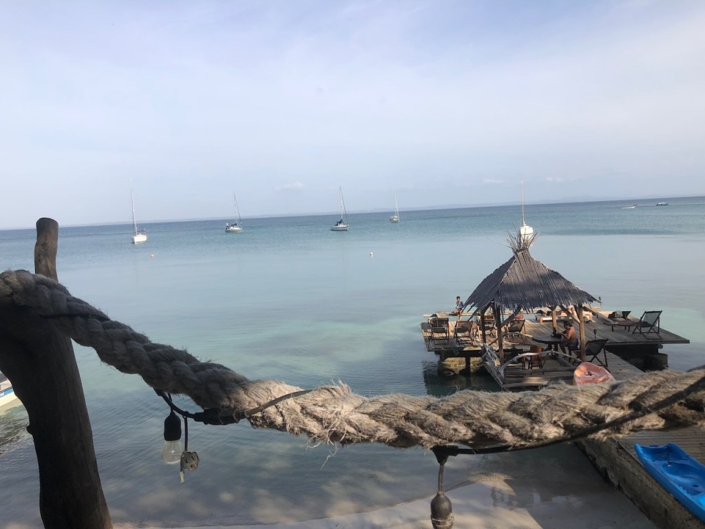 a part of Snug harbour those guys offered us this huge crab, we preferred a fishit was a big one!and we took this one a trigger fish; it was a delicious one but it would have been nice to know how to handle the leather like skinSailing vessel “Brightnest”the day we made a video at the beach of the island with no nameme getting on the SUP with my fancy dress🤣we were taking the dinghy out and explored some other small islandsI do have a strong Captain, don´t I ?a new mangrove