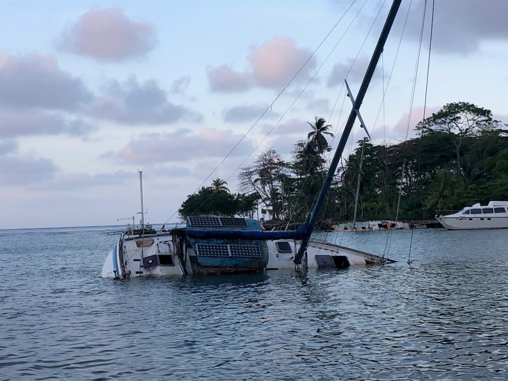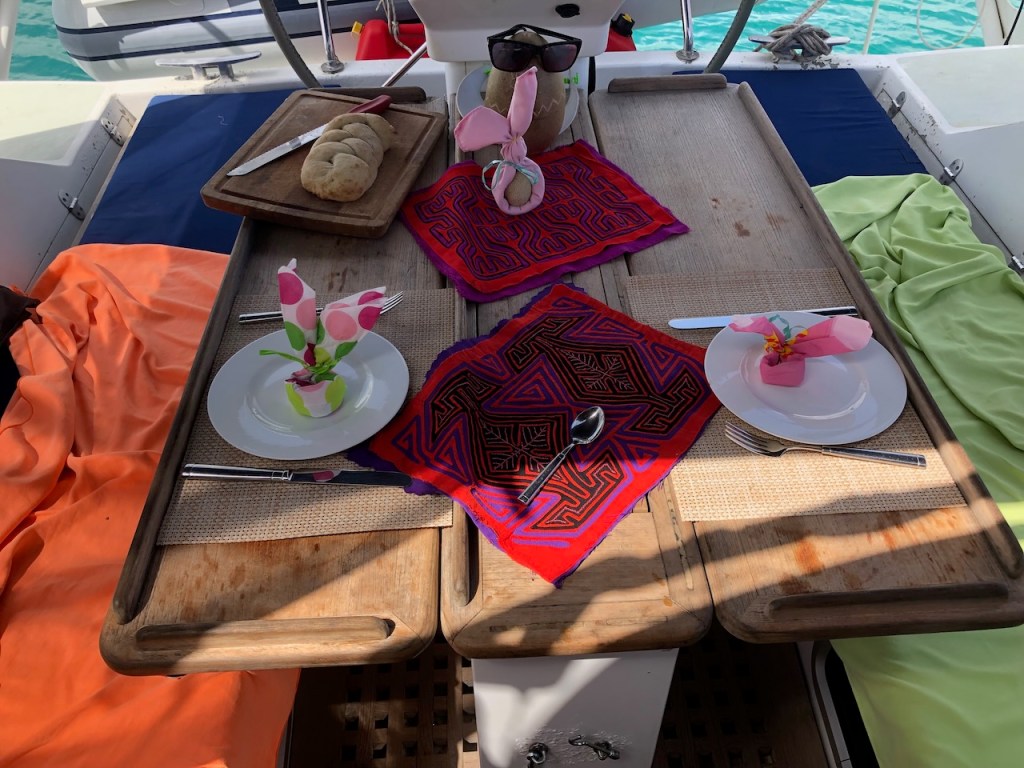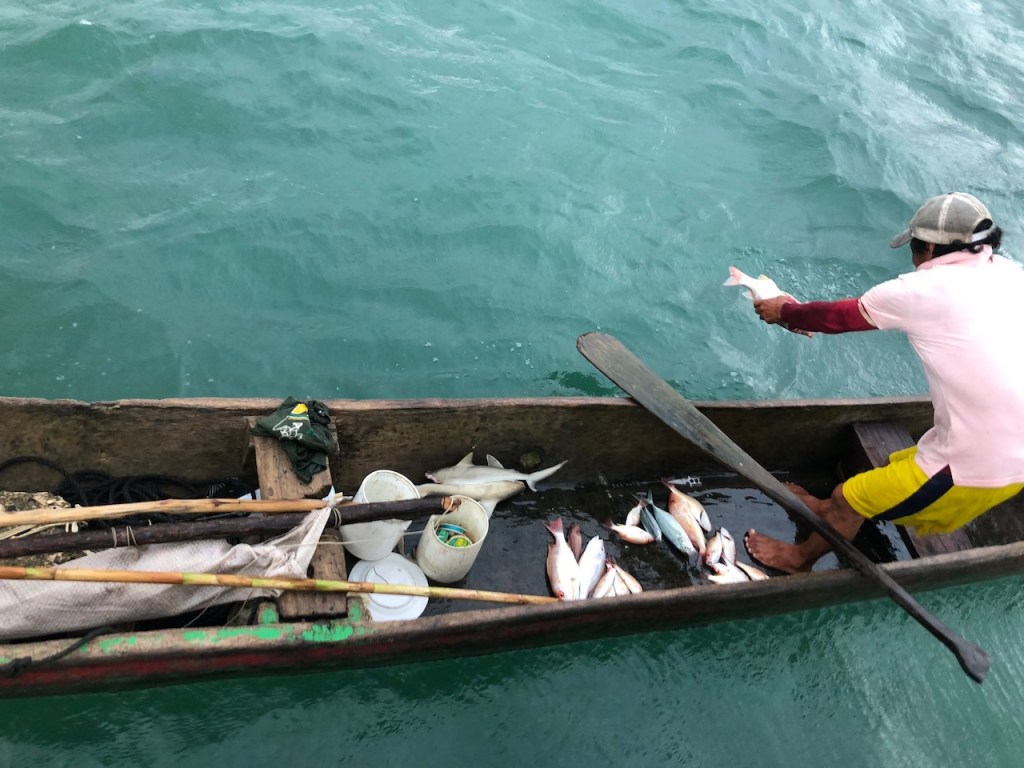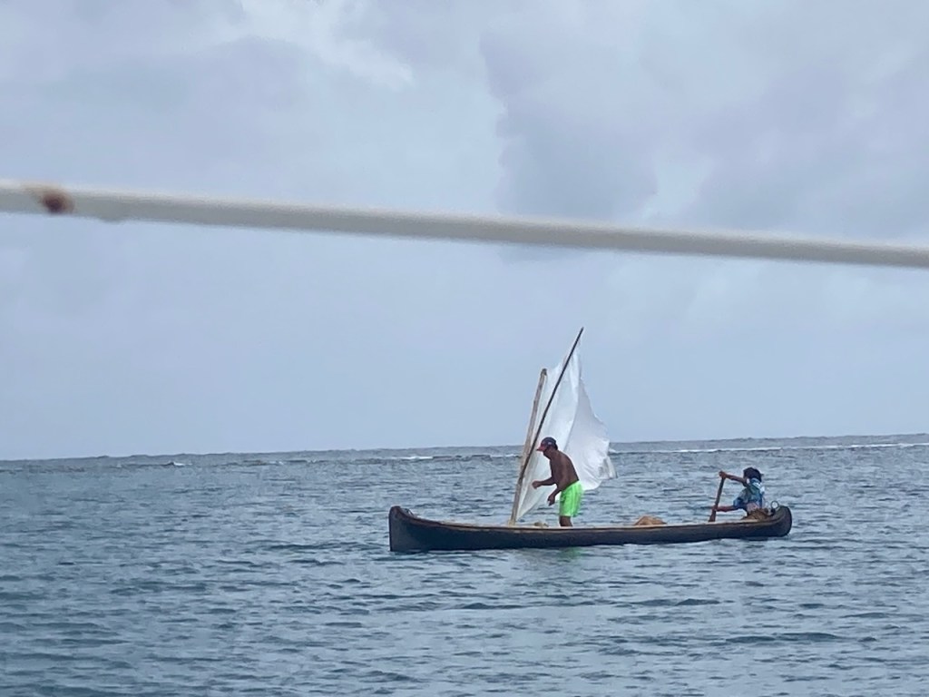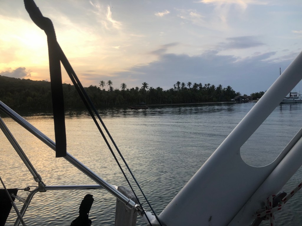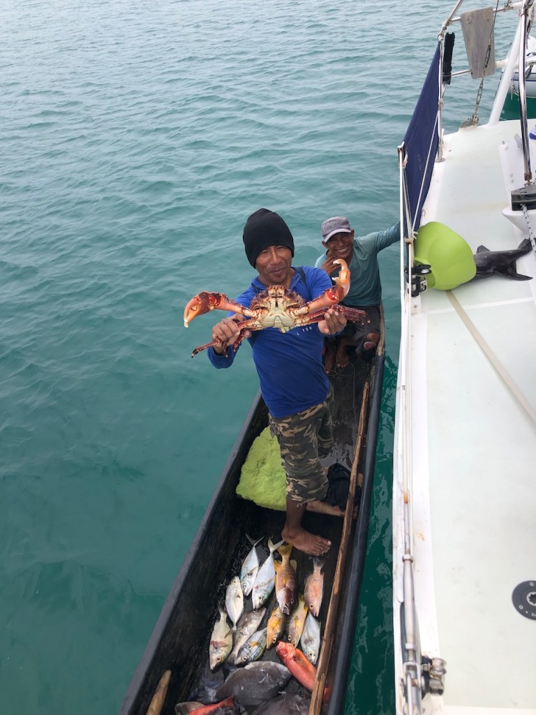 we dared to take some pics when nobody was around in Achutupohere I asked the owner to take some pics; one can see how much work it is to make an ulu, pretty amazing and all made just by handsome more fish for us, they even had baby sharks arriving at Isla Piña we were not alone, just after we were settled another boat joined us, it was an Austrian couple (its hard to see at the right of the pic)the village of Isla Pinathe Austrian boat Mota