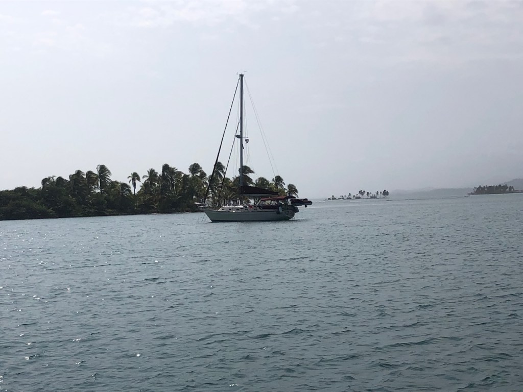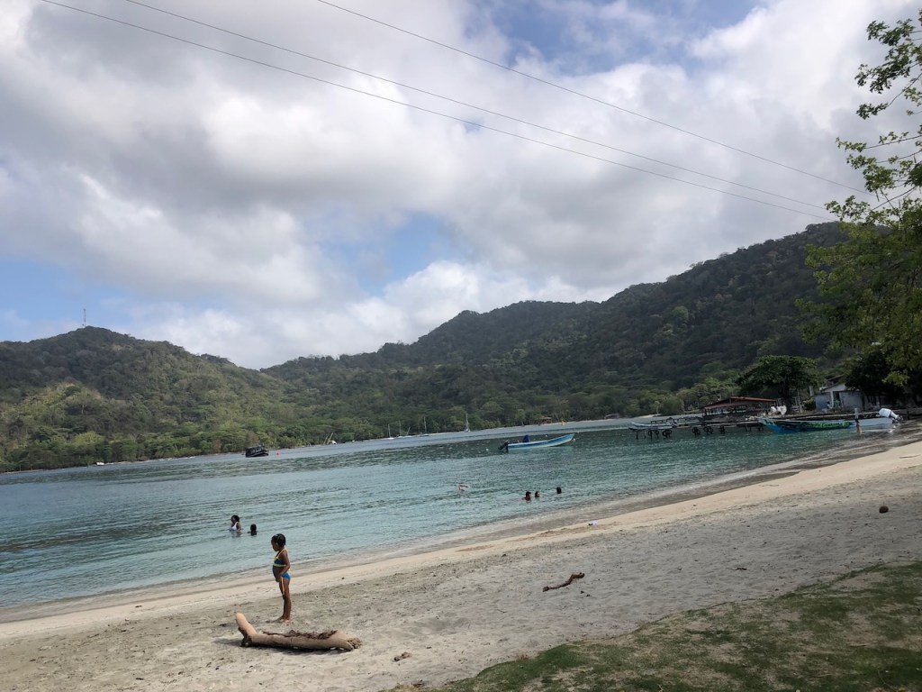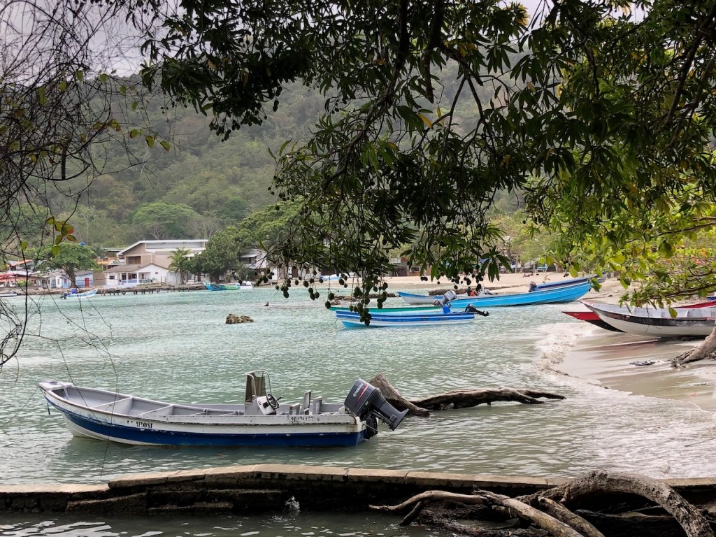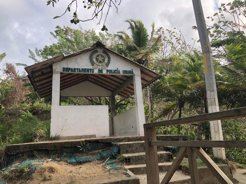the view of the bay from Altimatea part from Sapzurro´s bay from ashorethe other end of the baymore baythis boat was washed ashore just a couple of month before – so sad, we met the owner Andy; he was not yet sure what to do with the boatno, El Capitano was not playing golfthe small church of Sapzurrojust in case someone needs a haircut…one day we walked to Capurgana that is the next village just a tiny bit bigger than Sapzurro; it was an intense though beautiful 1,5 hour walk over the hills I´m not sure anymore if that was the bay of Sapzurro or Capurgananot the best pic but for sure the bay of Capurganathey use donkeys for transportation, but where is the donkey?here we gothe other side of the hill already in CapurganaI just like horsesthe next day we wanted to visit La Miel, a 30 min walk to the very small village already belonging to Panamá; at the top of the hill it was to late in the afternoon, the police officer did not let us go furtherthe bay of La Mieland the view of Sapzurrosome pretty tile art in Sapzurroa posing El capitanoat the far end of the east baysome sunbrella decoration at a beachvery low hanging fruits , unfortunately not yet ready to eata very pretty hostelEl CapitanoLa Capitanathe view from our anchorageand sweet little baby sleeping on the floor, we bought some delicious avocados and papaya from her parents, they live at the beachthat might have been a baby iguana?