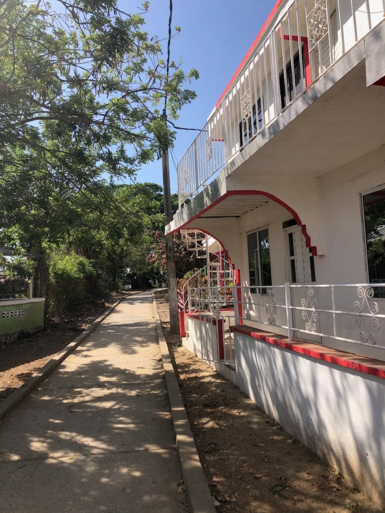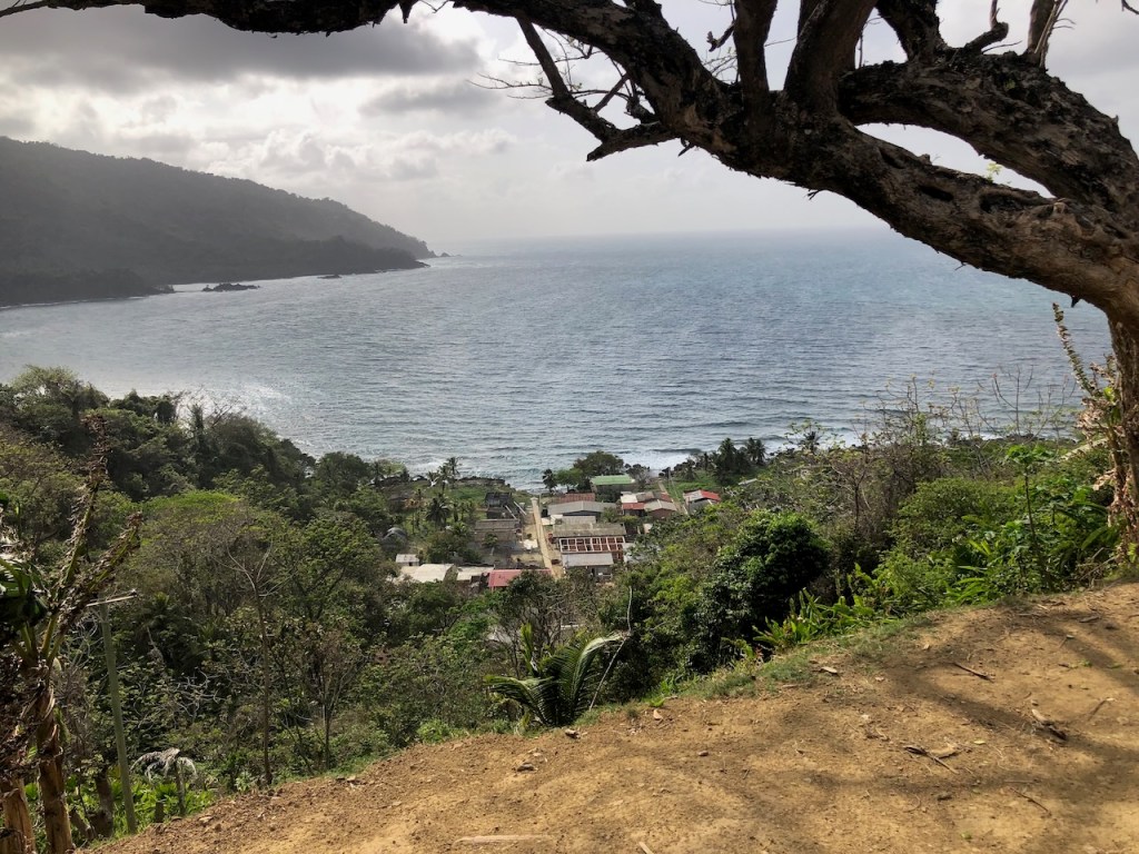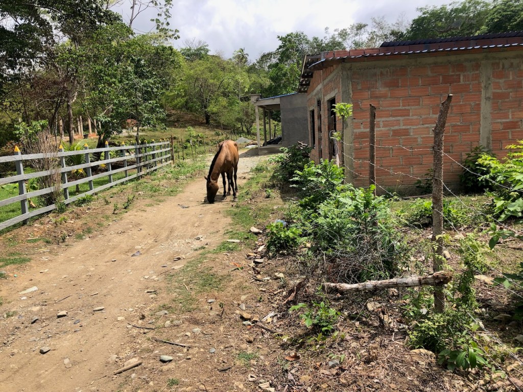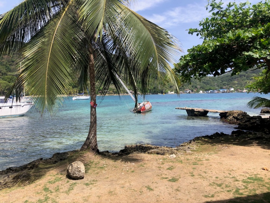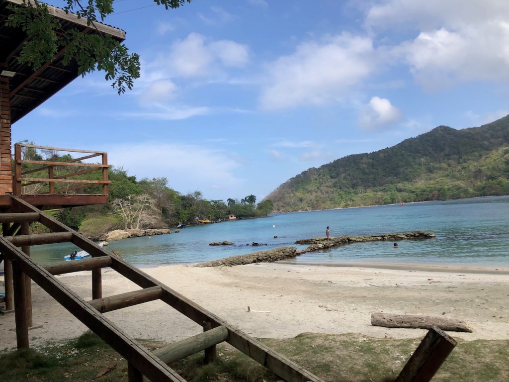 the view of the bay from Altimatea part from Sapzurro´s bay from ashorethe other end of the baymore baythis boat was washed ashore just a couple of month before – so sad, we met the owner Andy; he was not yet sure what to do with the boatno, El Capitano was not playing golfthe small church of Sapzurrojust in case someone needs a haircut…one day we walked to Capurgana that is the next village just a tiny bit bigger than Sapzurro; it was an intense though beautiful 1,5 hour walk over the hills I´m not sure anymore if that was the bay of Sapzurro or Capurgananot the best pic but for sure the bay of Capurganathey use donkeys for transportation, but where is the donkey?here we gothe other side of the hill already in CapurganaI just like horsesthe next day we wanted to visit La Miel, a 30 min walk to the very small village already belonging to Panamá; at the top of the hill it was to late in the afternoon, the police officer did not let us go furtherthe bay of La Mieland the view of Sapzurrosome pretty tile art in Sapzurroa posing El capitanoat the far end of the east baysome sunbrella decoration at a beachvery low hanging fruits , unfortunately not yet ready to eata very pretty hostelEl CapitanoLa Capitanathe view from our anchorageand sweet little baby sleeping on the floor, we bought some delicious avocados and papaya from her parents, they live at the beachthat might have been a baby iguana?