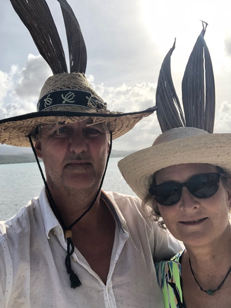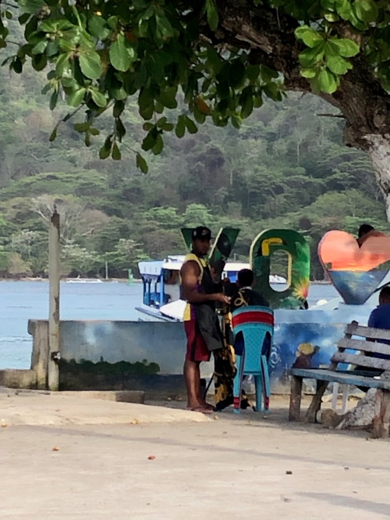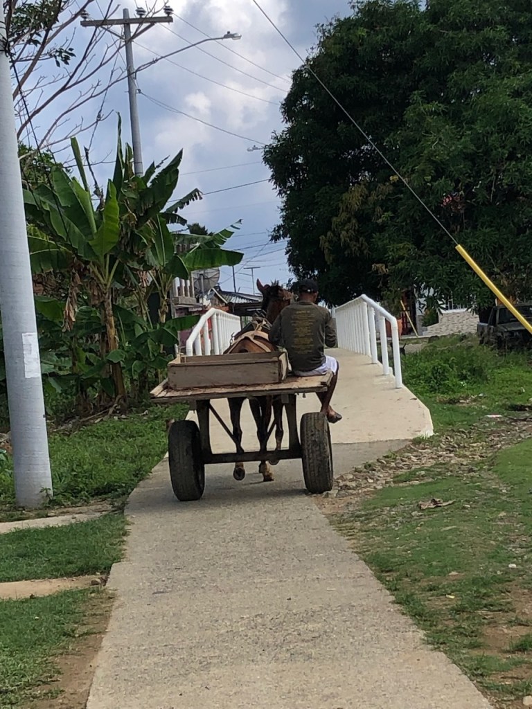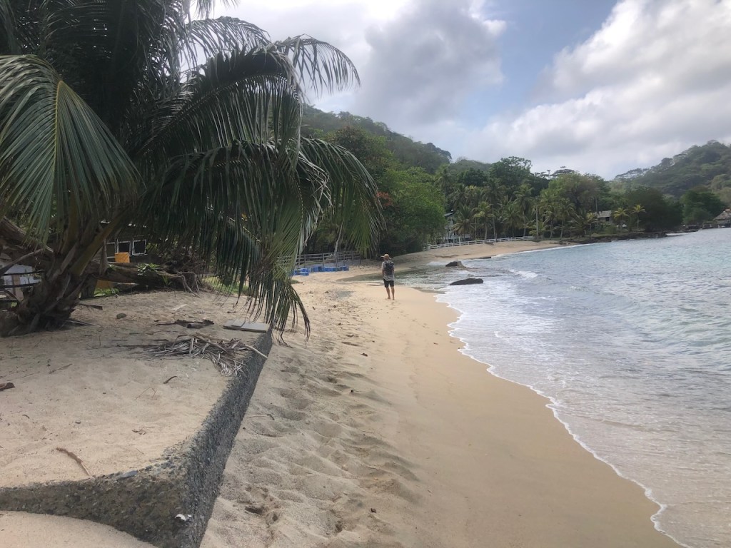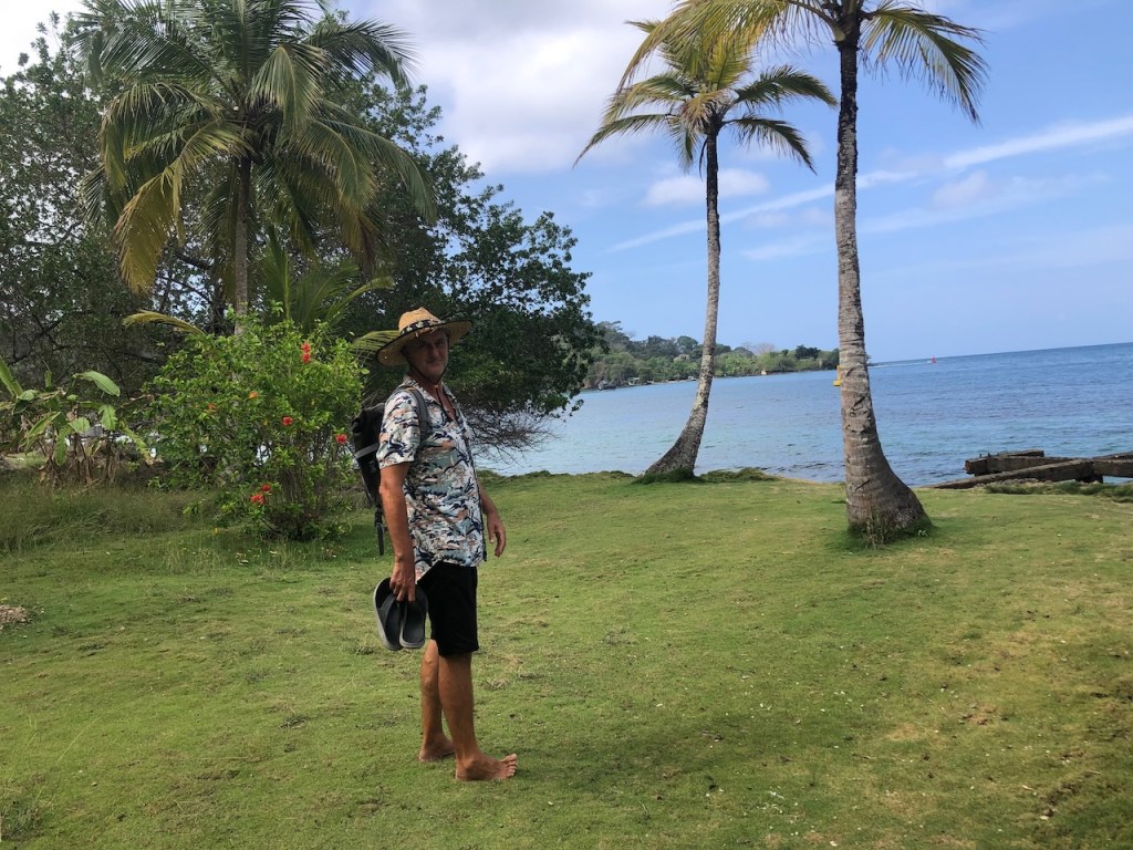 Obaldia is also very small and greenwe landed at this beach with the tenderdid they run out of “R´s”?they used these horse-drawn carriages a lot for transporting heavy materialand Victor, the port captain of obaldia enjoying a selfie with us