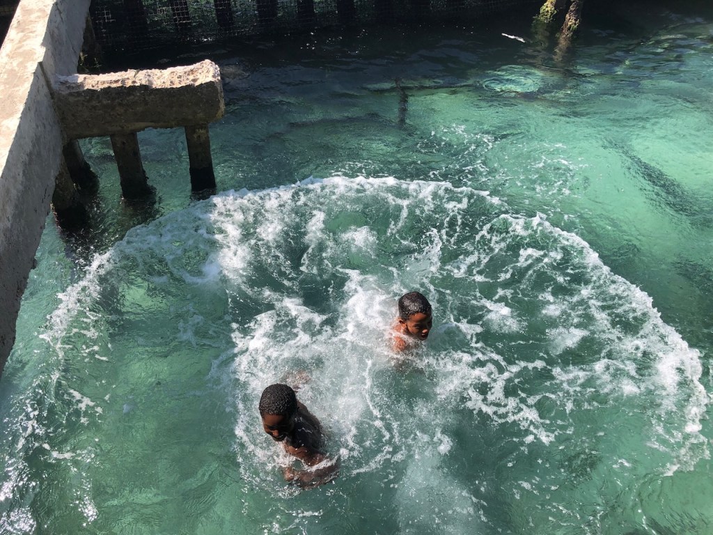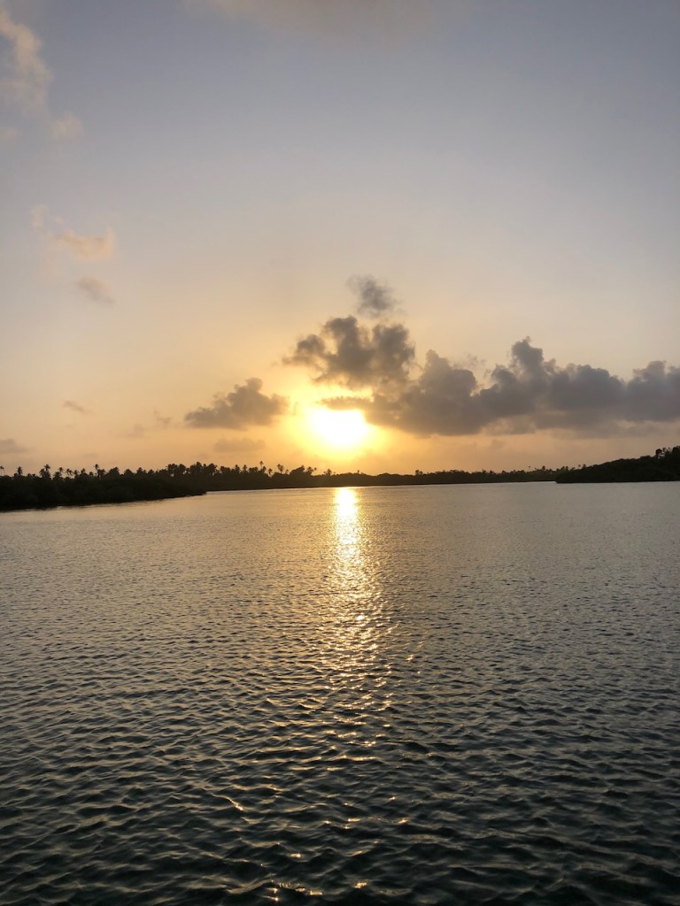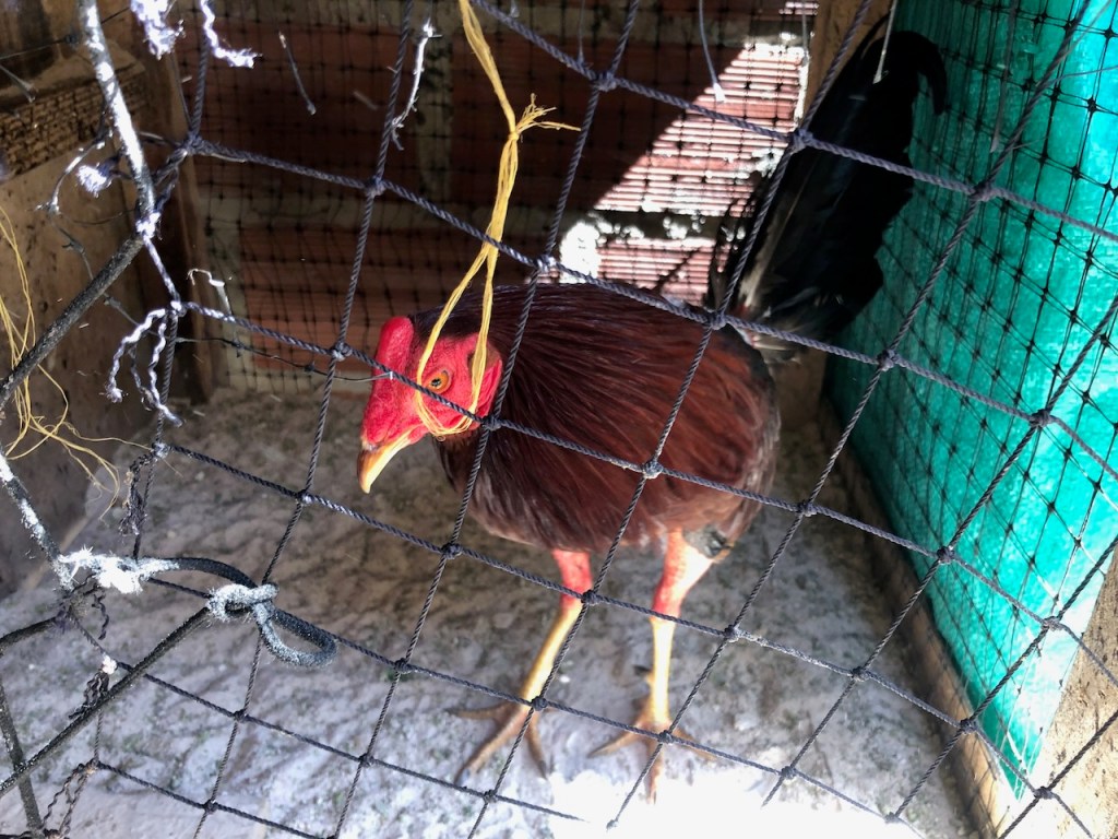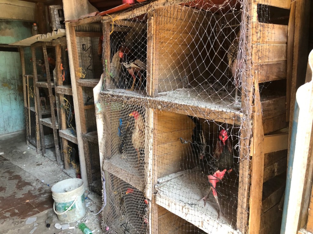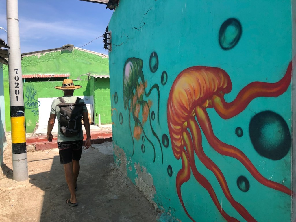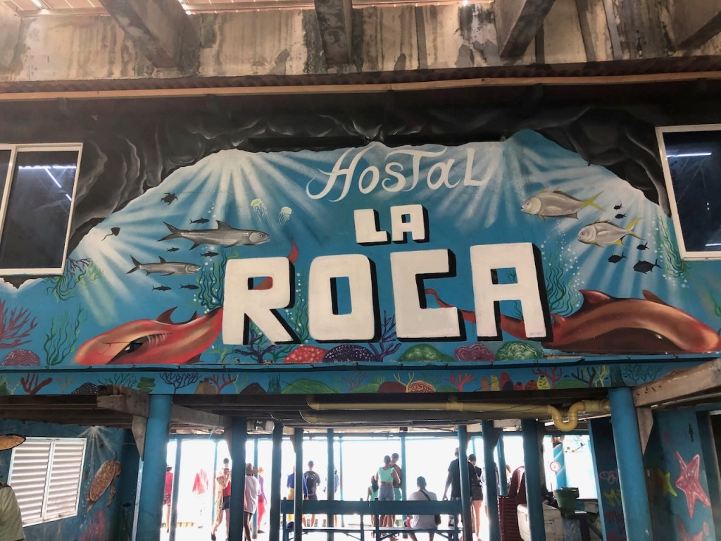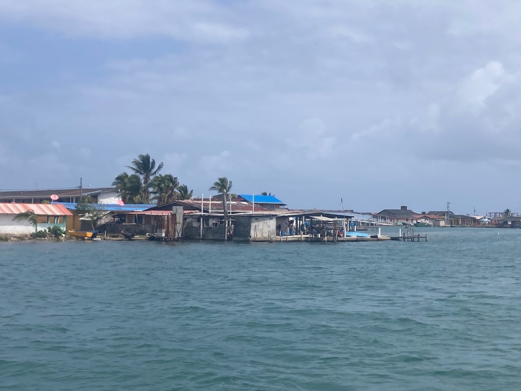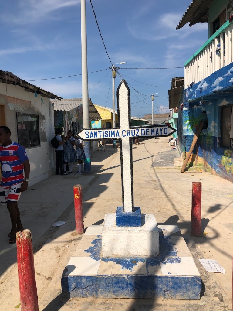 we passed this buoy, landing platform for boobies (I think)our anchorage in Tintipanthere were some pretty nice hotels at the beach line, but nothing else . behind the hotels mangroves that was itit was possible to walk along the beach side from hotel to hotel, but that took us only about 5 minutes, not much to do at Tintipan ashorea baby ray the hotel staff was bored so they showed us their rooms, we didn´t ask for that, but curious how I am I had a look😉, big bedsbig chairsthe pool areathe beach walkwe met Raphael and his wife Nerina at the beach, they had a small restaurant and cooked for us, because there were so many mosquitos in the evening they had decided to deliver the food to Altimate, very nice guyswe also visited Islote, a small man made ilsand I think these guys were kept for cockfightsthe even had an aquariumthe kids were using the aquarium as apoolmany fish in there, all the same kind, we also saw some turtlesa different kind of aquariumcolourful alleyschool kids having a chat