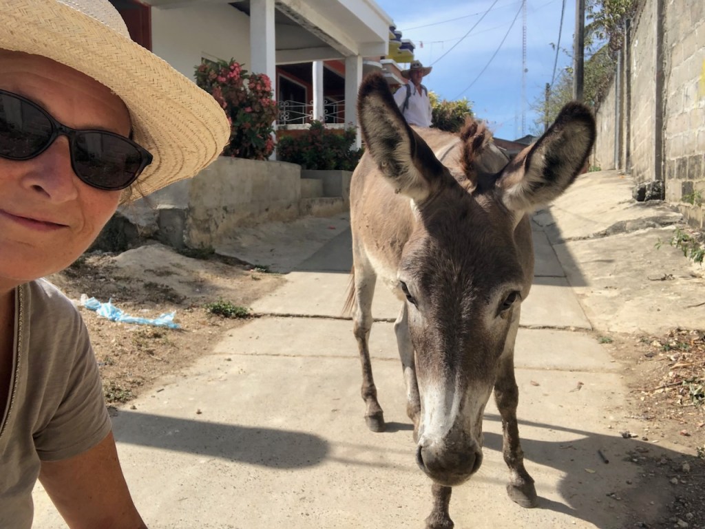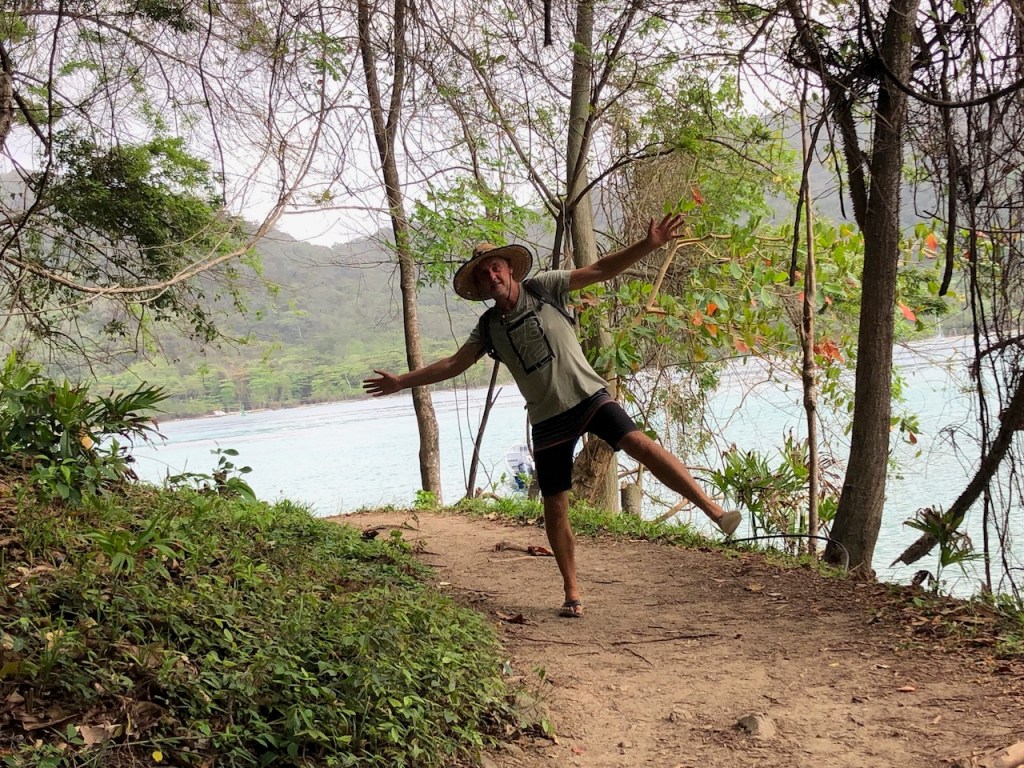 selfie with donkeysomewhere at the village at Isla Fuerteif I remember right that was the tree called TunTun, not sure what made it so special my guess, this was a young walking treeslash and burn agriculture?the walking treean indeed impressive treepeacocks were sneaking through the woodsit was difficult to believe that it was only just one tree with all its aerial rootshaving a drink at a lodge where we were anchoredand miss cat was enjoying her afternoon napjust another path to somewherePlaya Cebolletaa walk to Punta Florenciasometimes it did look a little like ItalyI do love the cute roofsmorte peacocks