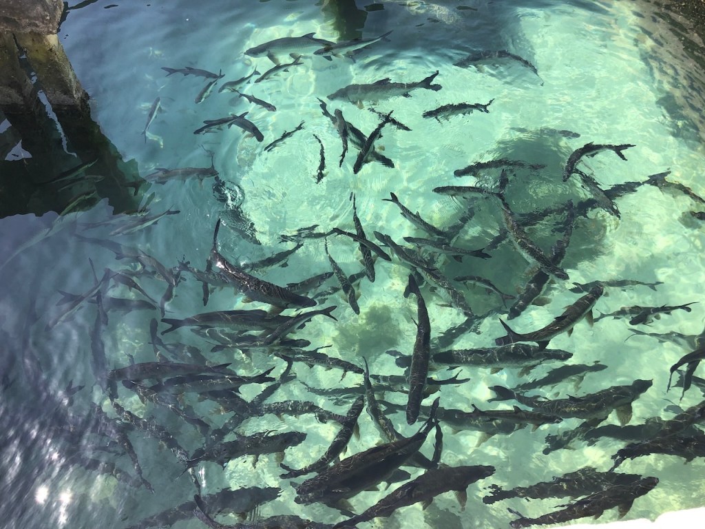 the next day we threw some fish bones in the water and within minutes 5 sharks including their sucker fish appeared again.