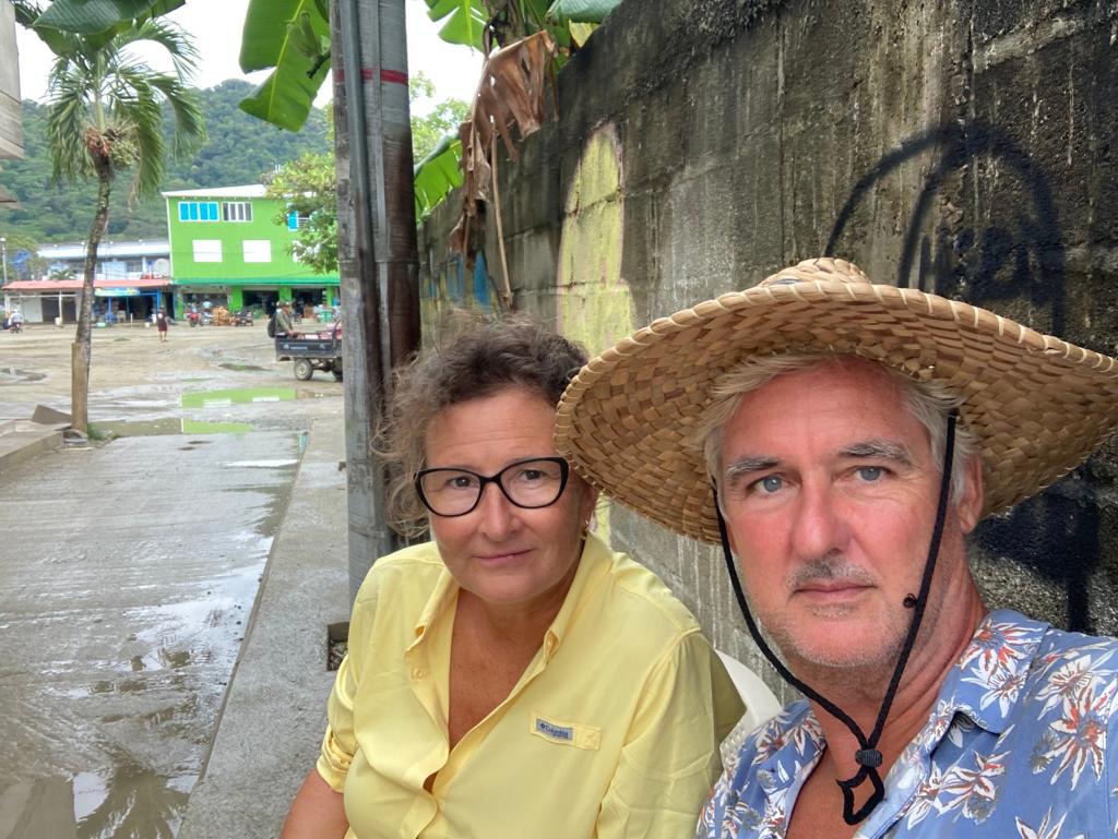 Unfortunately I found a small spot on one of my teeth. I wasn’t sure if that might have been caries so I rather wanted to have a check on it. Again we went off asking where to find a dentist or if there would be one at all. Our guess was that I could be lucky if there was one in Capurganá, the slightly bigger village right over the hill. We found out that there was indeed a dentist in Capurganá but she’d be there only at weekends and only once or twice a month. It was again Lina who helped me to figure out when the dentist would be in Capuganá. I was lucky, the dentist would be working the next weekend. Yess! Lina was as well so kind to get in contact with the dentist and got me an appointment at 9 am Saturday morning. As it was a pretty long (1,5 h) and intense walk over the mountain to reach Capuganá, we preferred to take a lancha. Thanks to Lina we even got picked up directly from Altimate. She organised a reliable (her words) driver to take us to Capurganá. We felt special as all other people were picked up at a jetty in the village. The ride took only 15 minutes and we were happy to arrive dry. Lina had told me to ask for a little shop as the dentist would be on the same street. We only had to ask twice to find the little shop. The second person I asked was a young policeman who was drinking a beer. It was about 9am – just hilarious! Drinking beer at that time was already amazing but while on duty was even better!!! Imagine that happening in Germany 🤣. We didn’t care, he was very kind as he accompanied us almost the whole way to the shop. Ok, that were only 2 min but still very friendly! As proper Germans we were of course perfectly in time but we couldn’t quite figure out were the dentist office was. Even though the ladies of the little shop showed us.