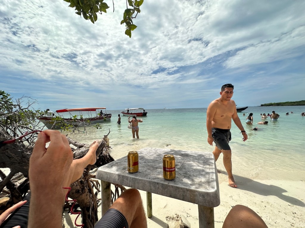 Off we were again. The second time we left Cartagena. Who would have thought that a year ago? Certainly not us! Anyhow, we enjoyed Cartagena again very much but after 5 weeks of bustling city life we were ready to get back to more remote places. Our first stop was lake-like Cholon about 20 nm south-south-west of Cartagena. We had been here before and were looking forward to be in a pretty and quiet anchorage. Our goal was to get Altimate´s bottom free from the fast growing barnacles which we brought from Cartagena. It was unbelievable how fast the growth was at the anchorage in the big city. Only a few days and the barnacles were back on Altimate´s belly after we had cleaned it in the Rosario Islands. Same procedure as before, El Capitano took care of Altimate’s outside beauty and I looked after her inside. Laid back as we felt we took our time to finish our duties and spent a whole week at that anchorage. Only one time we went to a little beach where all the party boats took their tourists before heading back to Cartagena. We were hoping to get a simple bbq meal at the beach for a change. Clever as we were we thought we take a little more money as it would probably be a bit more expensive out there than normal. Hahaha, we were right, but not prepared for 5 times the cost. The minute we arrived, the sellers were on to us. Food, beverages, massages, bracelets and more… We would have been happy with having some food but didn’t need any other touristic accessories, (even though -if I think about it now- a massage probably would have been nice!). Well even if, we couldn’t have paid for it as we didn’t take enough money with us. At least we got rid of the sellers fast when we explained our limited budget. All was really ridiculous expensive. So we ended up watching tourists with each of us having one beer😁. A second one was not possible, hahaha and that on a beach witch was definitely not the most beautiful one we’ve been to.