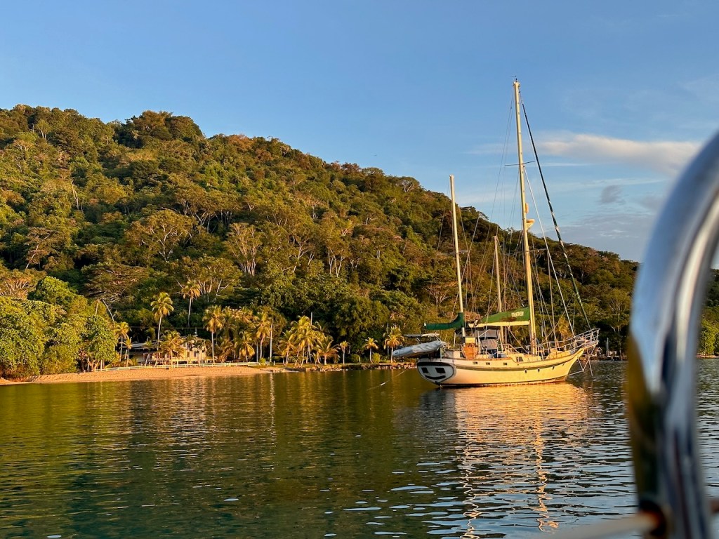 On the 10th of June we dropped our anchor in the picturesque bay of Sapzurro. We had an over night stop at Isla Tintipan and a two night stop at Isla Fuerte before we arrived there. I don’t exactly know what it is but we just fell in love with Sapzurro. It was and is such a beautiful place! Already when you enter the protected bay you get embraced by jungle-covered mountains and are stunned by fabulously azure waters. On top of that the sun illuminates the bay in perfect soft colours and just like that you’re in heaven🙃. Well, at least it felt like it. The many different trees which were growing close to the beach made the bay not only looking very pretty but were also a playground for monkeys and birds and provided many fruits. We could watch the monkeys hop from one tree to the other from the boat. That was sooooo sweet. Ok, I will stop raving now, I think you all know by now we liked it in Sapzurro!
