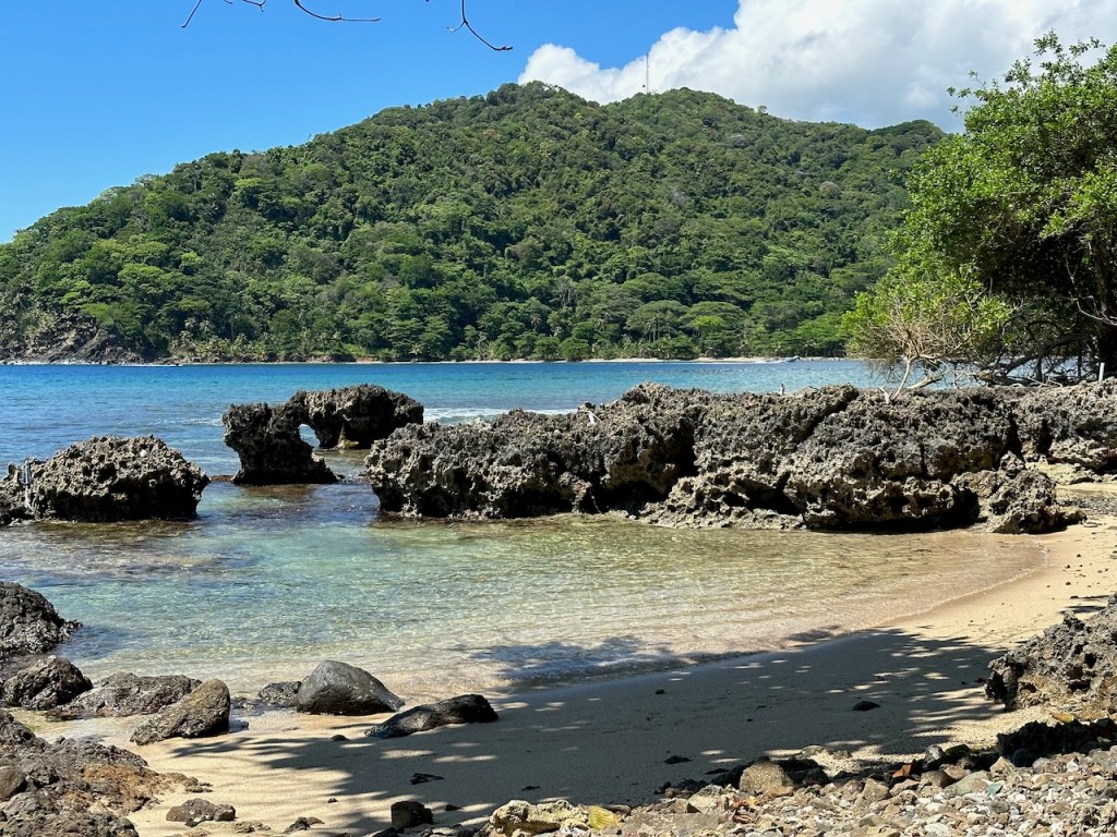 Last time we were in Sapzurro we tried to walk to La Miel but as it was already late afternoon we weren’t allowed to visit the village. La Miel belongs to Panamá what was the reason that sometimes a boarder control checks on you. This time we went there in the morning. It was a beautiful bay only maybe 30 min away . A short but intense walk as you have to walk the (it felt never ending) steps up the hill and of course down again. But the effort was worth it as we were rewarded with a great view on top of the hill (this time without boarder control) and a very pretty bay with only a handful of houses. La Miel as well as Sapzurro and Capurganá were only accessible by boat. As In La Miel as well as in Sapzurro the accommodation offers were limited, there were mostly only day tourists if at all. We had only seen a few people that day and discovered another small paradise at a beautiful beach surrounded by jungle.