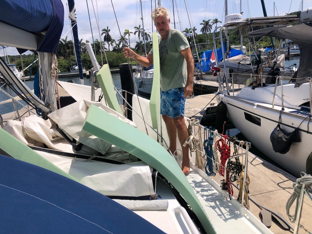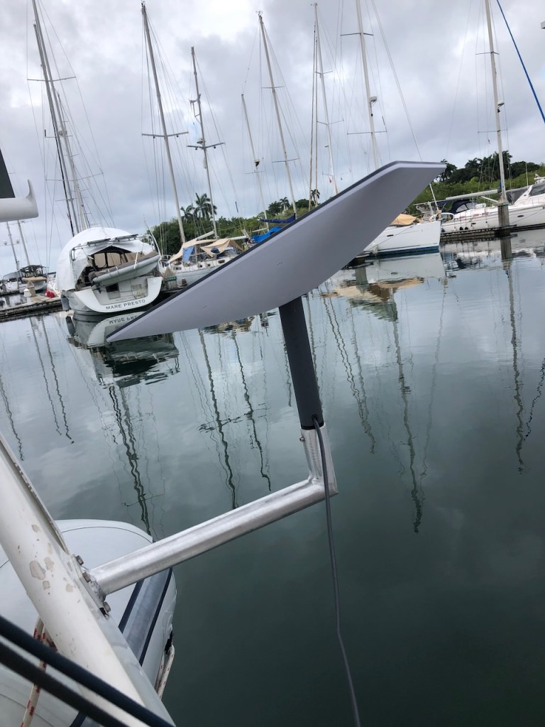 In Linton we met Wolfgang from Steadfast. He happened to be there at the same time as they had found a very interested buyer and were hoping to sell their boat by the end of the week. As well by chance we also caught up with Susan the amazing single handed lady (she is 83!!!), we met before in the San Blas. Anyhow, the original reason to stop in Linton was an aluminium holder which we had ordered for our soon coming Starlink antenna. Yesssssss!!!! For all of you who do not know what that is: Technically speaking Starlink is a satellite internet system. But for sailors and other remote web users, it’s a potential godsend😇. It is super fast anywhere!!! And especially for me for uploading pics for the blog it will be just heaven!!!