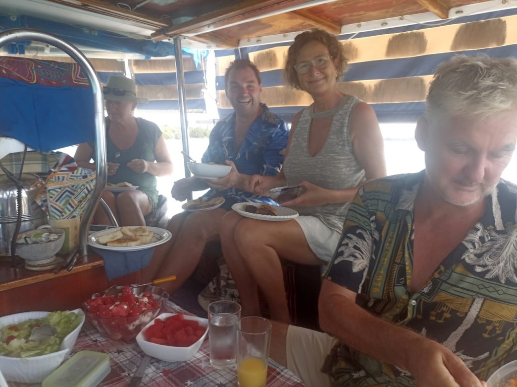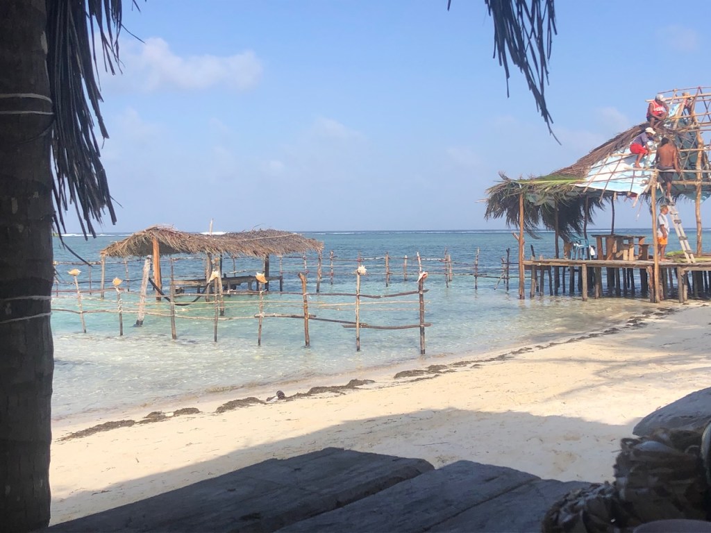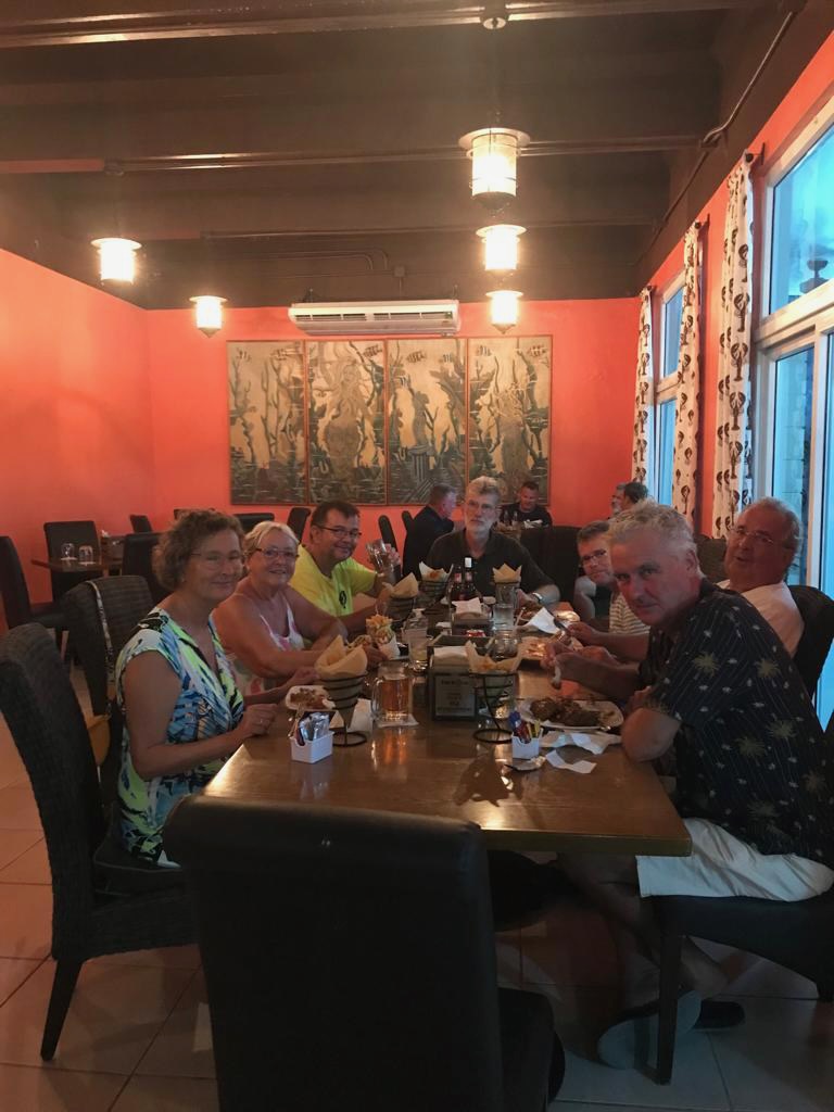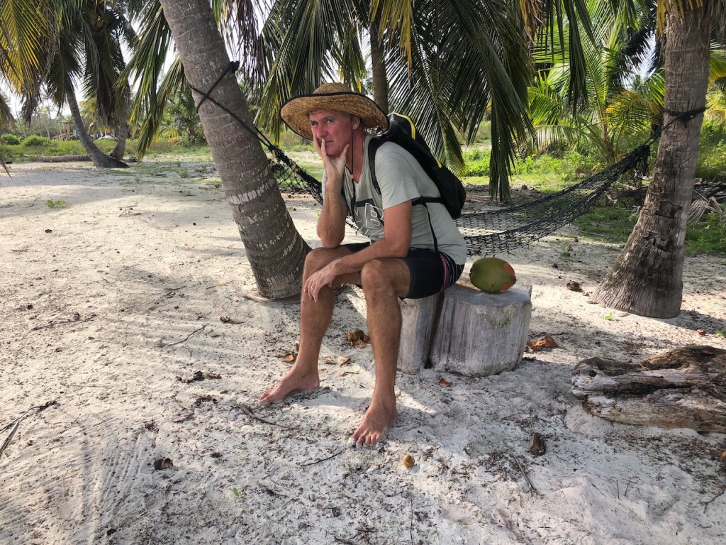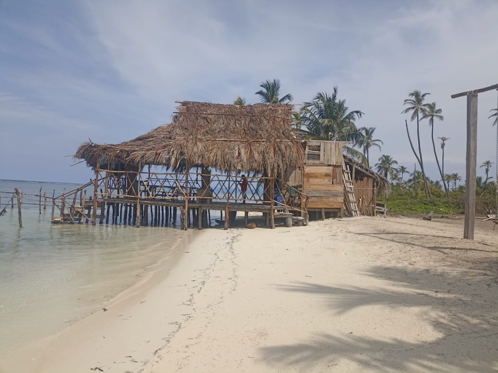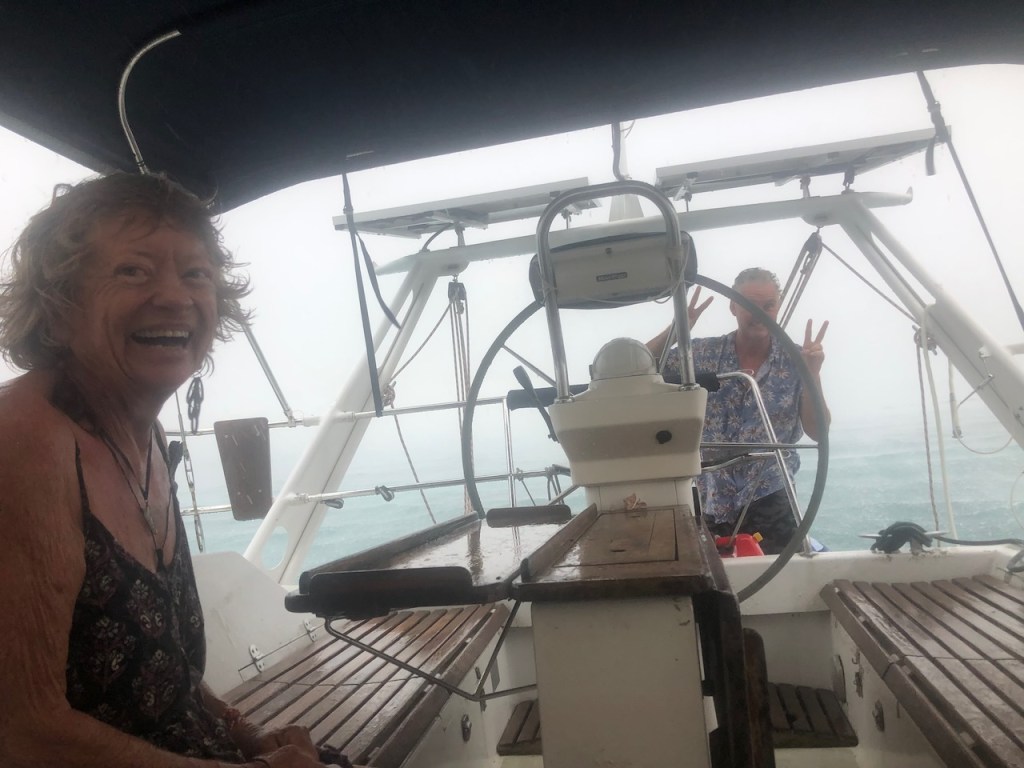 a nice catch the day we arrived at the pooltypical weather in rainy season, the main shore was not visible and often overcastedwe met Uschi and Albert from USI, Albert took the pic and Anne and Reinhardcould have been the day of our first encounter with a Culo de polloand all of us enjoying Ibins food; Anna, Reinhard, Jürgen von Valentin and Albert and UschiHeike and Jürgen from Valentine invited us for a pizza at Ibins to celebrate their recent wedding, the weather was not so pleasantMyrta was showing us how to fast open a coconut, she did it within a minute; I tried to do it the same way and it took me 15 min, I need to improve my opening skillsthat was on Runner , Debbies boat, we had a potluck she invited a few boats to celebrate the 4th of July Ibins “over the water terrace” getting a roofthe water bar the “old” restaurant area, where we had our xmas dinner with the kidsone of the “roofer” , the boys were always in a good mood and providing enough material they could build a roof within a couple of hoursIbins brother in law and Myrtas husband José , a nice guy also always in a fantastic moodDebbie invited us for a dinner at Ibins, thank you dear!!Ibins bread as a pre starterconch ceviche we were eating and the boys were workinga conch I found but this one was too small to eatEl Capitano in thoughts?the new steps to reach the “water bar”my favourite drink pipa, coconut waterwe had invited Debbie for a German breakfast, fortunately we were just done when the squall reached us, not a “Culo de pollo” but a nasty wet squallDebbies mini aquarium on her boat, it keeps her busy finding small fish and then food for them, I had joined her when she found that little lionfishdeb used to be a hairdresser in NY, she offered me to cut her hair who can resist getting a professional haircut?some of Myrtas molasEmily from Restless which we had met first time on the 4th of July potluck, her parents and little sister came to visit themour last day in the pool we said goodbye to Ibin and Debbie and also to Myrta and her sister, am I that tall??? the sudden changing weather sometimes presented nice rainbowsthe pool, on the right “Runner”the day we left Ibin got the roof readyyyyyyybye bye Banedup