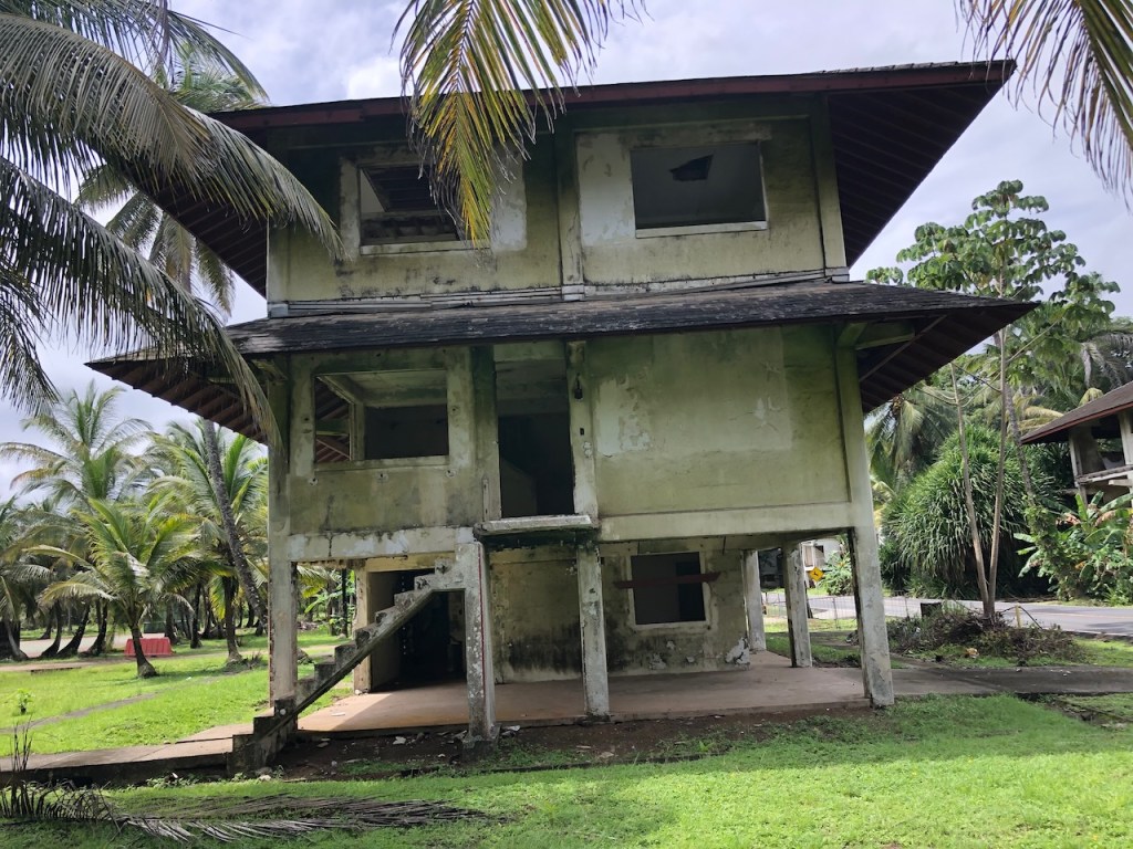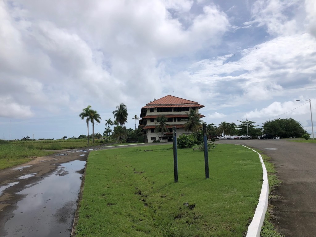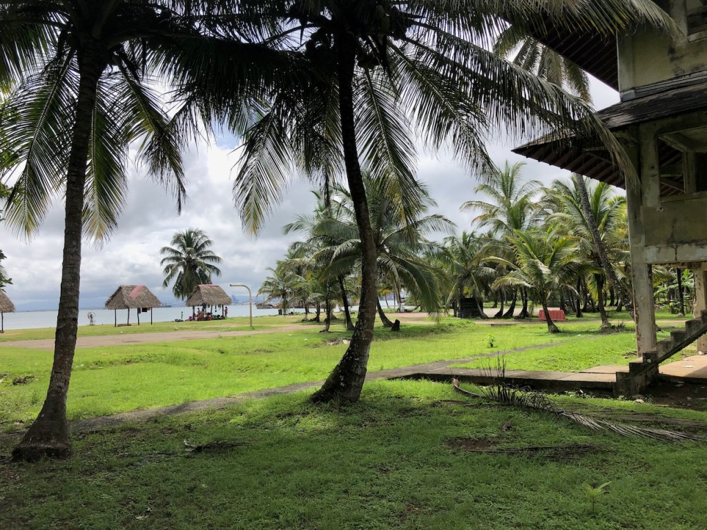 the bar and restaurantwe also met the crew of Usi, Olaf who we met on our trip back to San Blas from Cartagena and the crew of Segelbar; we had met them once in Dominica, a fun coincident coming togetherAlbert and El Capitanothe entrance of the marinaa tug boat which is used as a gas stationMatthieu picking up his line handlers, we were happy to help him with using our boat name; he was anchored outside the marina I liked that figure head, would suit Altimate toothe marina used to be part of the Ft. Sherman U.S. military reserve, it is located next to a national park with virgin rainforesta stroll through the military area only a few soldiers were still stationed therethe buses seemed very smallmany wracks at Colon harbourabandoned military houses right at the beach the road back to the marinathe water mirror