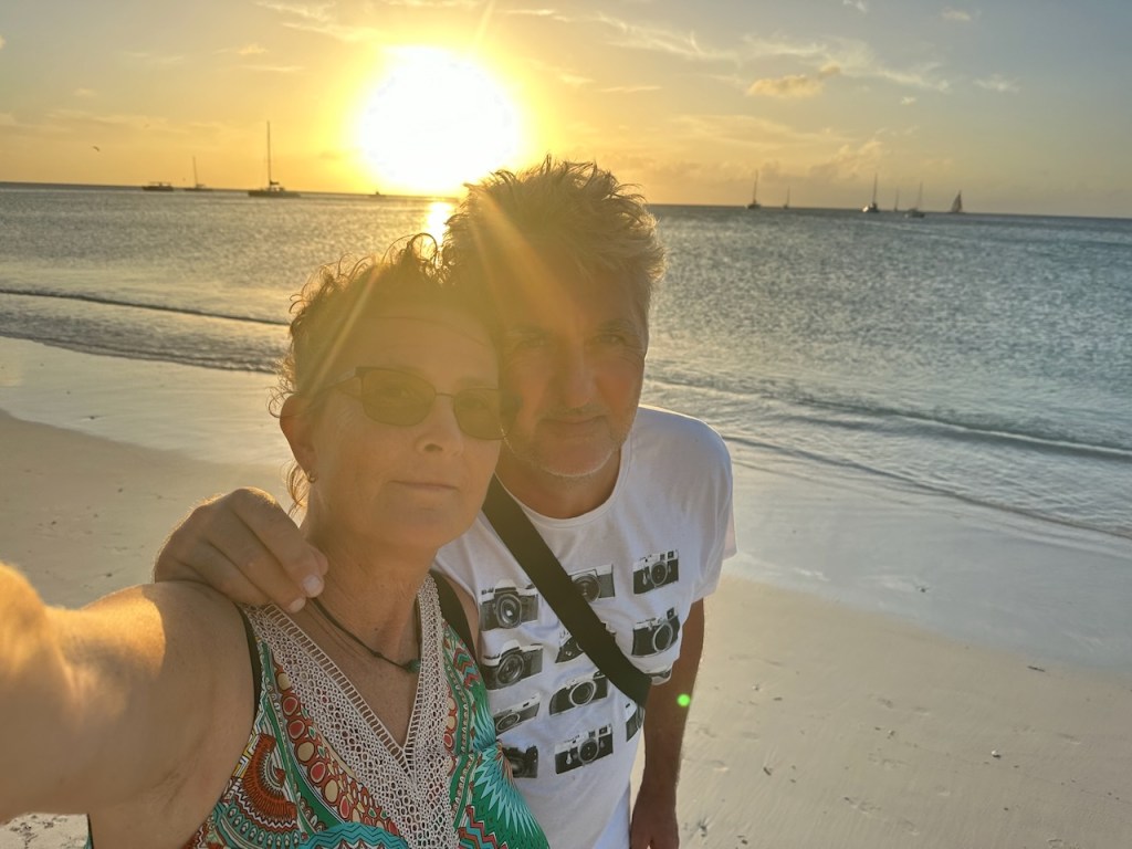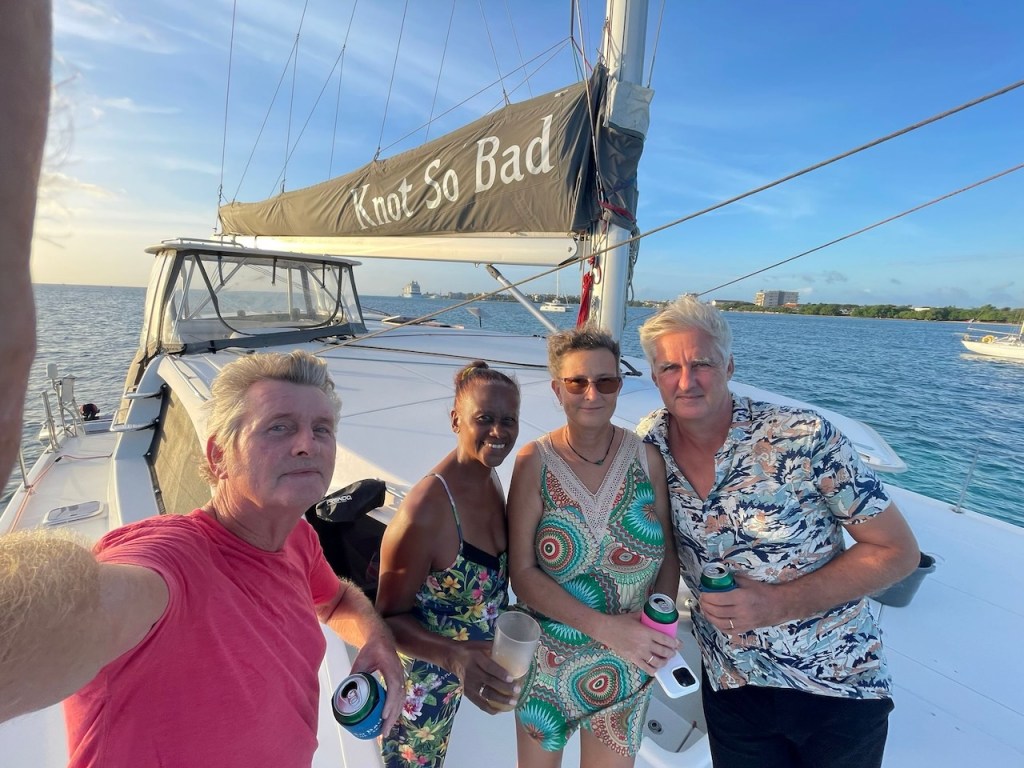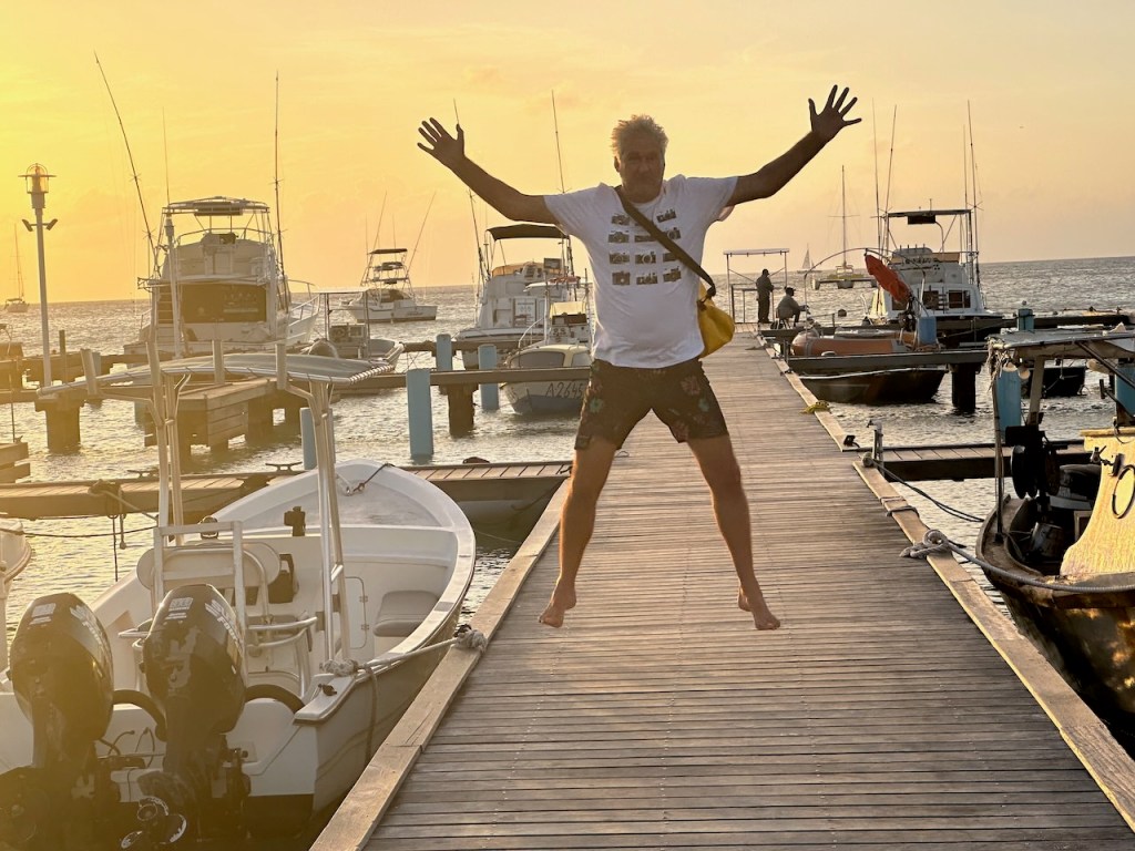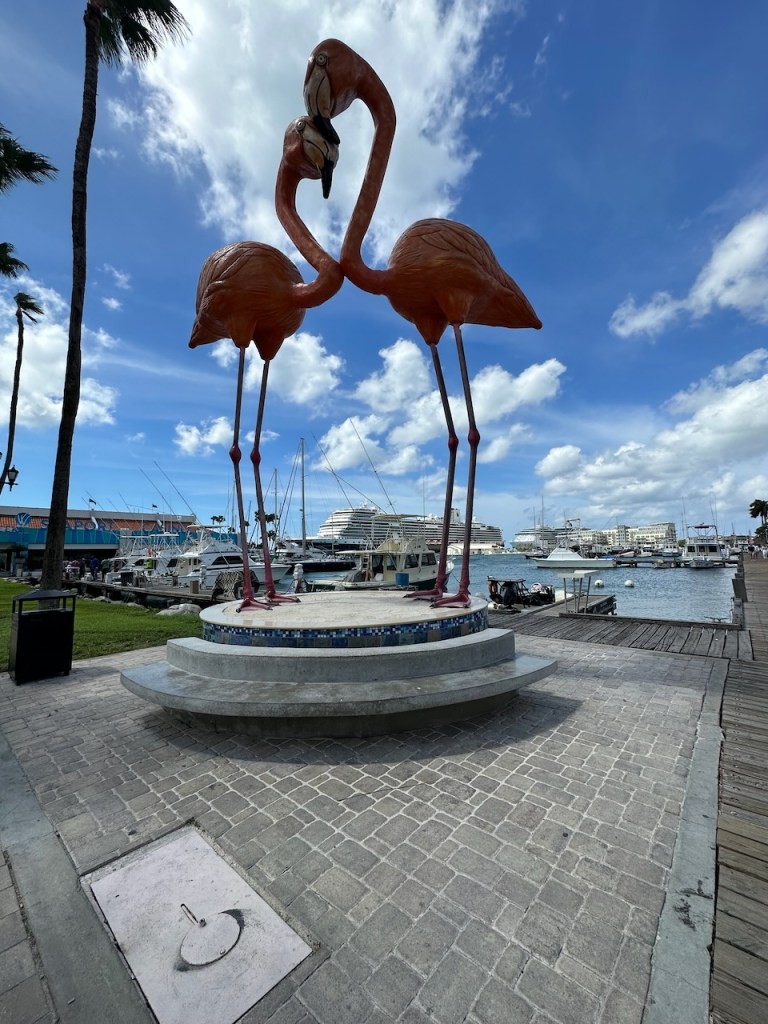 we found a real dutch kibbling and other goody chippy – nice!!!early November and the x-mas sweets were already on the stage- what a huge marzipan big!!!one of the smaller cruising shipsthe shops getting ready for all the touriststhe plane arriving and the ship leaving and all that that just behind uswe were trying to cross the highway to get to a bus stop after we had brought back the car at the airportwe waited for an hour and then someone told us the bus driver were on strike that day- so we had to walk backwe moved to another anchorage for a few days, just in front of the busy and touristic Palm Beachmore Palm beach and the south view of Palm Beachhotels beach barssunset El Capitano with woman in redselfie timeit was great the we could dock our dinghy herejumping Jackhotel skylinea charter sunset boat passing by, people were watching usa painter in Oranjestad pimping up some wallslove birds🙈ready, steady buyback at our previous anchorage, we were invited on the cat “Knot so bad”, Sandra John, Sandra and El Capitanoso much space