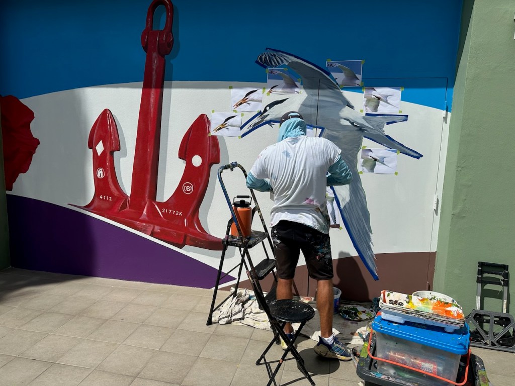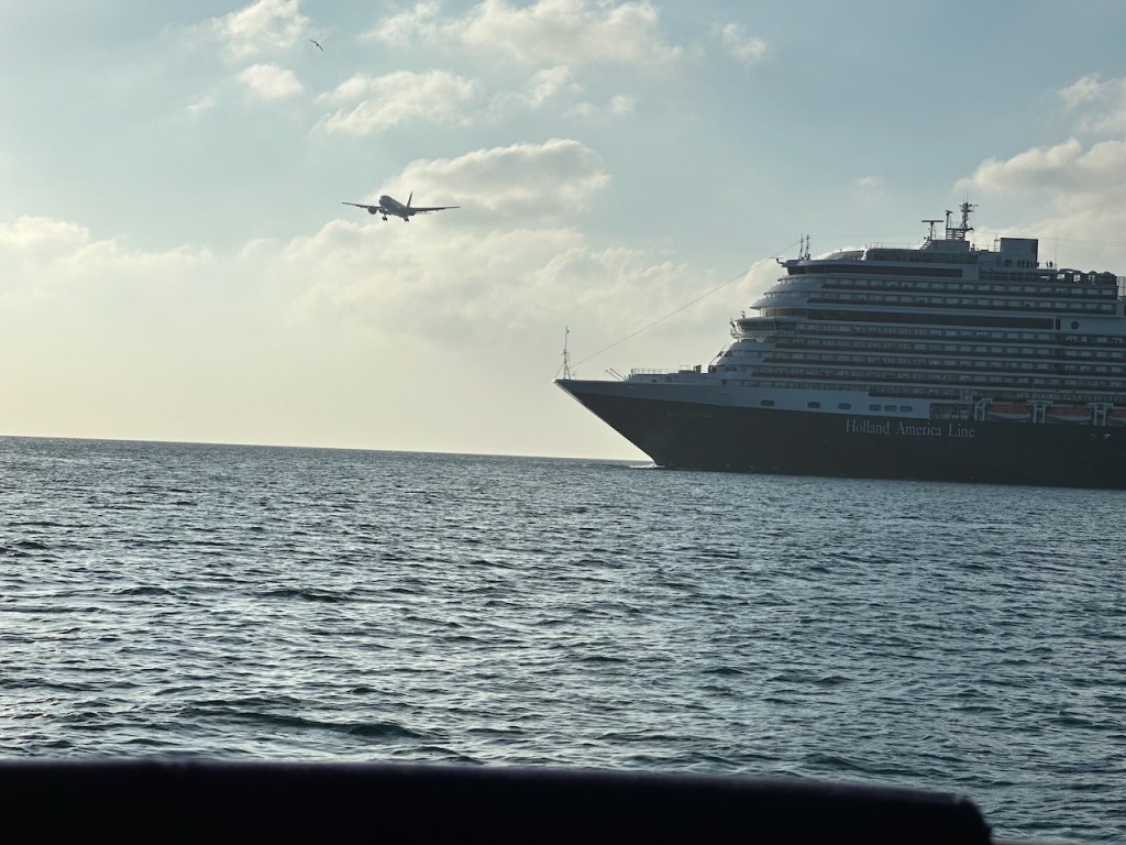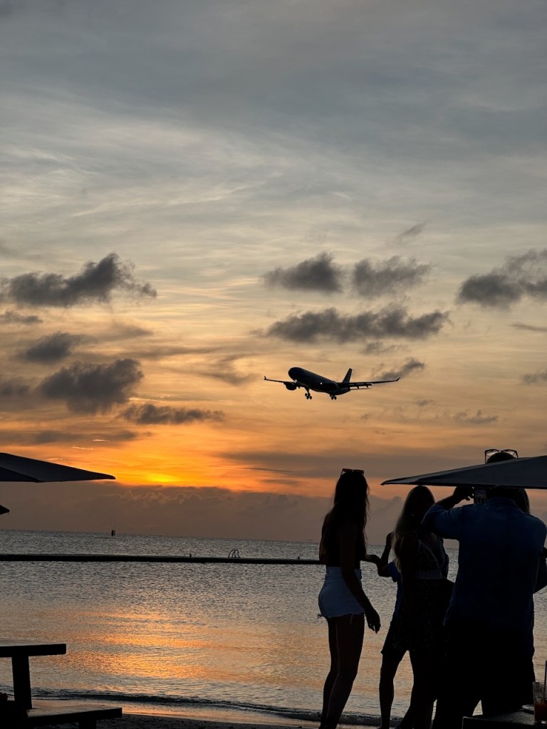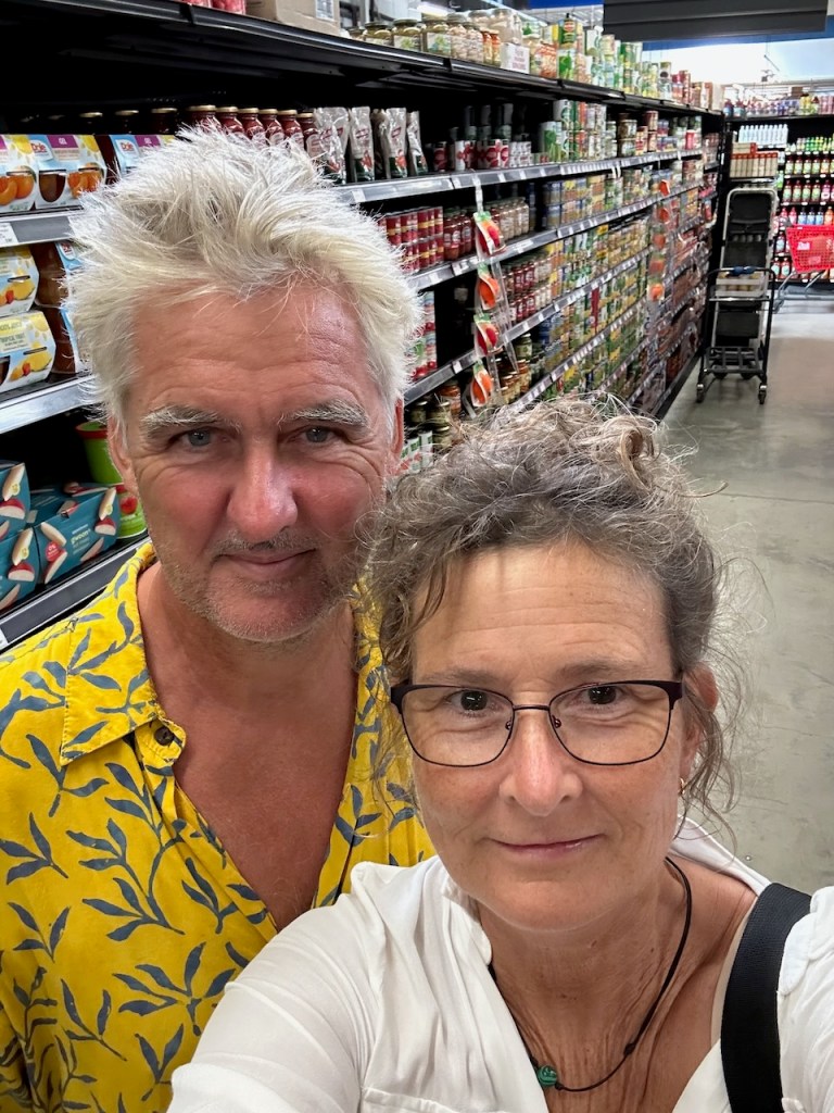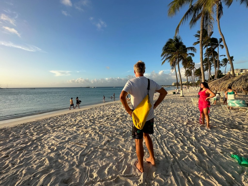 we found a real dutch kibbling and other goody chippy – nice!!!early November and the x-mas sweets were already on the stage- what a huge marzipan big!!!one of the smaller cruising shipsthe shops getting ready for all the touriststhe plane arriving and the ship leaving and all that that just behind uswe were trying to cross the highway to get to a bus stop after we had brought back the car at the airportwe waited for an hour and then someone told us the bus driver were on strike that day- so we had to walk backwe moved to another anchorage for a few days, just in front of the busy and touristic Palm Beachmore Palm beach and the south view of Palm Beachhotels beach barssunset El Capitano with woman in redselfie timeit was great the we could dock our dinghy herejumping Jackhotel skylinea charter sunset boat passing by, people were watching usa painter in Oranjestad pimping up some wallslove birds🙈ready, steady buyback at our previous anchorage, we were invited on the cat “Knot so bad”, Sandra John, Sandra and El Capitanoso much space