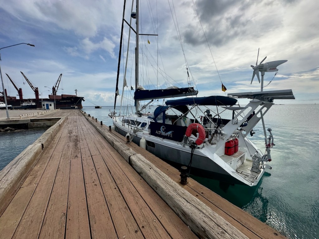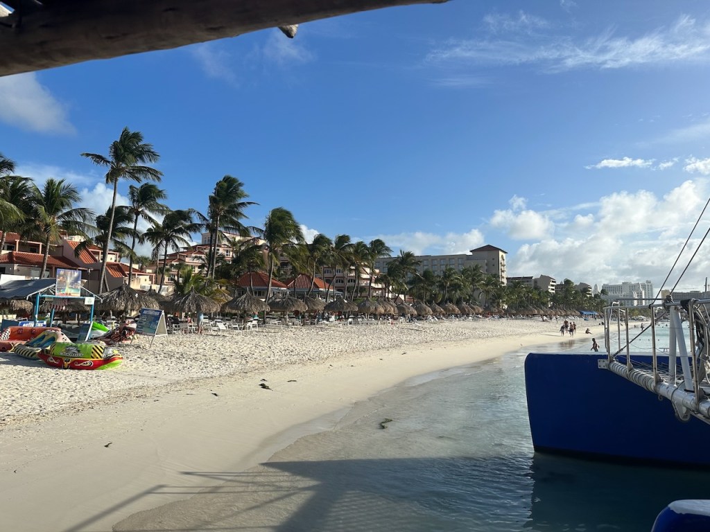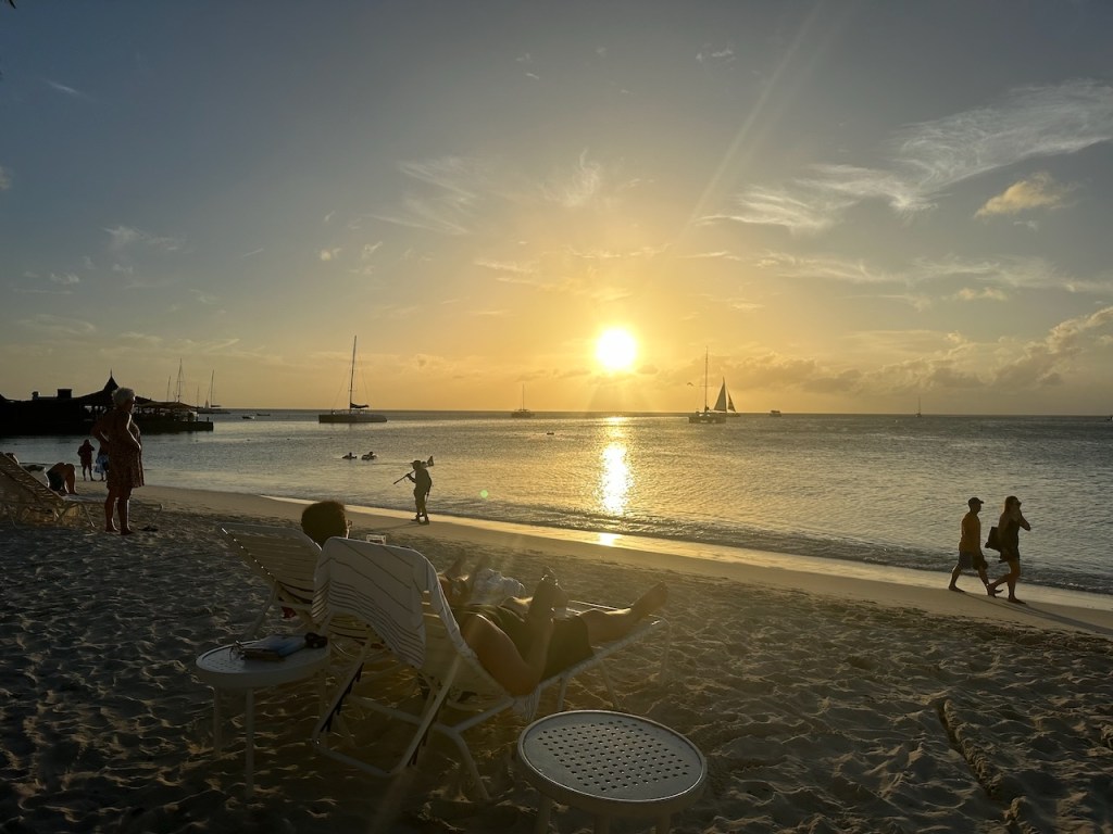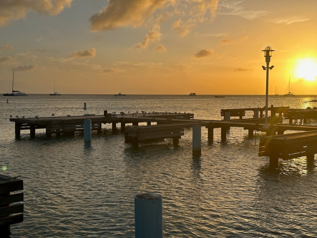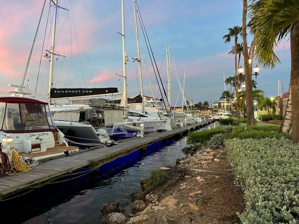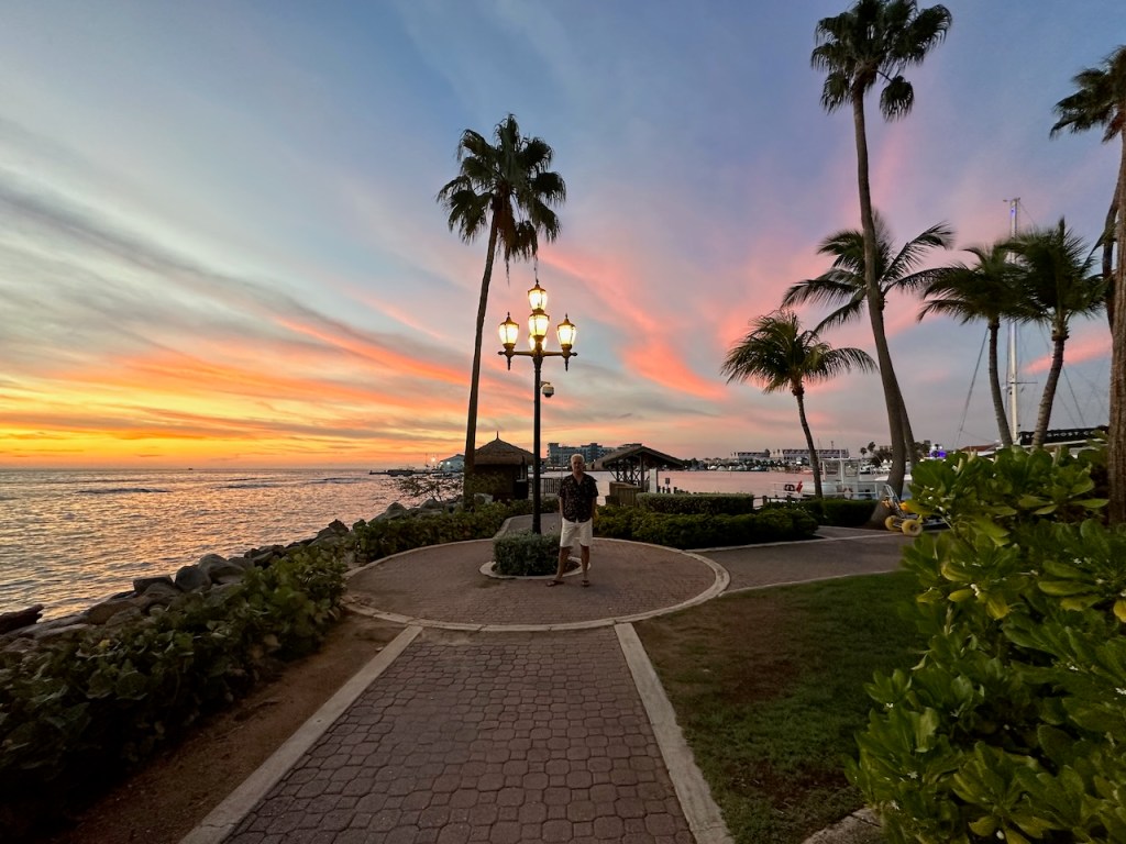 arriving at Aruba and heading to the customs dockwe made it to the dock, fortunately there was no wind so the approach was easyin heavy winds it’s a challenge to dock here even though it looks super easy, there were reefs very close by and it was very shallow enjoying a nice cool beer at the anchorage at Surfside beach at the Southend of Oranjestadfirst time we have ever seen our fuel tank that empty; the next morning we went to the gas station to refill and check how much was left as it did look very empty😳; we still had about 20 litres leftfirst steps ashore at the marina where the gas station wasthe marina and Altimate docked at the gas stationback at the anchoragewe went ashore to get some first impressions of Aruba, a walk to Oranjestadit was quite a pretty walk along the beach sidethe anchorage the view direction Renaissance Hotelthe park from the Renaissance hotel; all looked so tidy and prettythey were many bars , restaurants and malls for all the cruise ship tourists engaging them to spend moneyfancy, expensive shopsvery empty when no cruising ships were aroundand another beautiful sun set