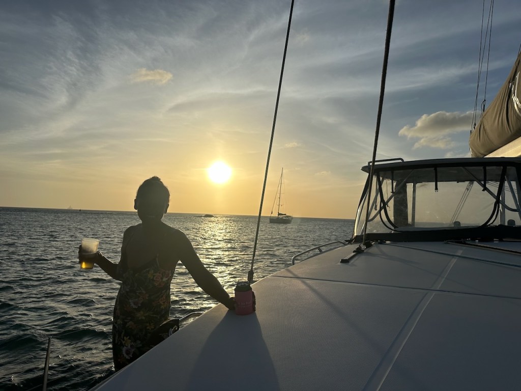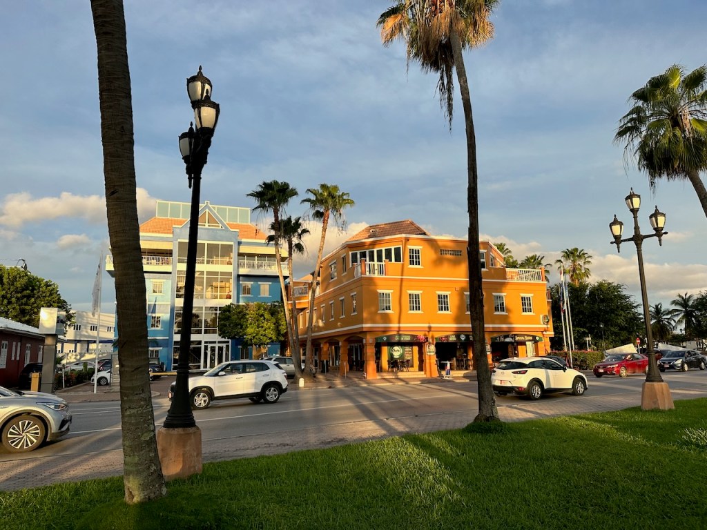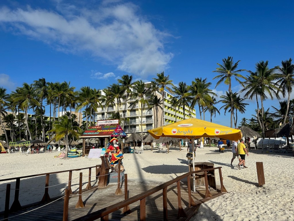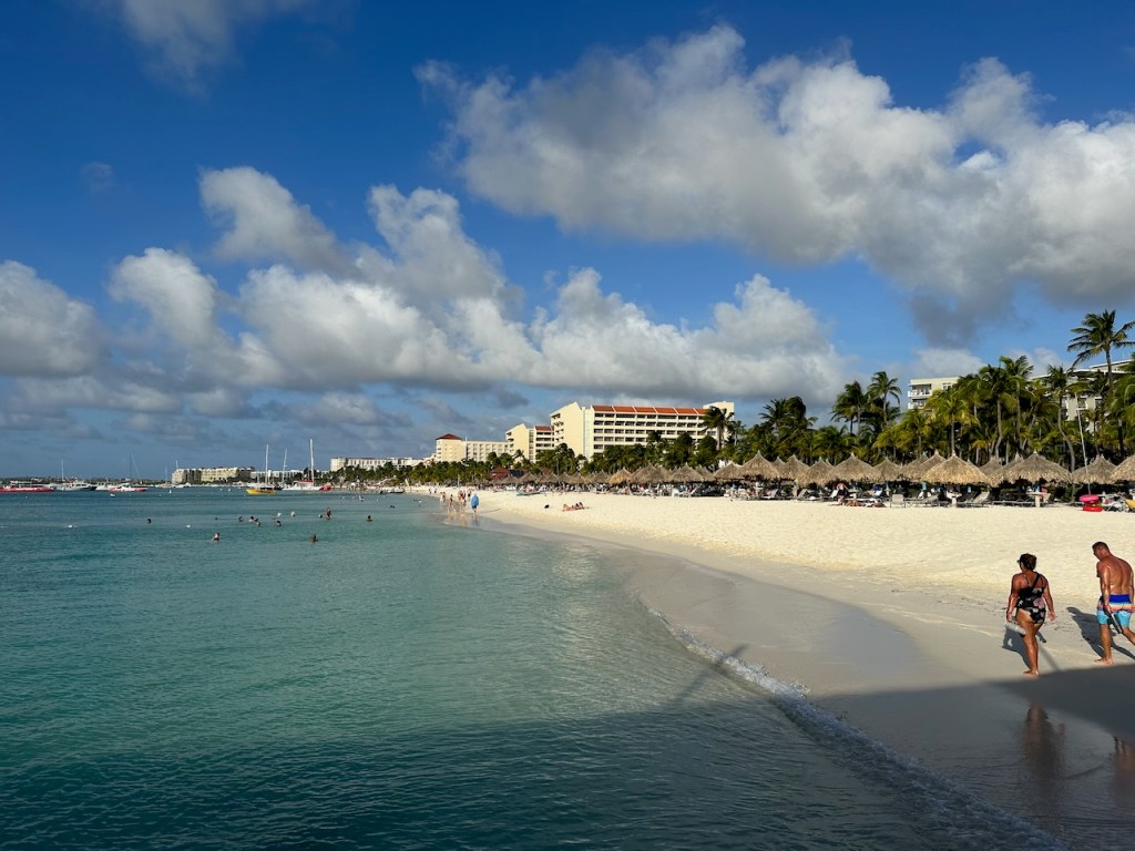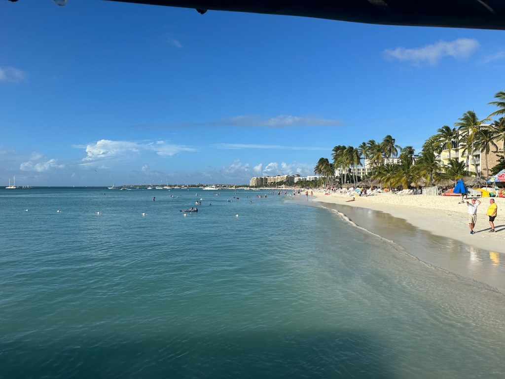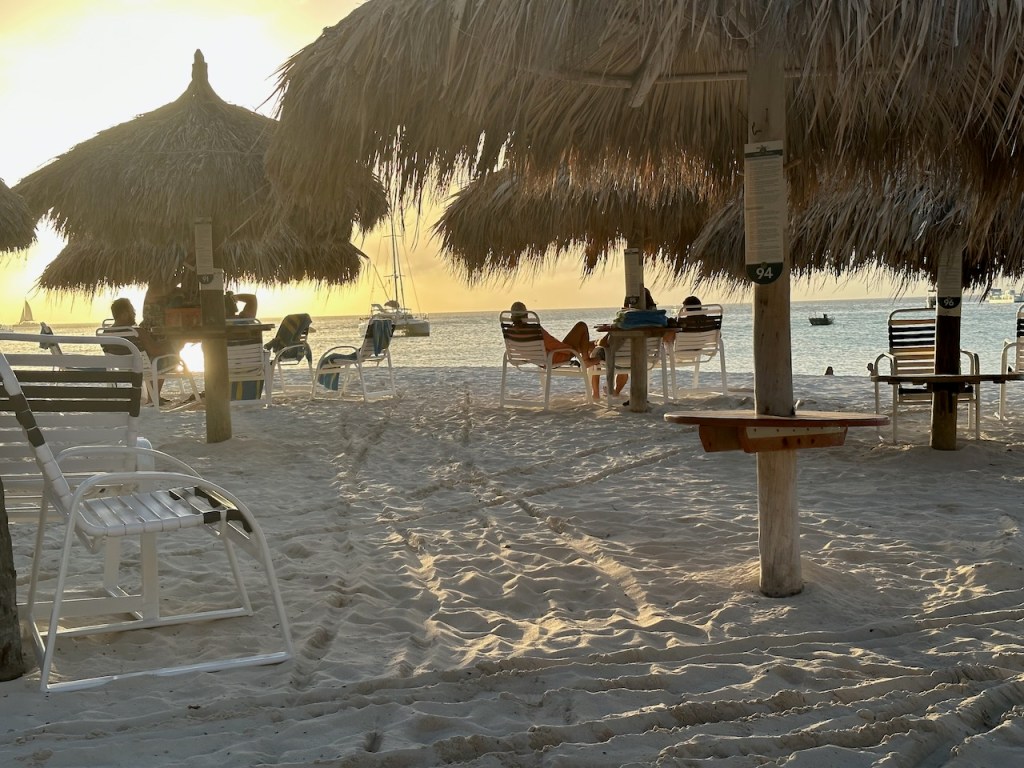 arriving at Aruba and heading to the customs dockwe made it to the dock, fortunately there was no wind so the approach was easyin heavy winds it’s a challenge to dock here even though it looks super easy, there were reefs very close by and it was very shallow enjoying a nice cool beer at the anchorage at Surfside beach at the Southend of Oranjestadfirst time we have ever seen our fuel tank that empty; the next morning we went to the gas station to refill and check how much was left as it did look very empty😳; we still had about 20 litres leftfirst steps ashore at the marina where the gas station wasthe marina and Altimate docked at the gas stationback at the anchoragewe went ashore to get some first impressions of Aruba, a walk to Oranjestadit was quite a pretty walk along the beach sidethe anchorage the view direction Renaissance Hotelthe park from the Renaissance hotel; all looked so tidy and prettythey were many bars , restaurants and malls for all the cruise ship tourists engaging them to spend moneyfancy, expensive shopsvery empty when no cruising ships were aroundand another beautiful sun set