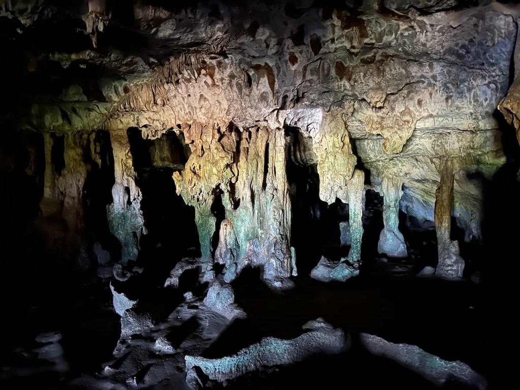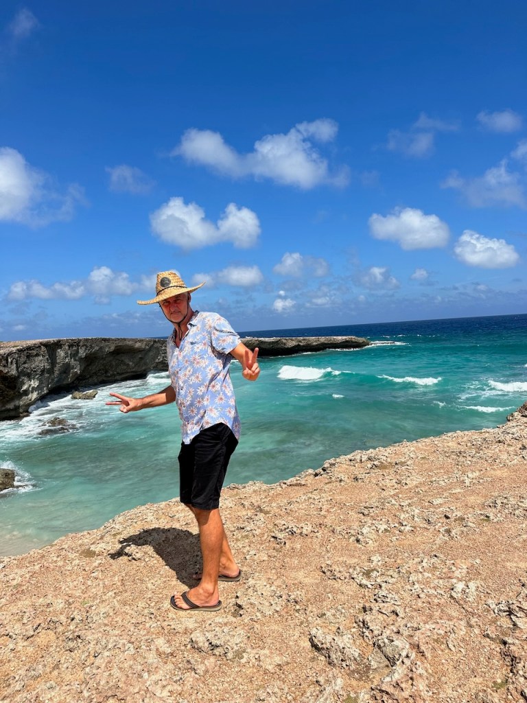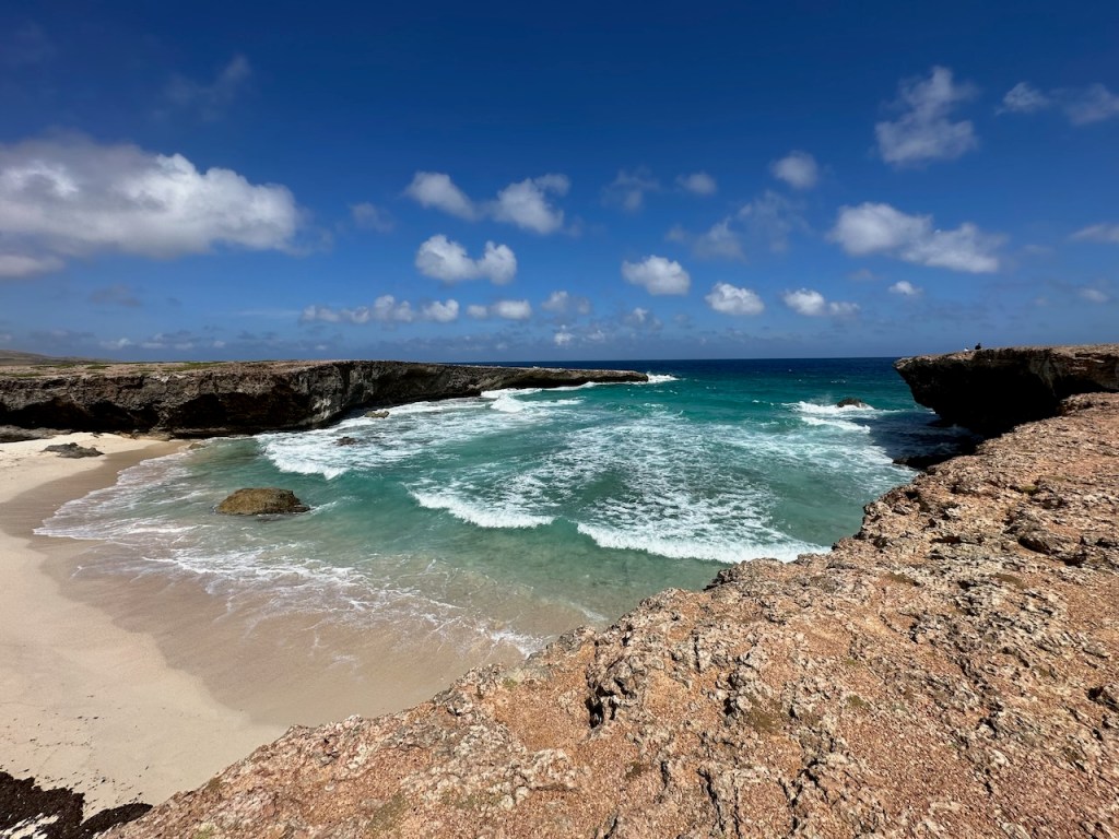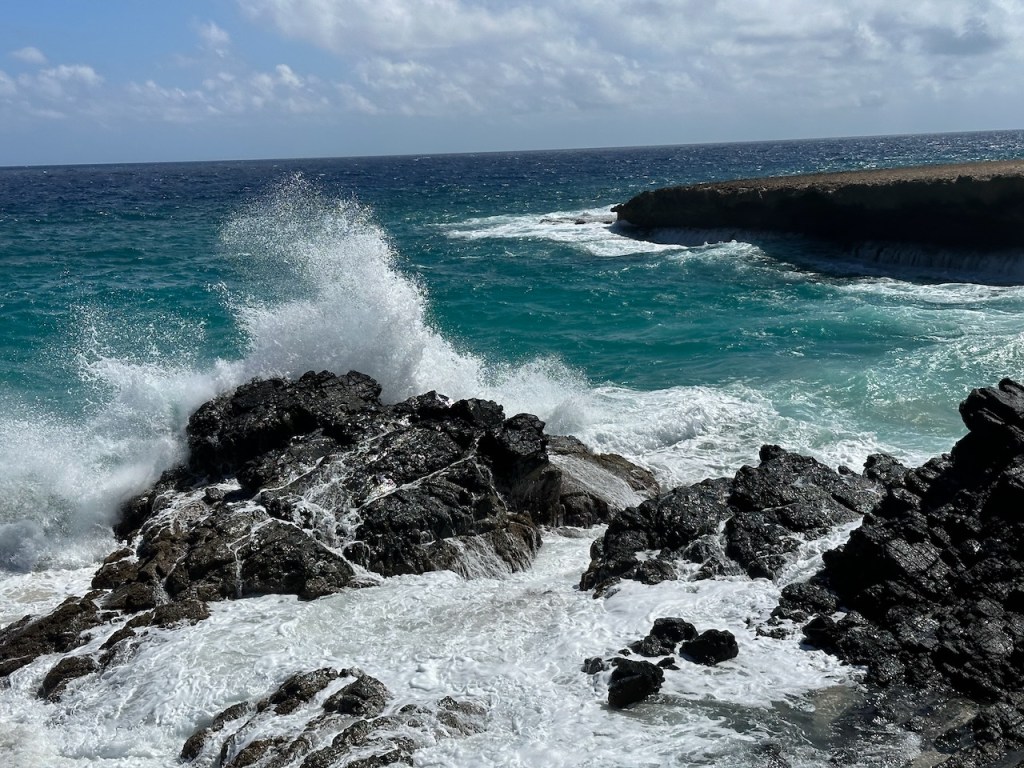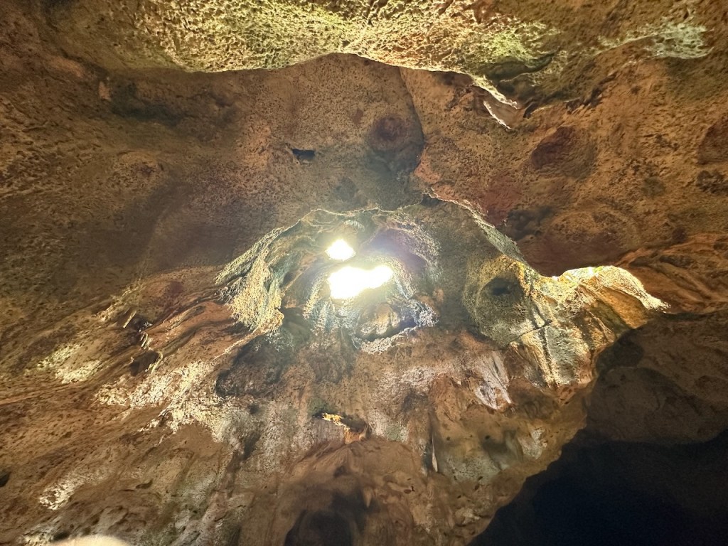 this cute fellow wasn’t afraid of us at all, I could almost touch him before he very bored jumped into the water, oh that was next to where we left our dinghy to head to the Parccacti at the Arikok Parc, a very dry areaEl Capitano and the prickly flora, it did look green when we were there thanks to more rain than usual a steep road to reach the shore an beaches, it would have been better to have a 4×4 wheel drive, 🤷♀️the rocky shoreour air-conditioned transportationvery cool El CapitanoFontein Caveit was very dark, hard to take any picsthe ruins of “Plantation Fontein” the Arikok guide said:”Fontein is an area of high natural and cultural value for Aruba. Plantation Fontein is named after the natural water source in the area, where the water seeps from the higher limestone plateau. In the 18th century, the West India Company allowed its cattle to graze nearby. A cowman supervised cattle and lived here in a stone house. At the water source, a courtyard or bakoval was laid out with banana trees, coconut trees and other crops. Fontein was first transferred as private property to the widow of Commander I.F.W. Gravenhorst and his family in 1839, after which the property was passed on to several diferent owners. The permanent water source made it possible in the 20th century to farm commercial crops, and today the water spring can be seen flowing into the pond located in the back of this estate. The entire property is now protected and in August 2022 officially became part of the Parke Nacional Arikok.”the water springwe passed many, many goatsQuarikidiri CaveThe cave was a limestone formation with two caverns and natural skylights in the ceiling.the best part for me was the natural sculpture of a woman’s head – crazy!!!this looked to me like a girls head with side pig tailsa stone heart on top of us🙈, a guide said it was a must do picsame here, a must do pic, a natural framed picture…the end of the Parc, with our little car we weren’t able to reach more of the Parc sights