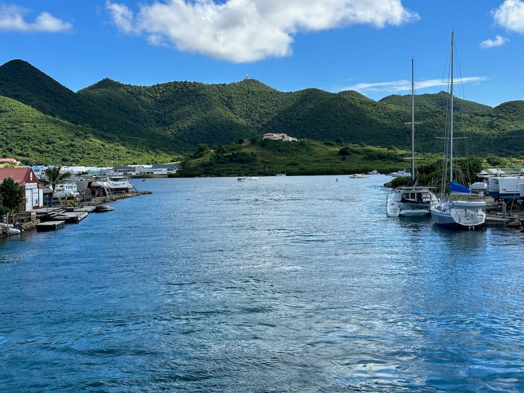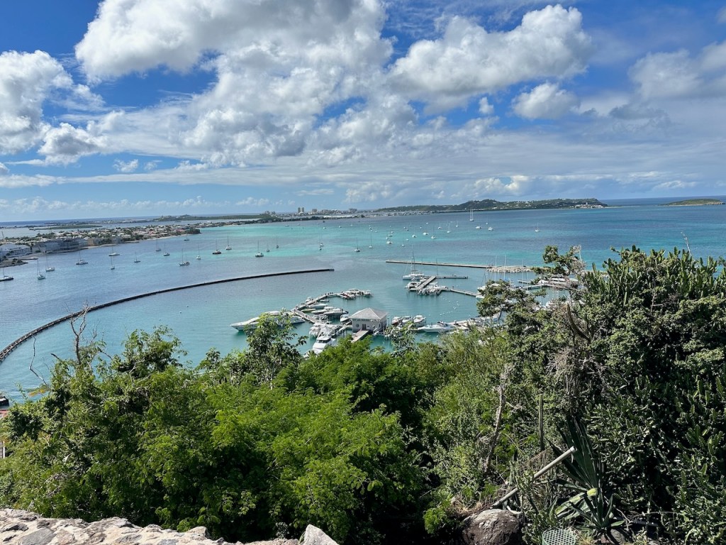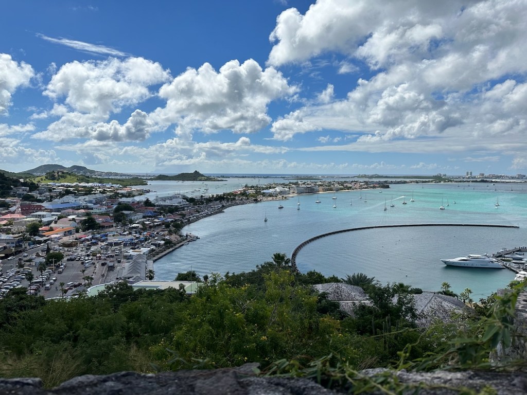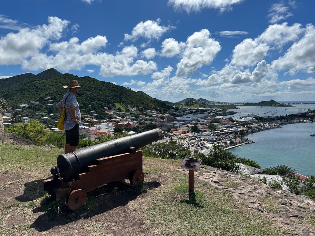 my angel 😇from the fort we had a great view of Marigot, the town, the bay and in the left back Simpson bay lagoonthe marina Fort Louis with its round shapewho can find Altimate? she is in the middle a bit to the right, the small boat with the white spot in frontthe view to the other side, the anchorage in front of Galisbay porta typical fort picGalisbay portan iguana in model moodwe had lunch here after visiting the fort, can’t remember the namethis fellow was begging for our food in that little shack, such a funny! chick!!
