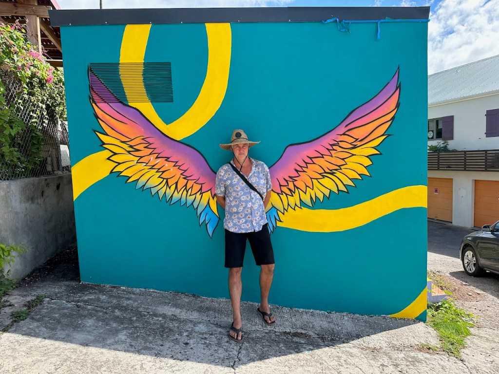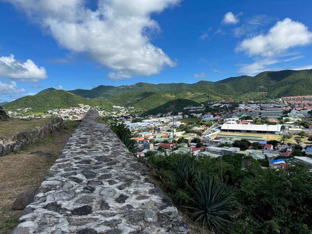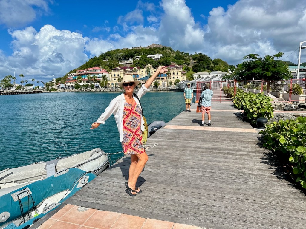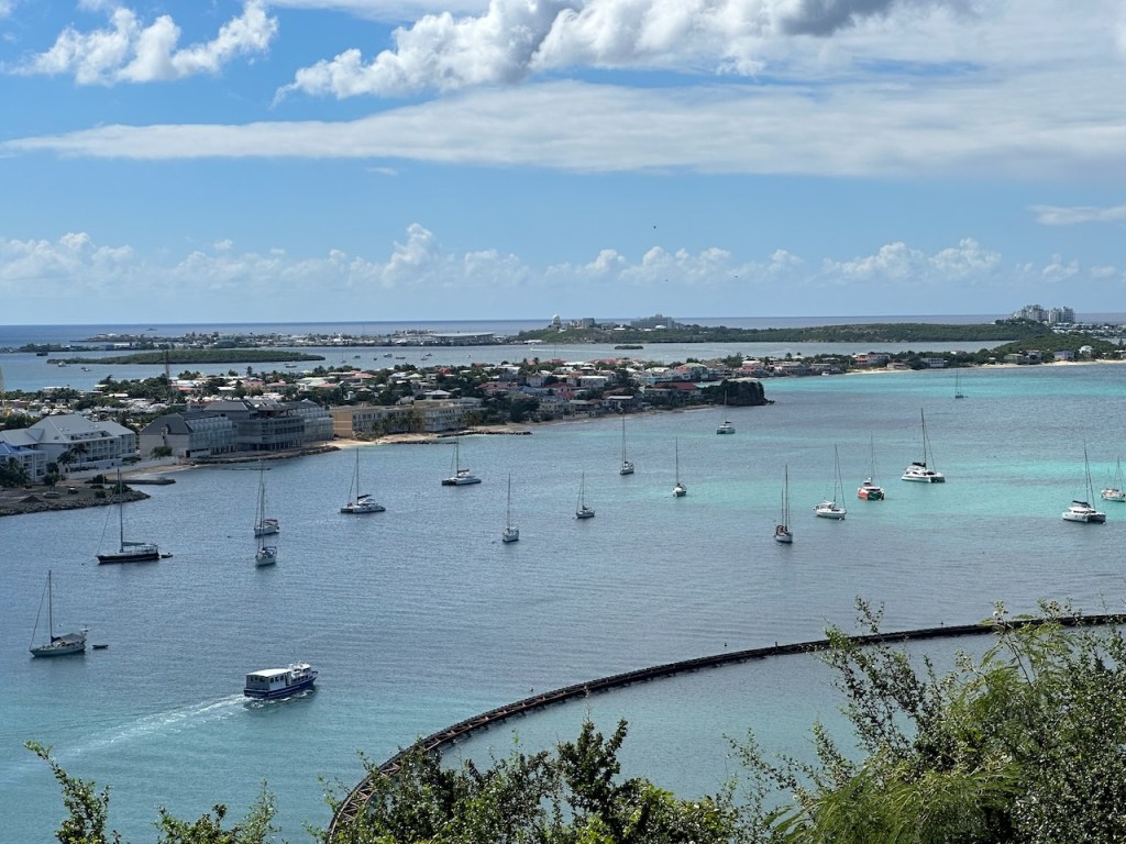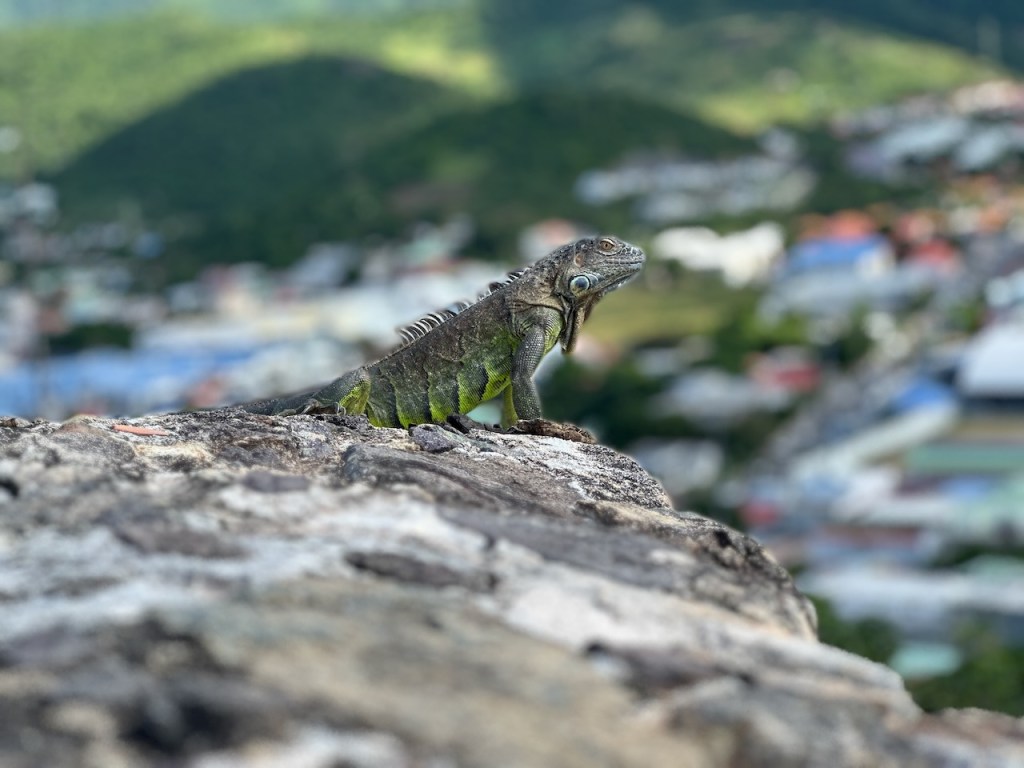 my angel 😇from the fort we had a great view of Marigot, the town, the bay and in the left back Simpson bay lagoonthe marina Fort Louis with its round shapewho can find Altimate? she is in the middle a bit to the right, the small boat with the white spot in frontthe view to the other side, the anchorage in front of Galisbay porta typical fort picGalisbay portan iguana in model moodwe had lunch here after visiting the fort, can’t remember the namethis fellow was begging for our food in that little shack, such a funny! chick!!