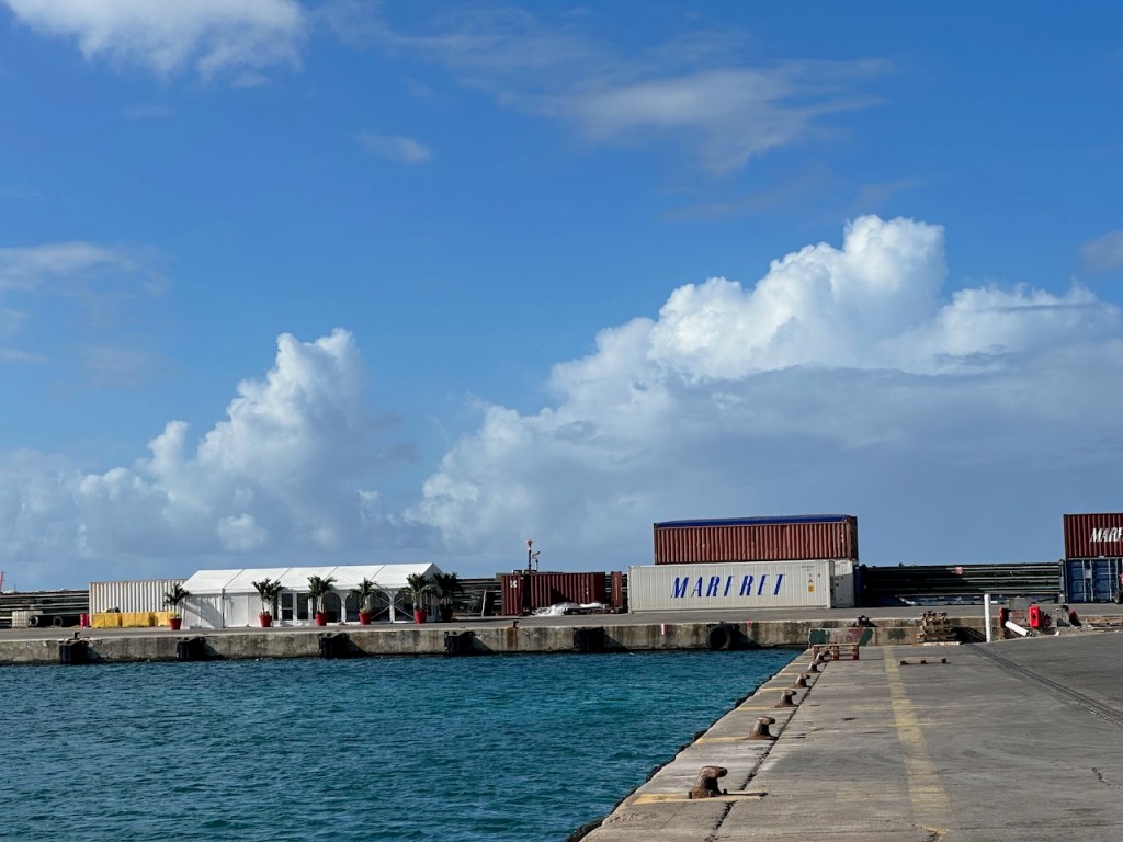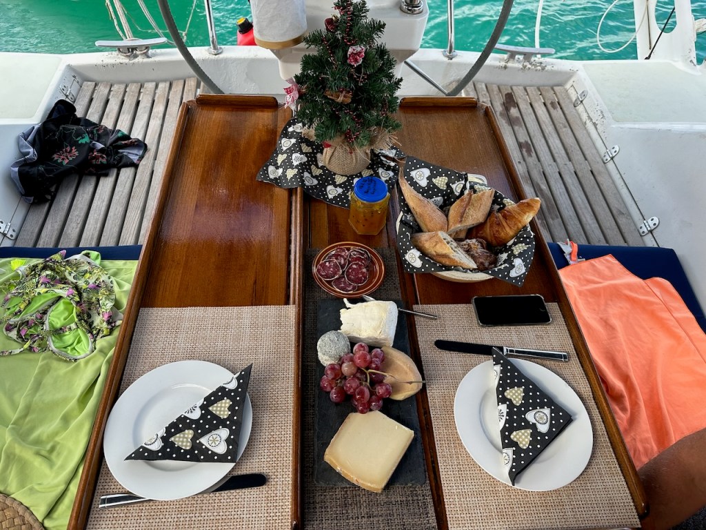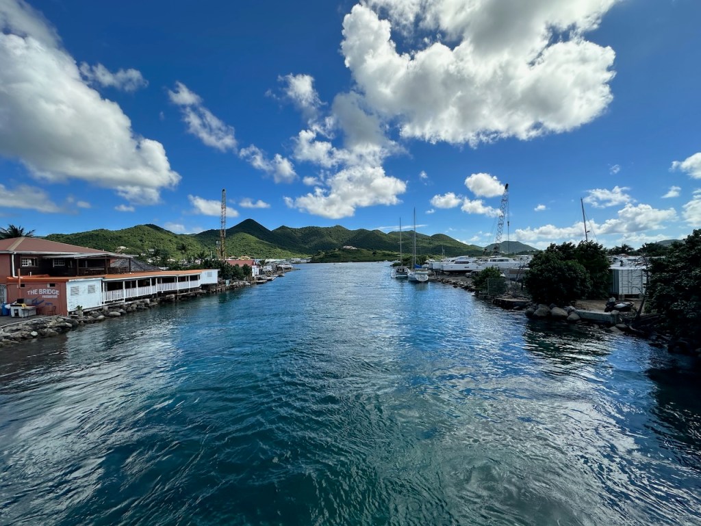 over my hand is Fort Louis, yeah that’s itthey were still working to the last minute to make the Christmas place look nice… we were wondering how it would look like kids liked the Santa clause atmosphere our Christmas tree aboard Altimate – ain’t it cute?!breakfast with croissants , baguette sausisson sec de canard, various cheese, made us cheese , 1. adventa Sunday stroll passing the little bridge to Simpson bay, here the view out to Marigot baythe chandler Isle Marine on the left next to the petrol stationthe other side looking to Simpson baythe pier in Galisbay port where we had to dock with the dinghy to check outnot really made for dinghies to tie upbye bye St Martin