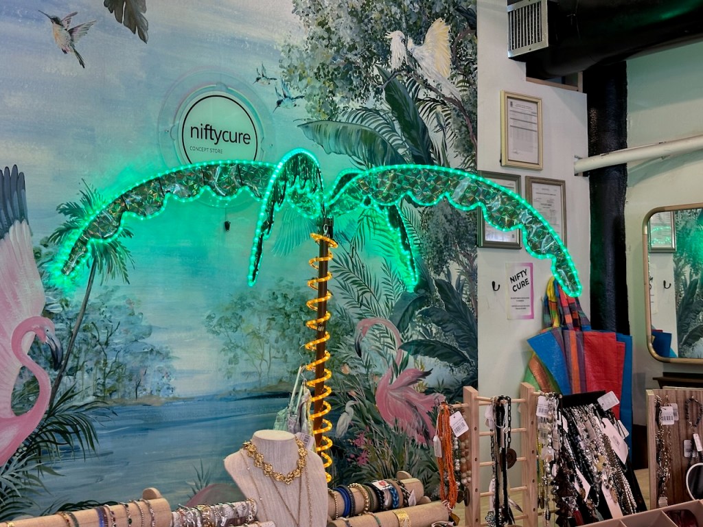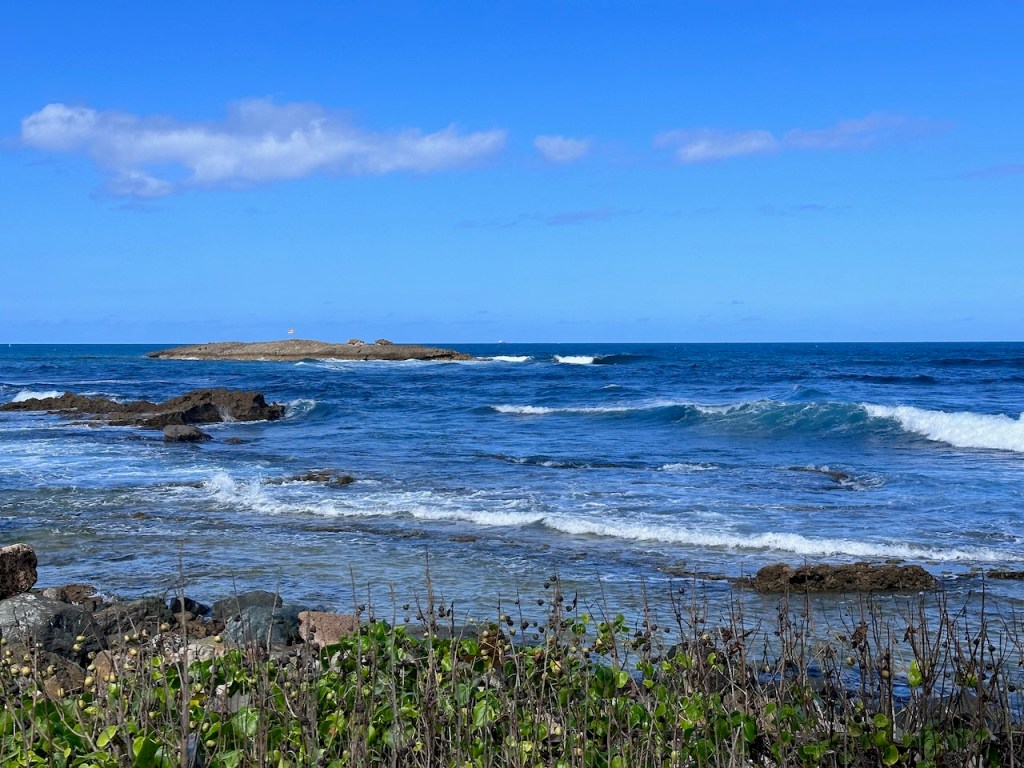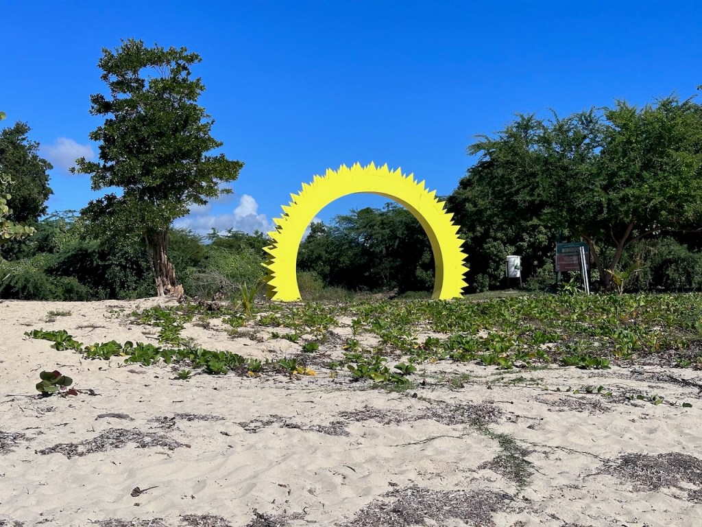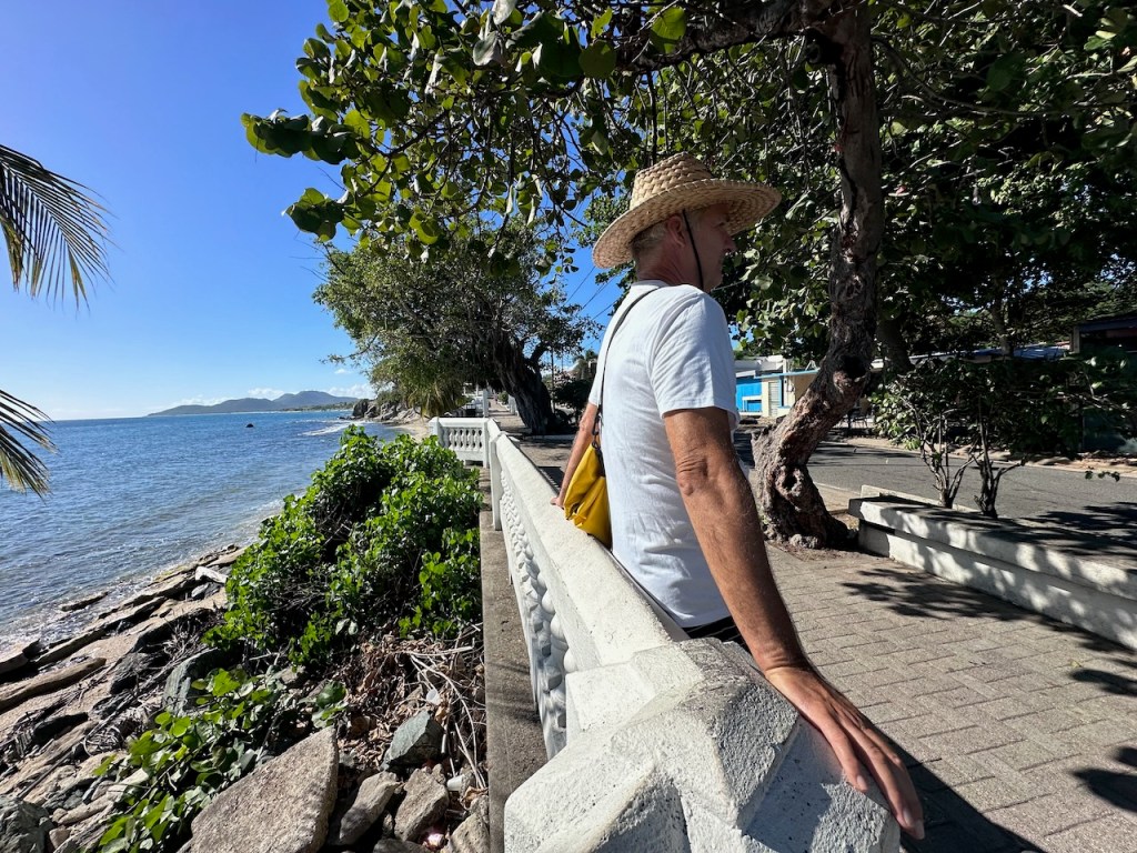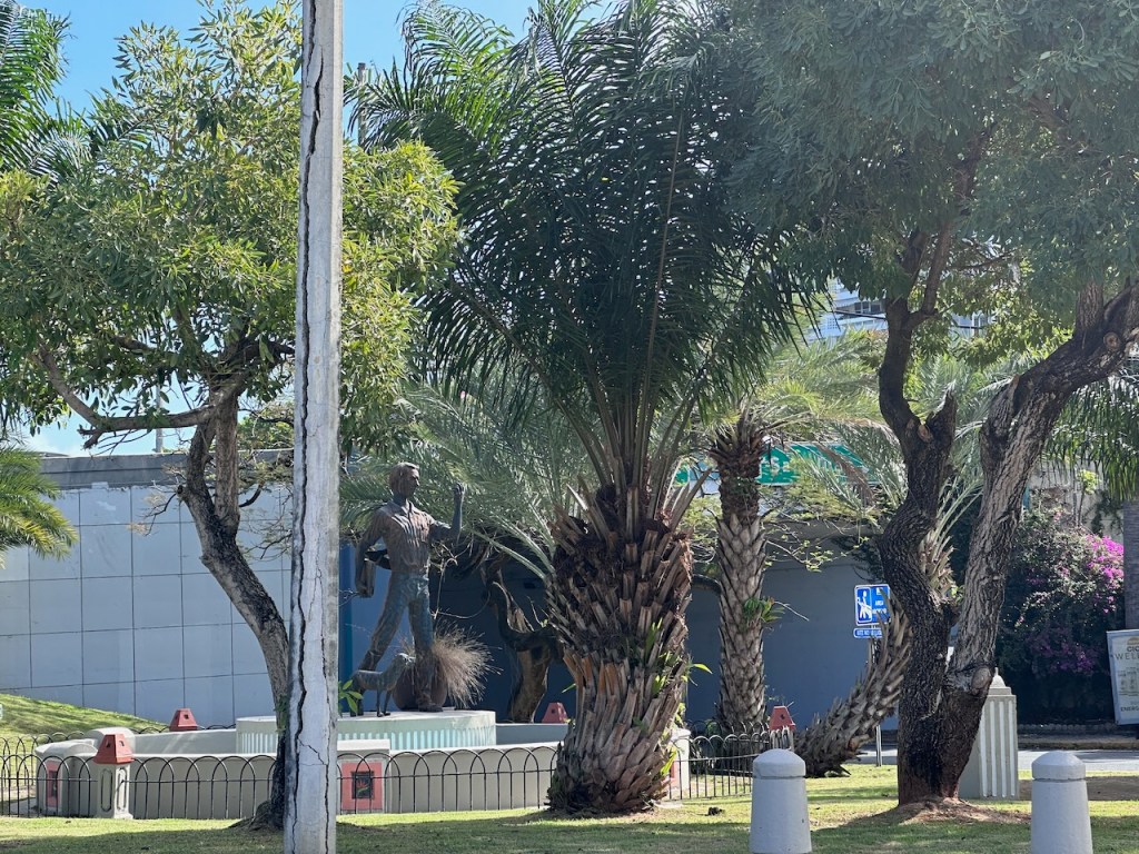 somewhere in a township east of San Juan islanda park in town with a conch playground or whatever that wasa modern churcha beautiful tree full of pretty blossoms we reached the waterfronta nice town beach but where were the bars, restaurants and shops?if we ever live in a house again I want a palm lamp like thatmore beach no promenade🤷♀️that was street right next to the beachat least we found a big muralI don’t know what that was
