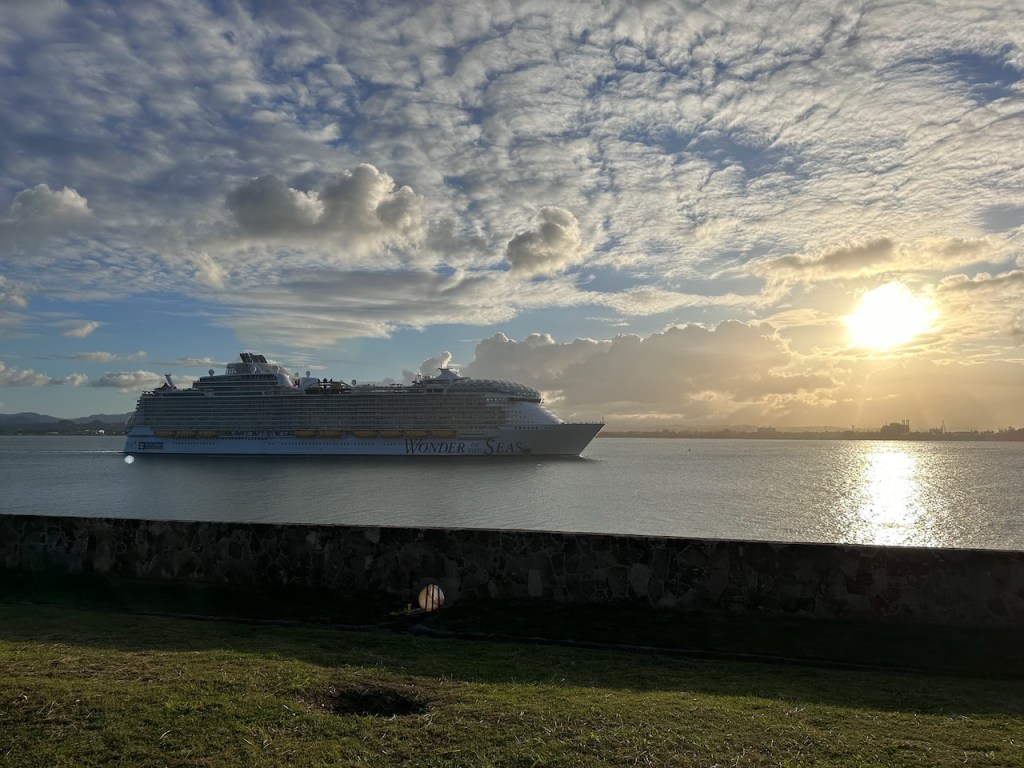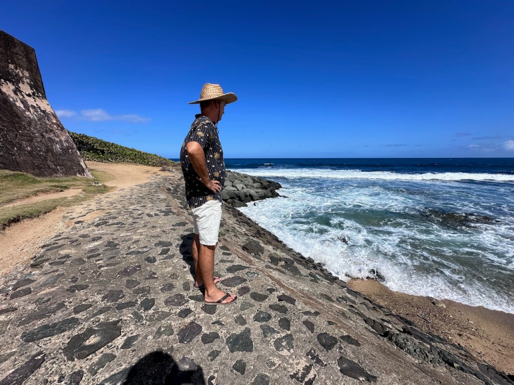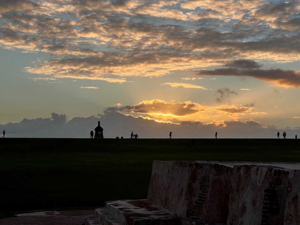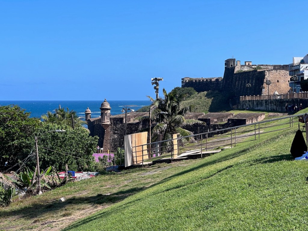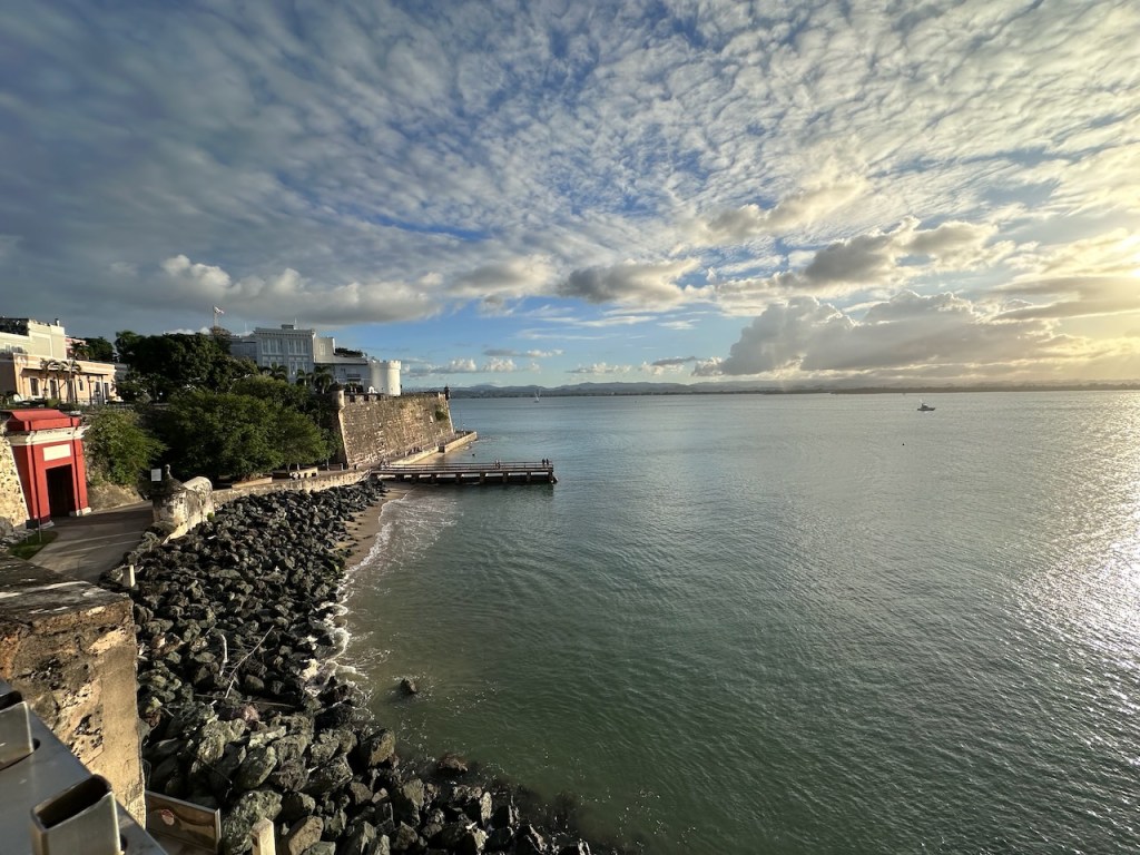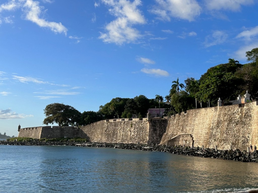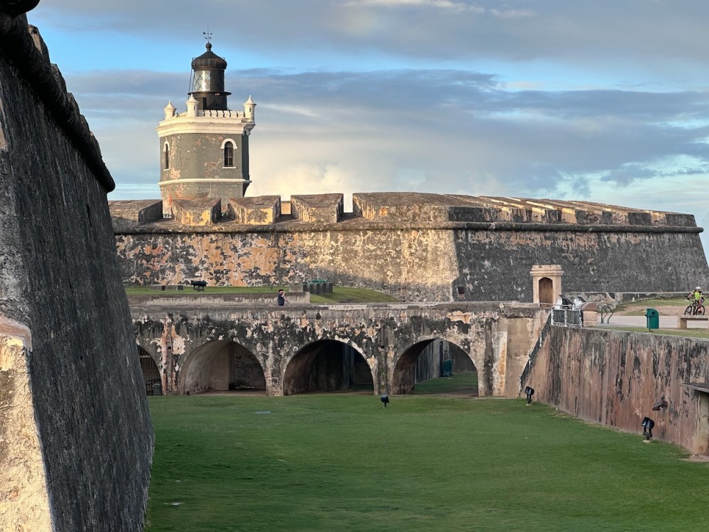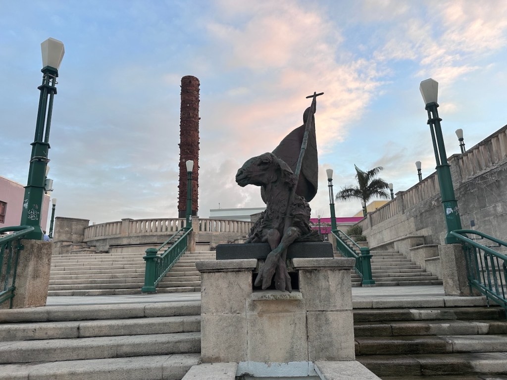 this fountain reminded me of Rome – the old town had such a nice European touch, I wonder if Columbus hadn’t invaded all the Caribbean island how it would look like todayIsabel de Trastamara, reina católica de Españaa part of the very thick and tall wall, rising 40m from the Atlantic shoreline with 5,5 to 7,5 m thick walls, pretty amazing San Juan Gate, it was the last remaining gate of former 5 gatesPlazuela de la Rogativathe bay of San Juan and the gate on the lefta crenel in the wall, here one can see how thick the wall waswe were already up the wall walking to the fortresswhat an unusual street signel Morroup high on the fort we had great views in all directionssunset sailing catand big ships leaving those ships are huge, the wall on this side was 40 m!!!that is the relatively small entrance of the huge bay ; it can get tricky for small vessels to enter or leave in rough weatherthe chapel of The Santa María Magdalena de Pazzis Cemetery seemed to enjoy the last rays of the sunset the lady was sitting in the openings of the wall watching the cemetery and the seaPlaza del CuartelPlaza de San Jose Plaza del Quinto CentenarioPlaza del Quinto Ce is a modern square in Old San Juan inaugurated in 1992 to commemorate the 500th anniversary of the European discovery and Spanish conquest of PR and the Americas and the first European settlement of San Juan; the square is bound by sculptures representing the Agnus Dei and the Lamb of God one of the symbols of San Juan ; I’m not sure one this wasThe main feature of the square is the ‘Teluric Totem’, the name popularly and locally used for the Plaza del Quinto Centenario; this sculpture represents the historic but violent first meeting between the original native inhabitants of Puerto Rico and the European colonizers.