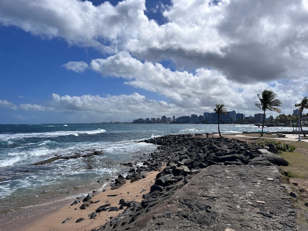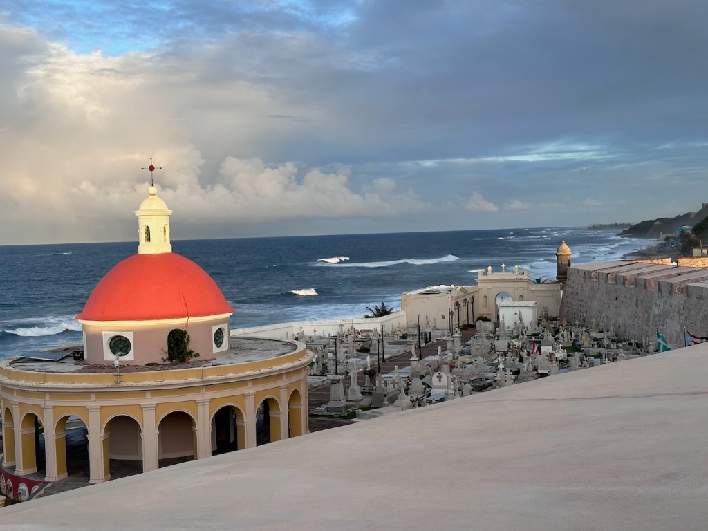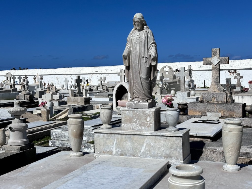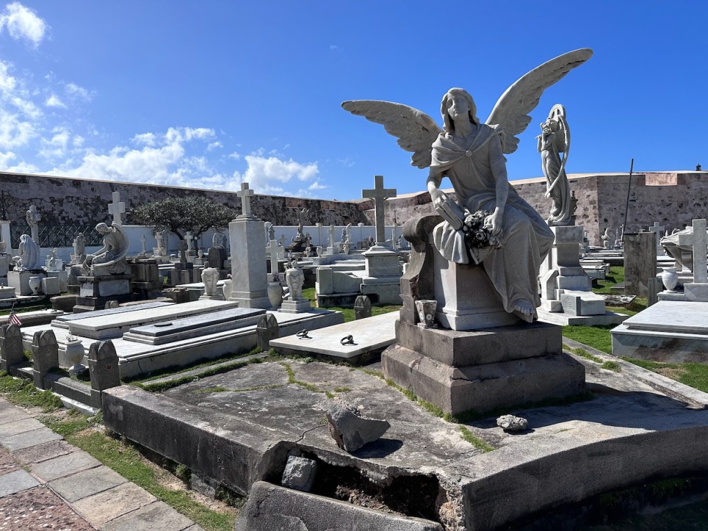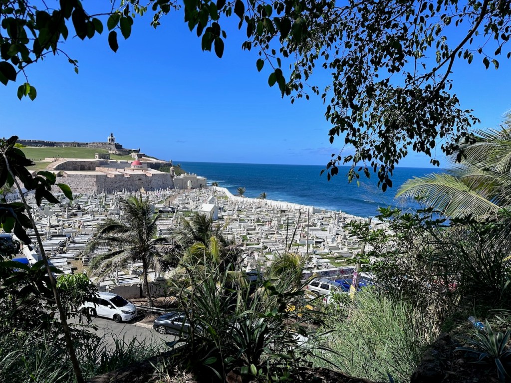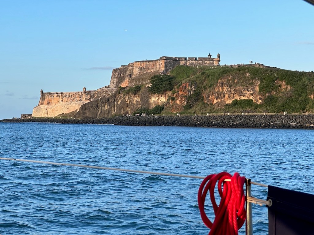 that was just outside of the marina, I wonder who that was?the pretty street and in the back somewhere was the officewe passed by Altimate and here one can see how narrow the anchorage was…or notan old church close to the marinawe were crossing over to the island San Juan; glad they had built another bridge, on the left in the back was the marina where we could leave the dinghythe neighbourhood CondadoLaguna del Condadoalready on the island Parque Del Tercer Milenio, San Juan, the view to Condadolooking westin the back Castillo San Christobalwe kept walking, here even on a nice boardwalkinbetween beaches El Capitolio de Puerto Ricowhen we reached the old town we had break and were craving for a nice lemon juice and then we got this??? we paid 8 dollar for a beverage in a plastic bag! why can’t they serve it in a glass ??? I hate it and the cafe seemed to be very proud of their way of serving🙈…well maybe its me who is crazyopti training in the open Atlantic!!! very brave kidsa sport field within the wall and a glimpse of La Perla in the back La Perla the colourful houses outside of the wall very close to the Atlantic shoreSanta Maria cemeteryeven at a cemetery …chicsthere were very big and old gravestonessome deceased were even watched by angelsa last pic from Old San Juan before leaving PRthe optics just came back from their training when we were ready to leave, they were so cutealmost at the entrance of the baybye bye San Juan